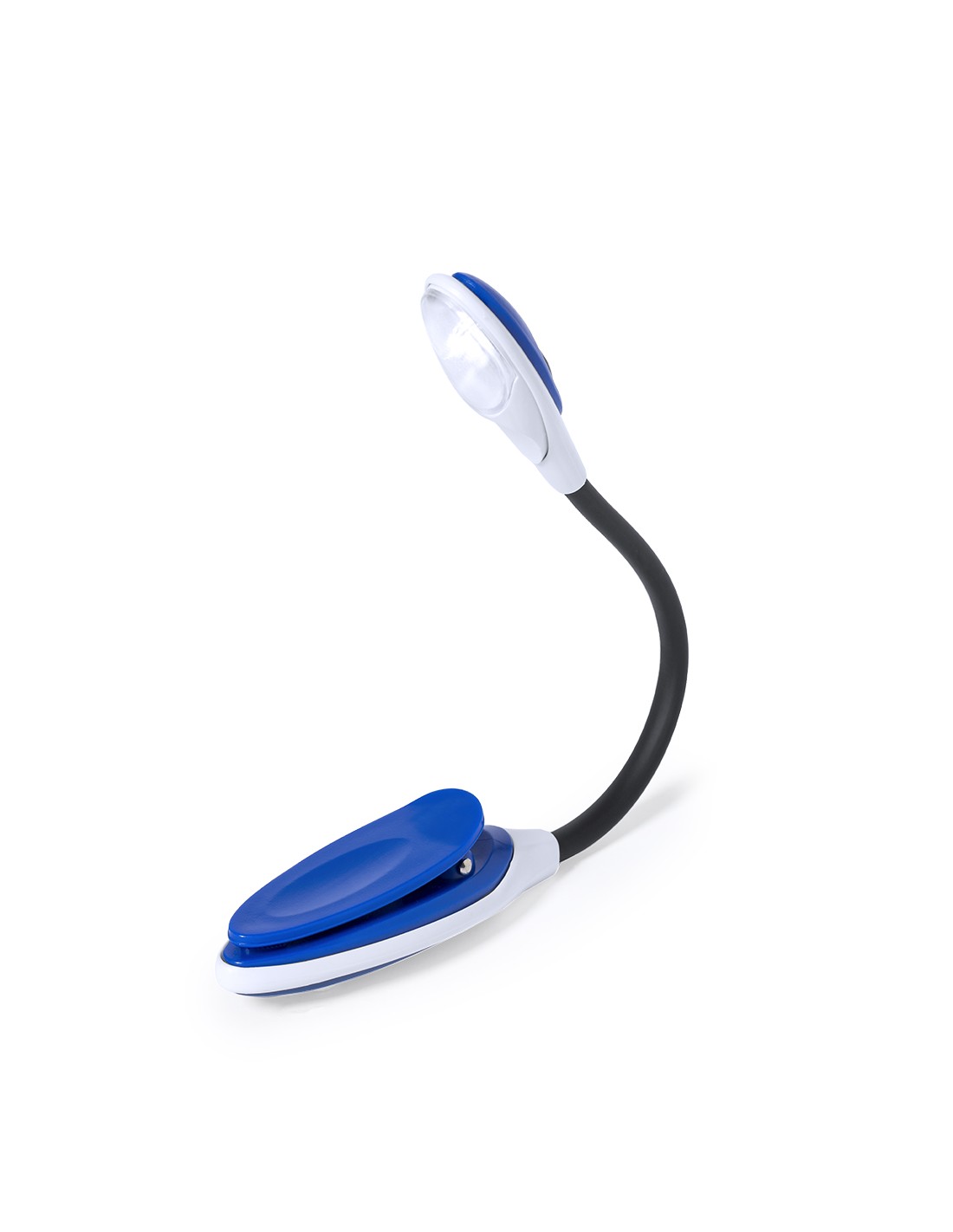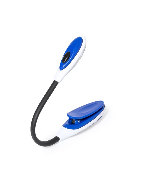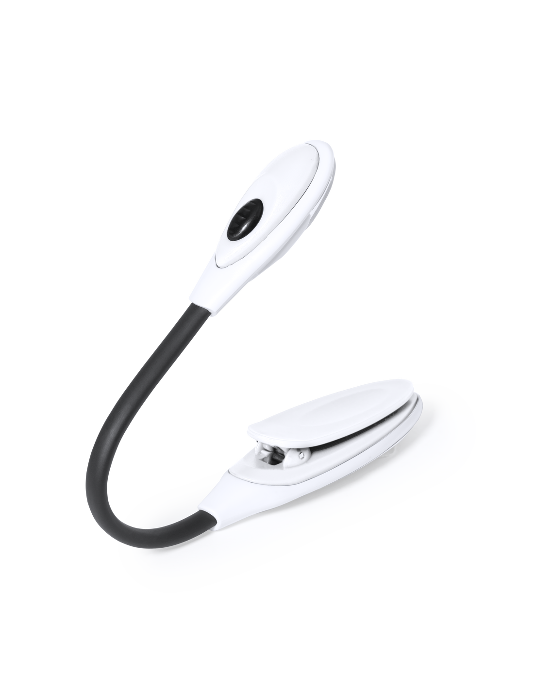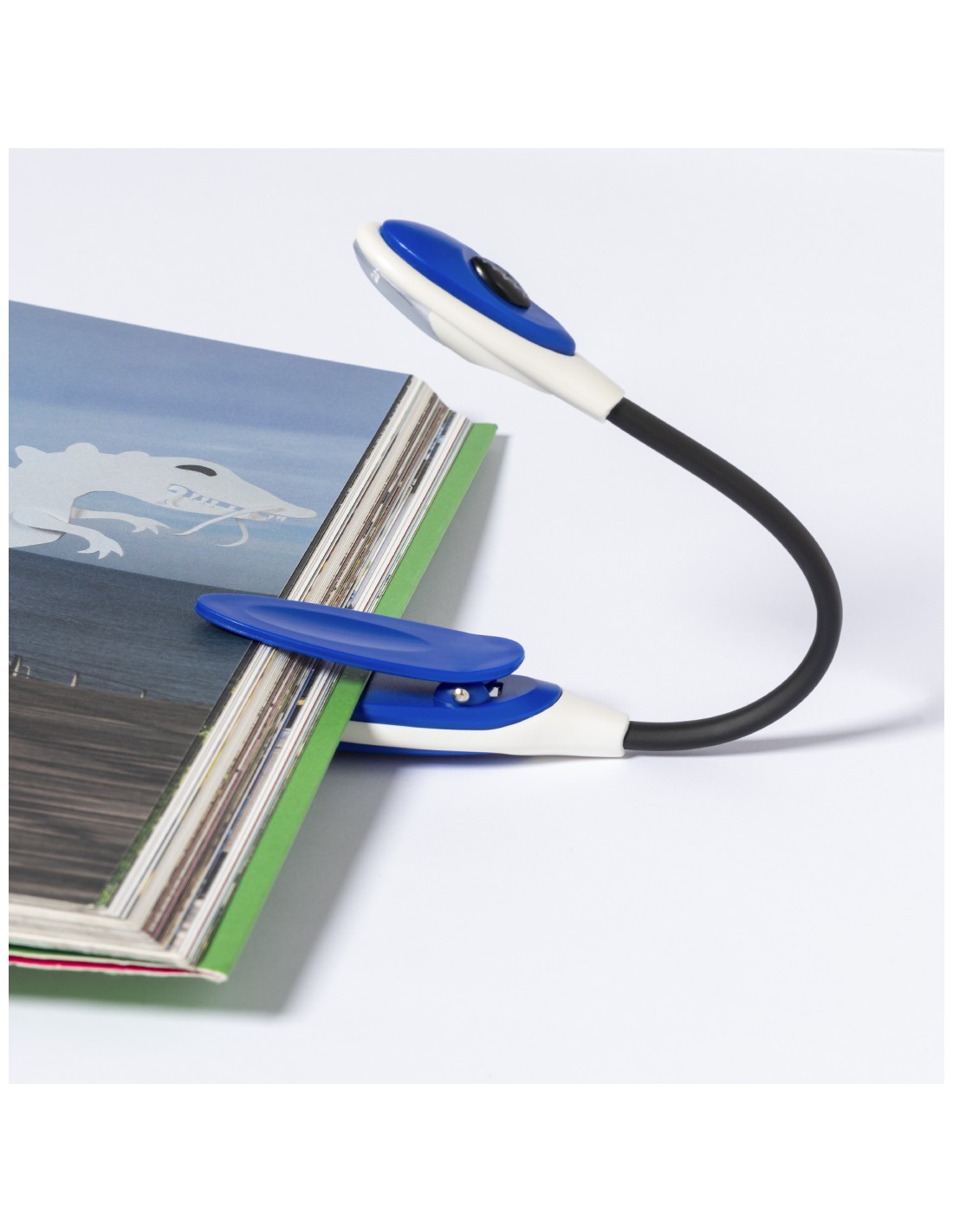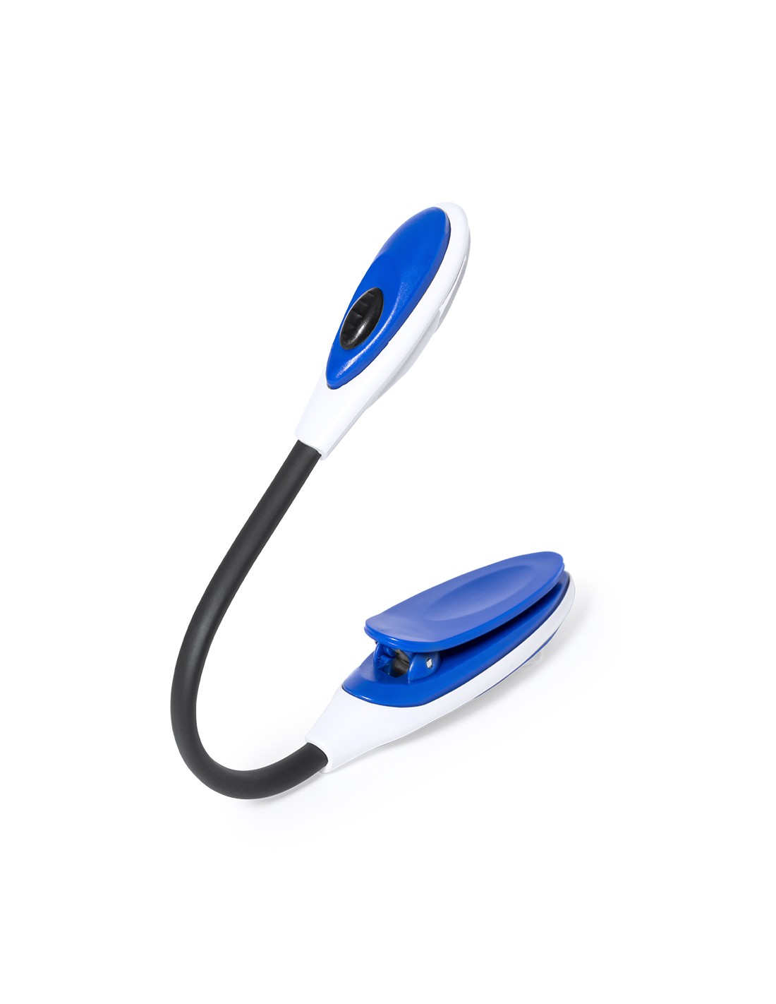 Lámpara led de lectura de diseño bicolor. Con cuerpo flexible y cómoda pinza de sujeción. Presentada en caja individual.