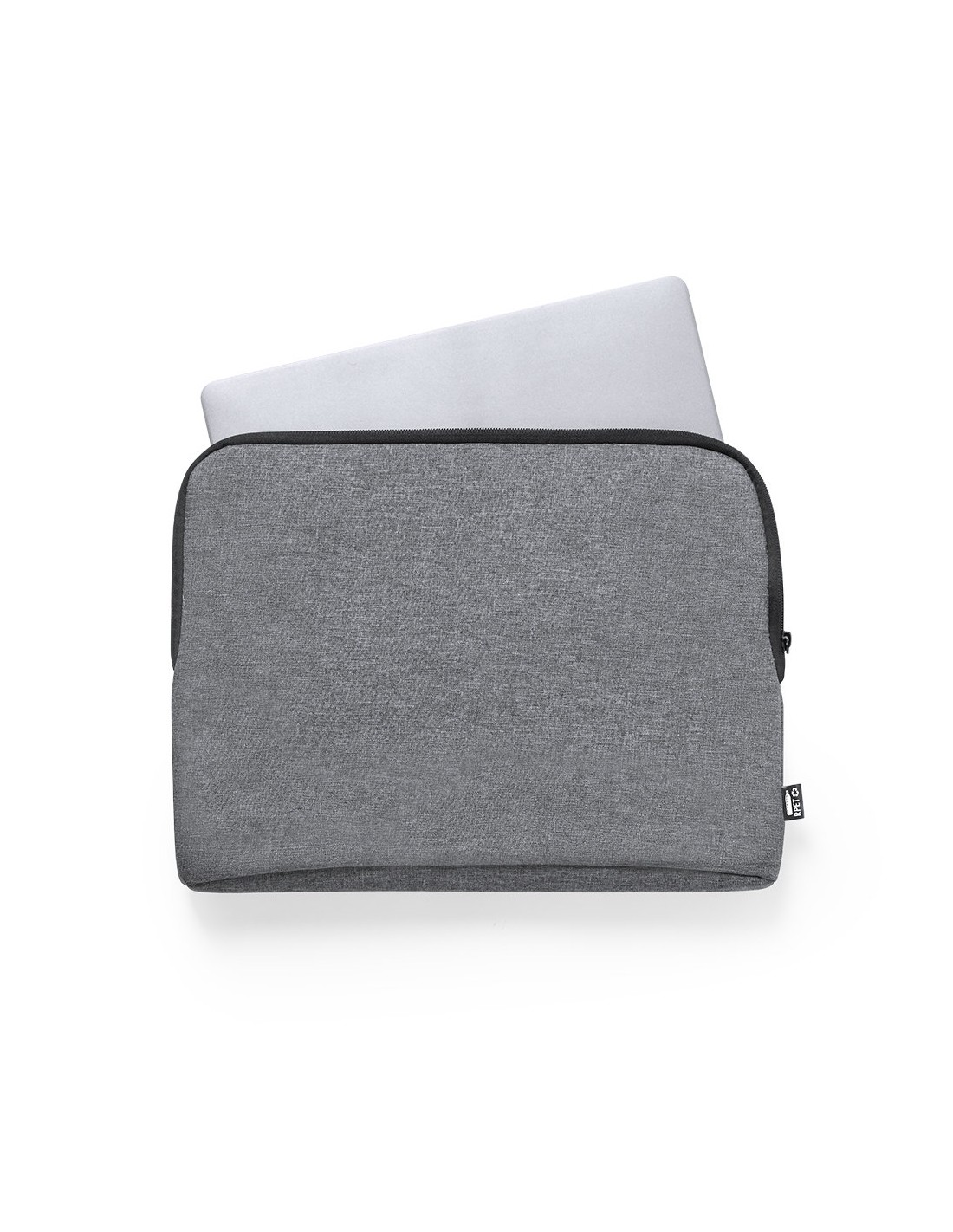 Funda para ordenador portátil de línea nature y en resistente 600D RPET efecto melange, elaborado a partir de plástico reciclado para así fomentar la reutilización de residuos plásticos y contribuir a la sostenibilidad del planeta. Detalles en negro y compartimento principal con cierre de cremallera. Interior totalmente acolchado y forrado, con distintivo RPET en etiqueta exterior.