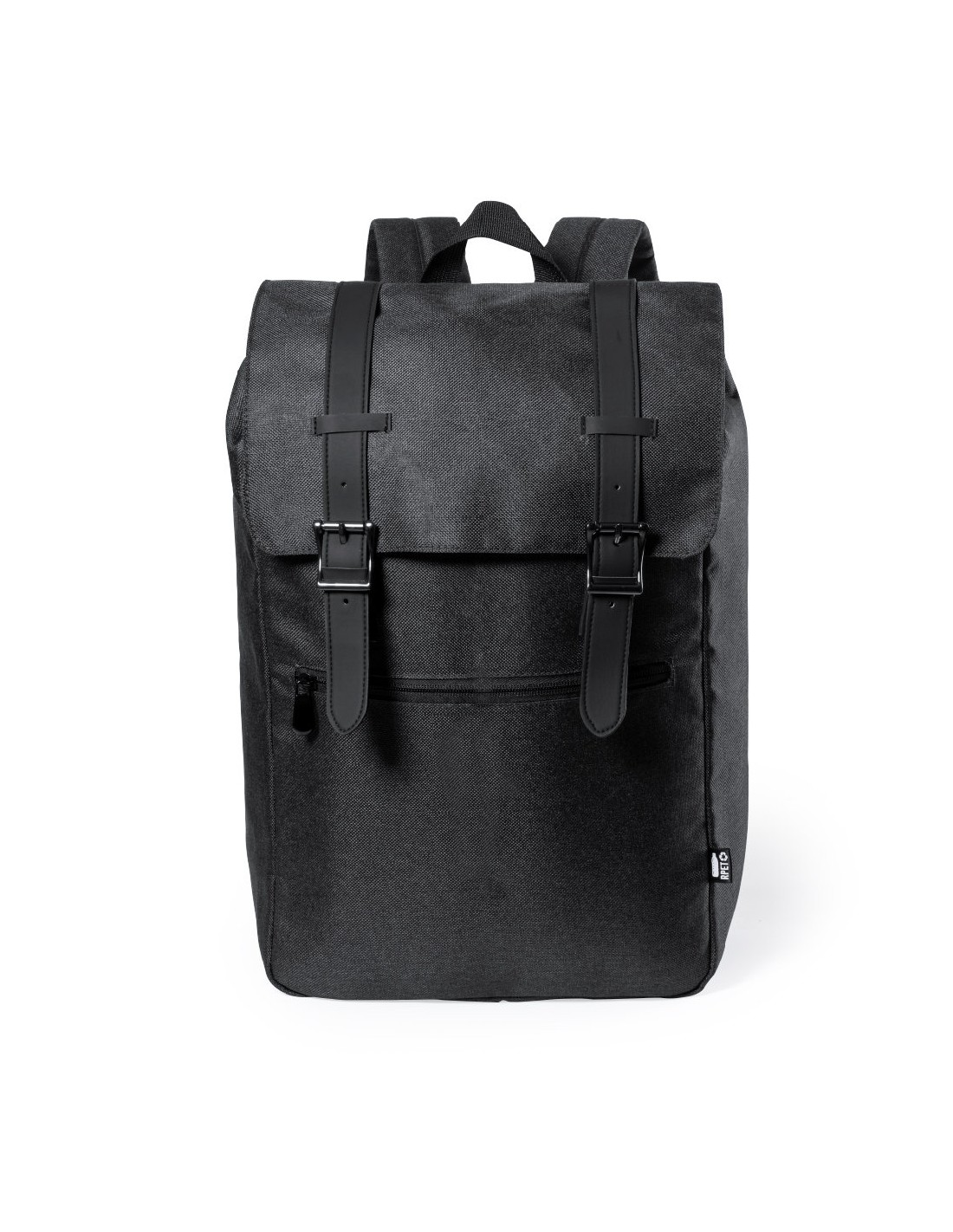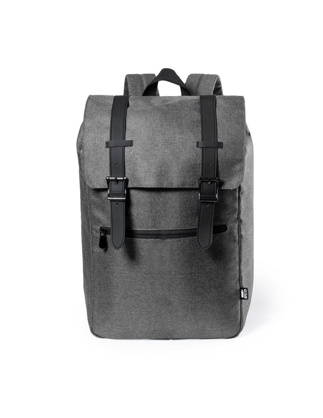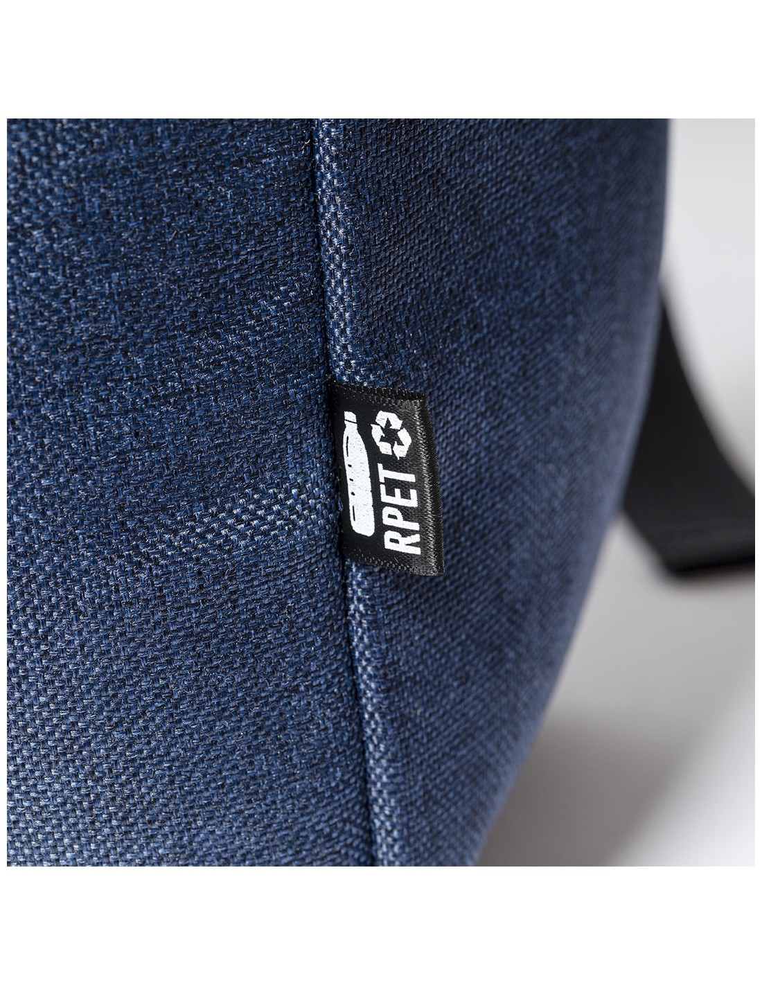 Mochila urban de línea nature, fabricada en resistente poliéster 300D RPET libre de PVC, elaborado a partir de plástico reciclado, para así fomentar la reutilización de residuos plásticos y contribuir a la sostenibilidad del planeta. Bolsillo principal con tiras y cierres de hebilla metálicos con bolsillo frontal de cremallera y tirador metálico. Interior con bolsillo acolchado para portátil de hasta 15 pulgadas y tablet de hasta 10 pulgadas. Cintas ajustables para hombro acolchadas, con distintivo RPET en etiqueta exterior.