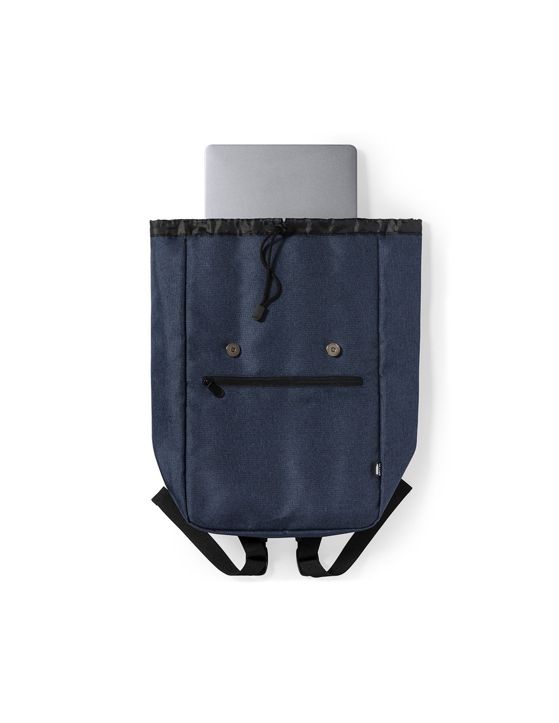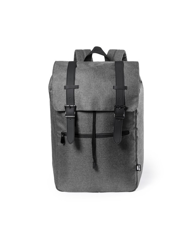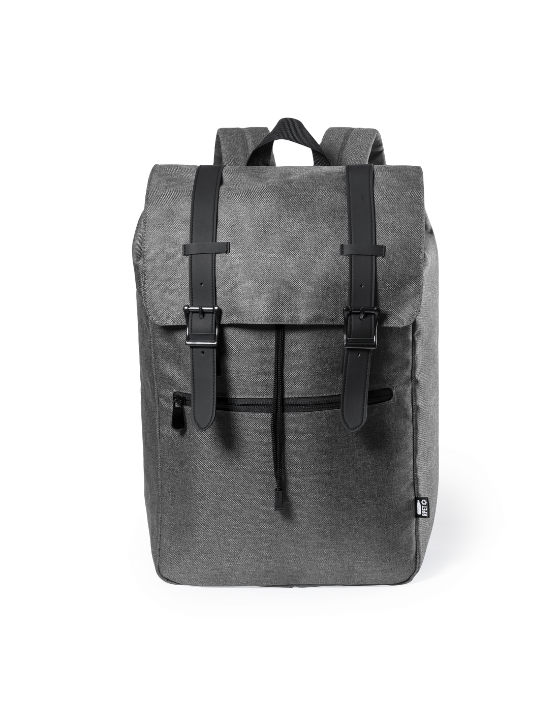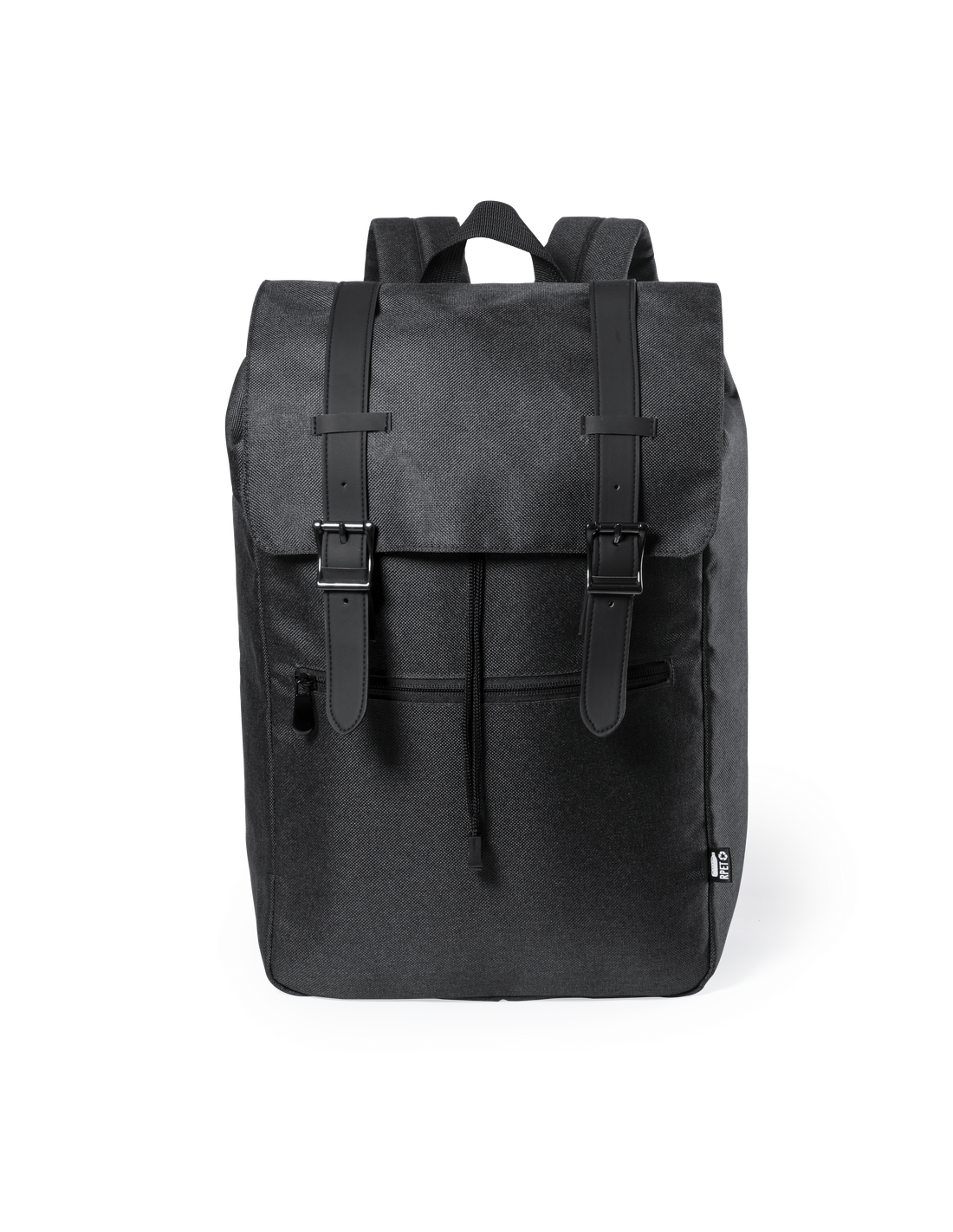 Mochila urban de línea nature, fabricada en resistente poliéster 300D RPET libre de PVC, elaborado a partir de plástico reciclado, para así fomentar la reutilización de residuos plásticos y contribuir a la sostenibilidad del planeta. Bolsillo principal con tiras y cierres de hebilla metálicos con bolsillo frontal de cremallera y tirador metálico. Interior con bolsillo acolchado para portátil de hasta 15 pulgadas y tablet de hasta 10 pulgadas. Cintas ajustables para hombro acolchadas, con distintivo RPET en etiqueta exterior.