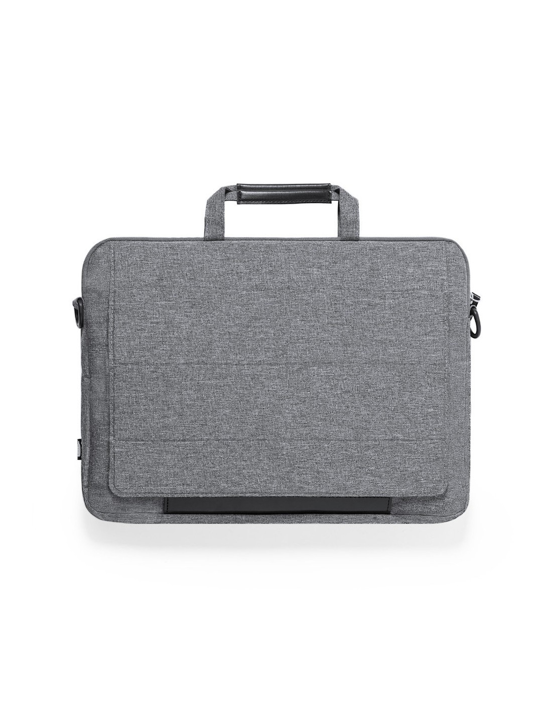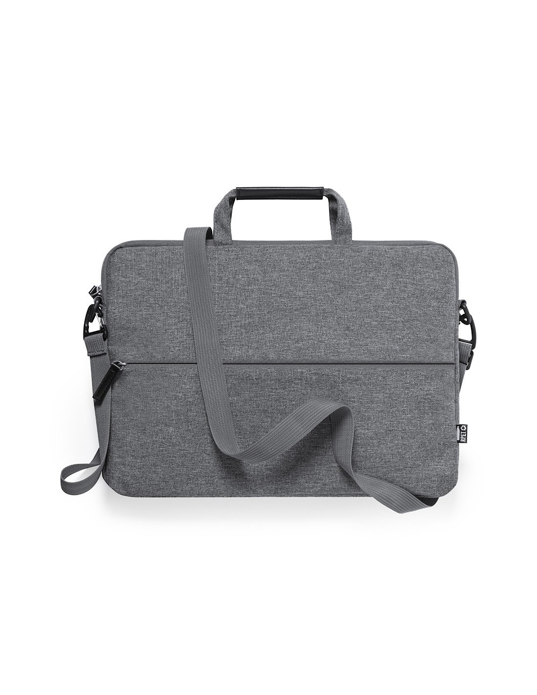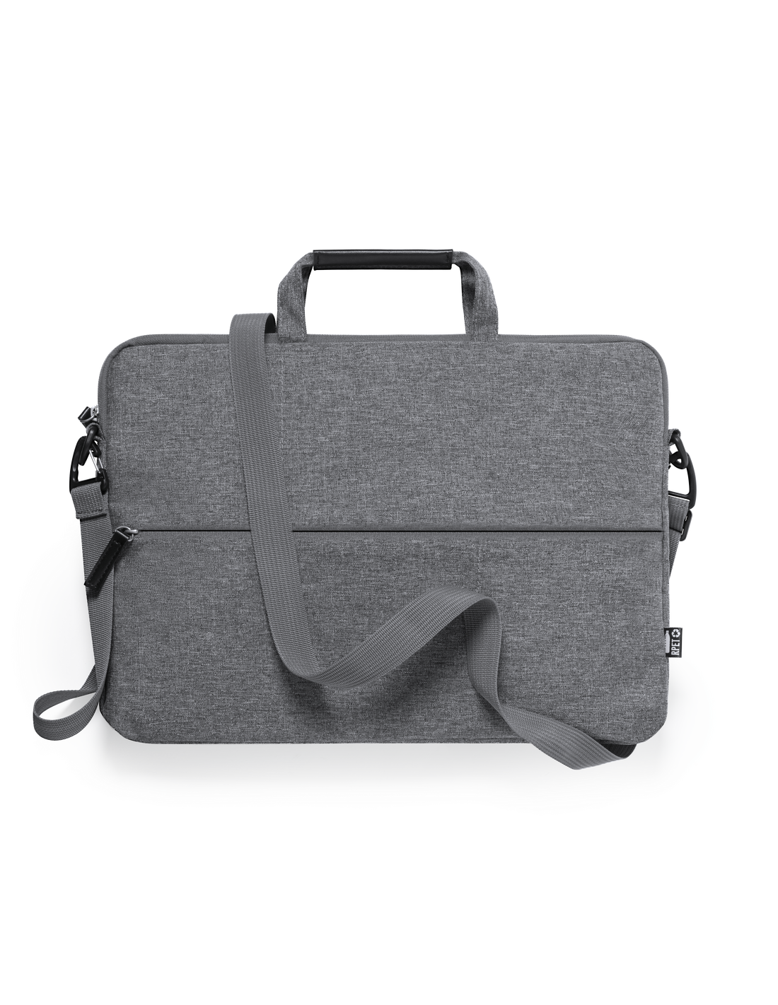 Portadocumentos de línea nature y en resistente 300D RPET efecto melange, elaborado a partir de plástico reciclado, para así fomentar la reutilización de residuos plásticos y contribuir a la sostenibilidad del planeta. Con original soporte integrado para ordenador portátil, bolsillos principal y frontal con cierre de cremallera. Interior con bolsillo acolchado para portátil de hasta 15 pulgadas y bolsillo para tablet de hasta 10 pulgadas. Cinta bandolera ajustable para hombro, con asa de transporte reforzada. Resistencia hasta 6kg, con distintivo RPET en etiqueta exterior.