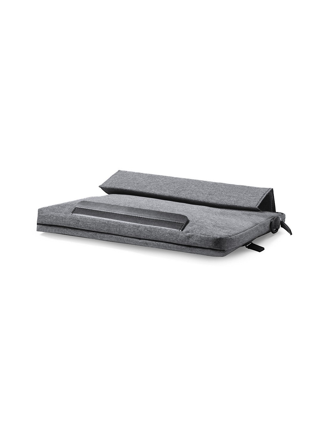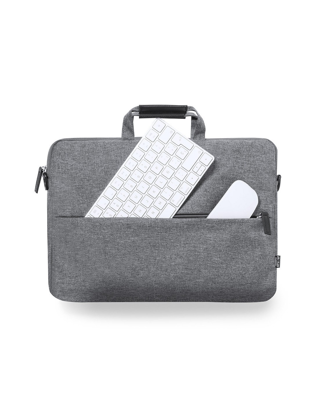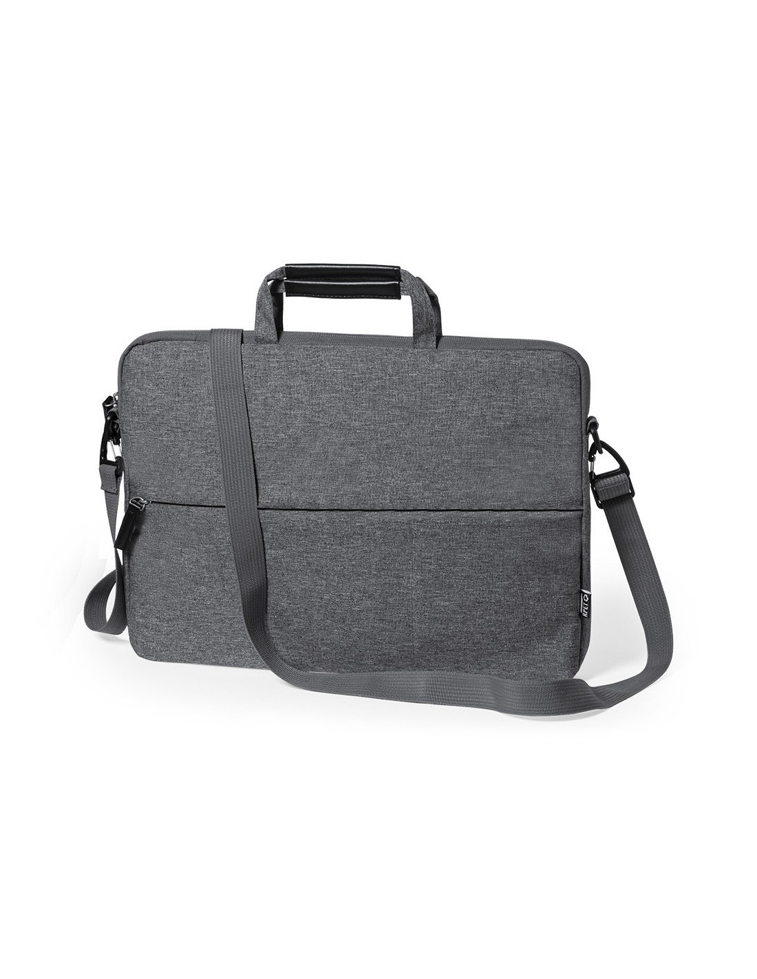 Portadocumentos de línea nature y en resistente 300D RPET efecto melange, elaborado a partir de plástico reciclado, para así fomentar la reutilización de residuos plásticos y contribuir a la sostenibilidad del planeta. Con original soporte integrado para ordenador portátil, bolsillos principal y frontal con cierre de cremallera. Interior con bolsillo acolchado para portátil de hasta 15 pulgadas y bolsillo para tablet de hasta 10 pulgadas. Cinta bandolera ajustable para hombro, con asa de transporte reforzada. Resistencia hasta 6kg, con distintivo RPET en etiqueta exterior.