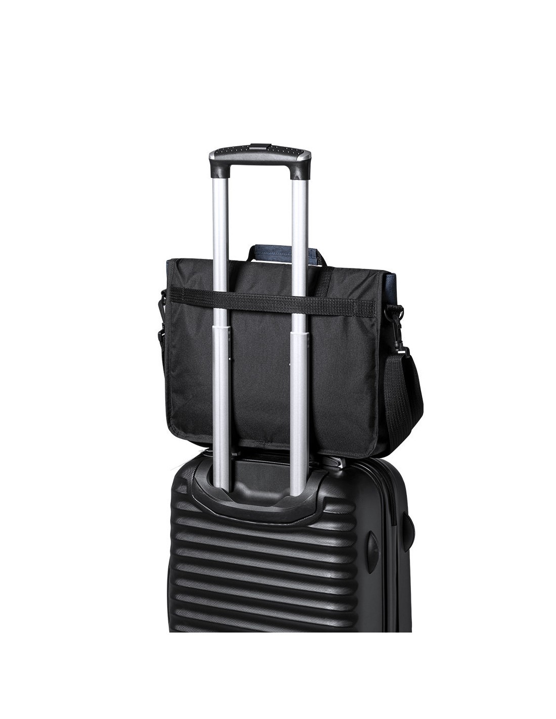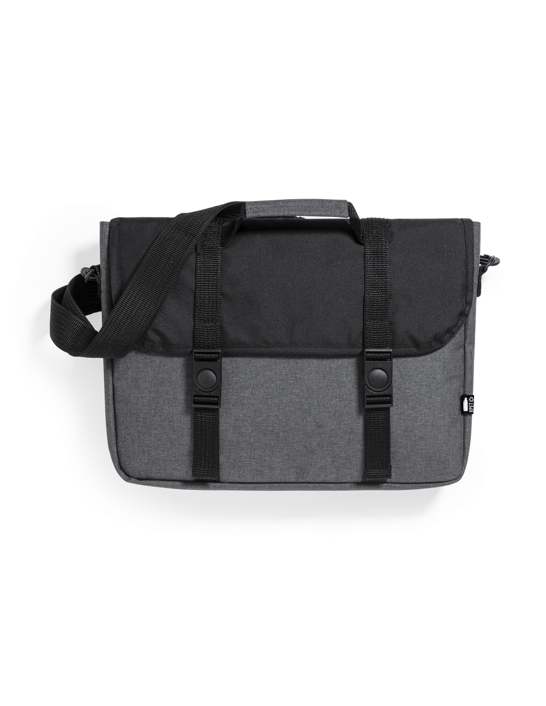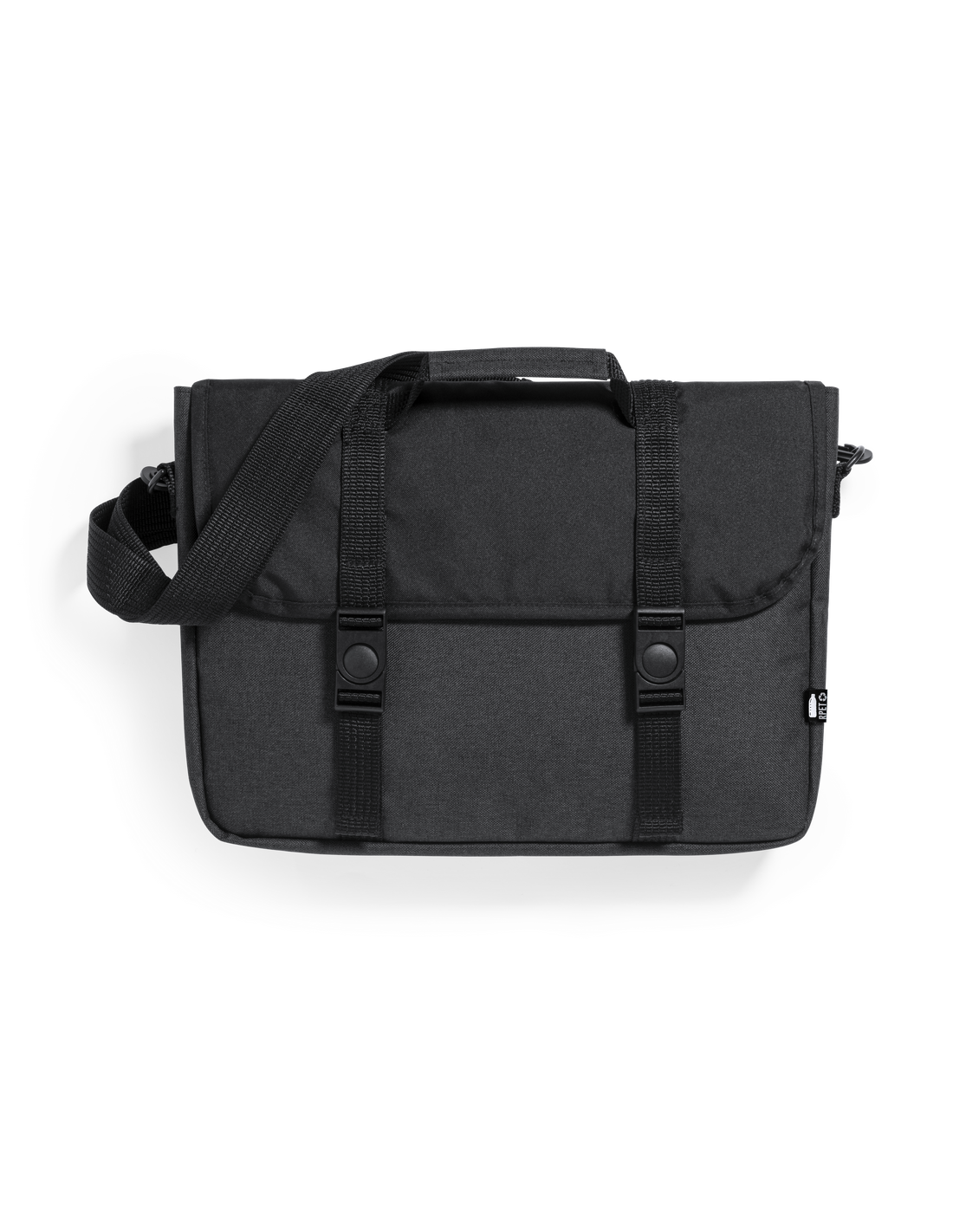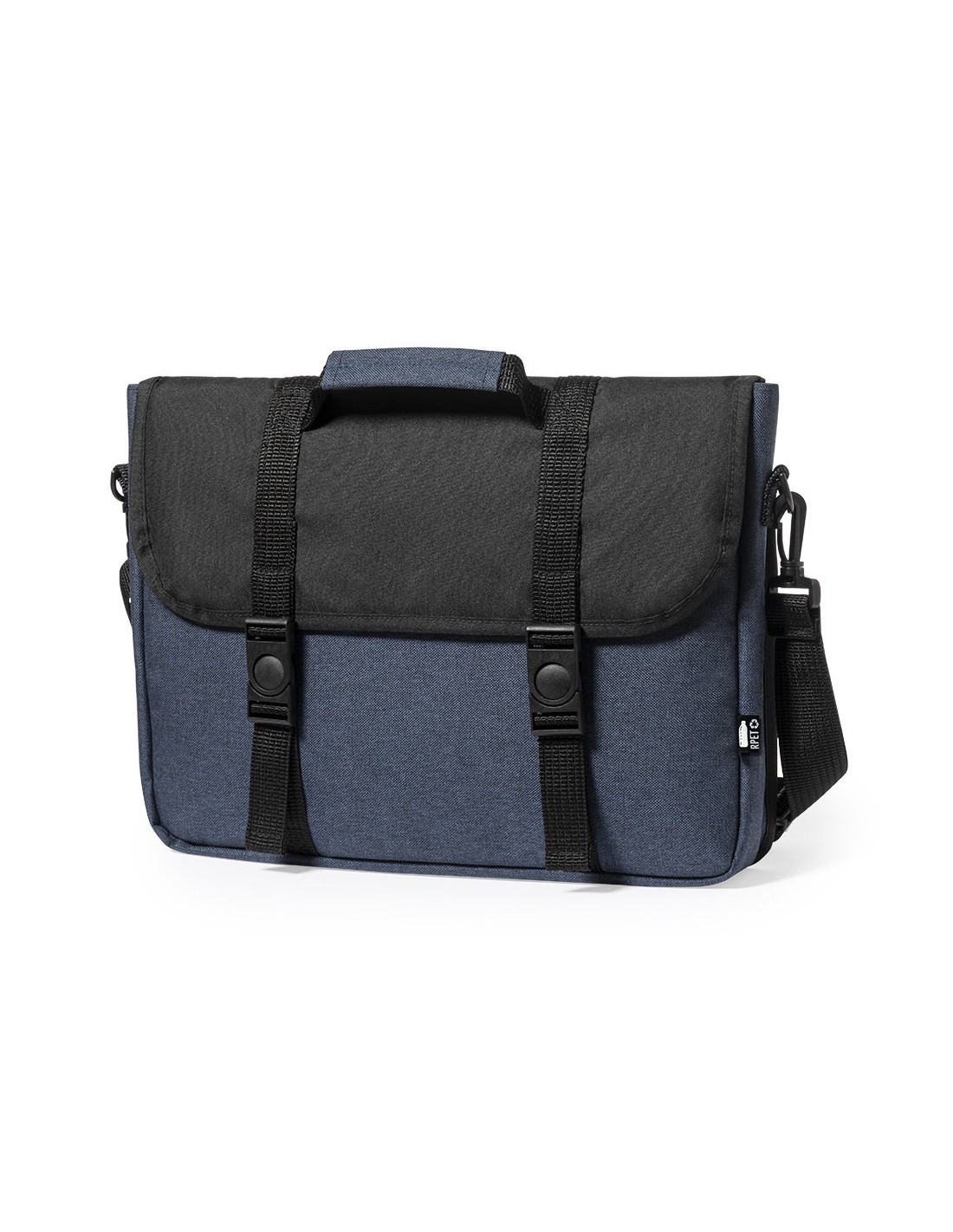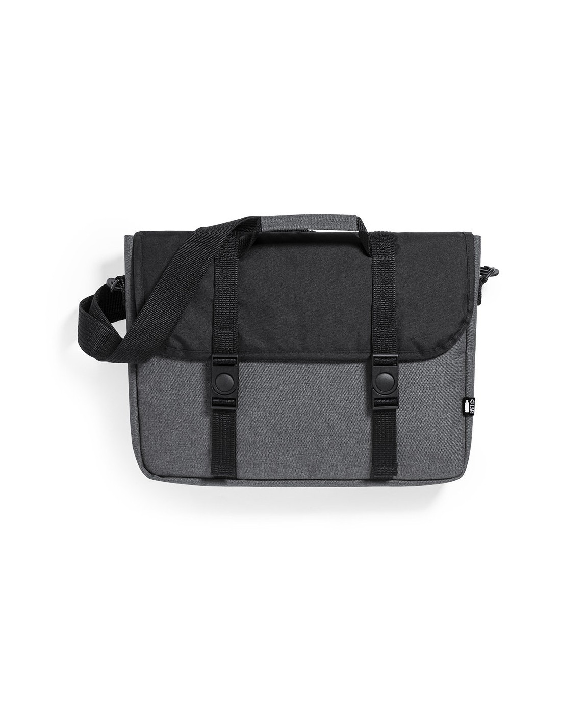 Portadocumentos de línea nature y en resistente poliéster 600D RPET reciclado y libre de PVC, fruto de la combinación del proceso de reciclaje de materiales plásticos junto con la técnica milenaria de fabricación del fieltro, dando como resultado un material de eco-tendencia de origen reciclado. Con acolchado y bolsillo principal con tiras de cierre de hebilla bolsillo interior de cierre de cremallera y cinta bandolera ajustable para hombro. Con asa de transporte reforzada y accesorio en parte posterior para ajuste en barra de trollley. Resistencia hasta 7kg, con distintivo RPET en etiqueta exterior.