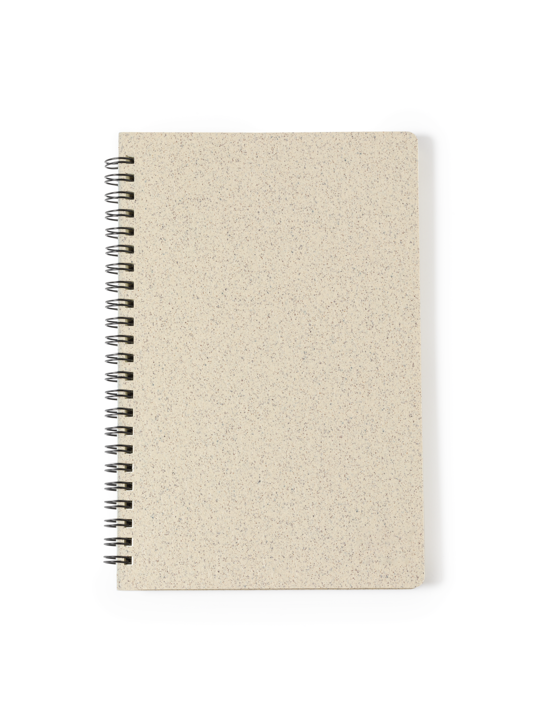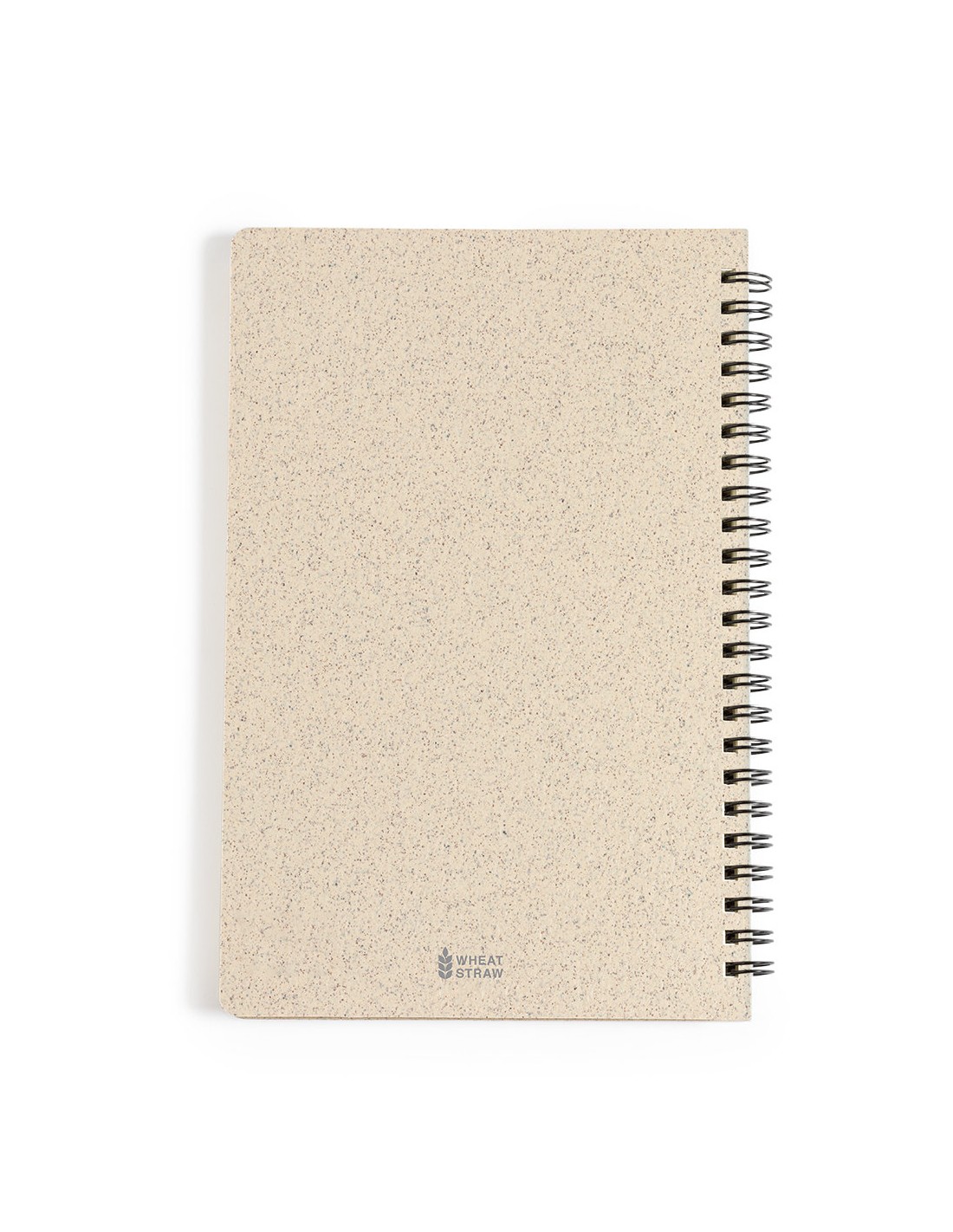 Innovadora libreta de anillas de línea nature, con tapas fabricadas en caña de trigo, para así fomentar la utilización de materias primas naturales y reducir las emisiones contaminantes. Con distintivo Wheat Straw y 80 hojas interiores lisas.