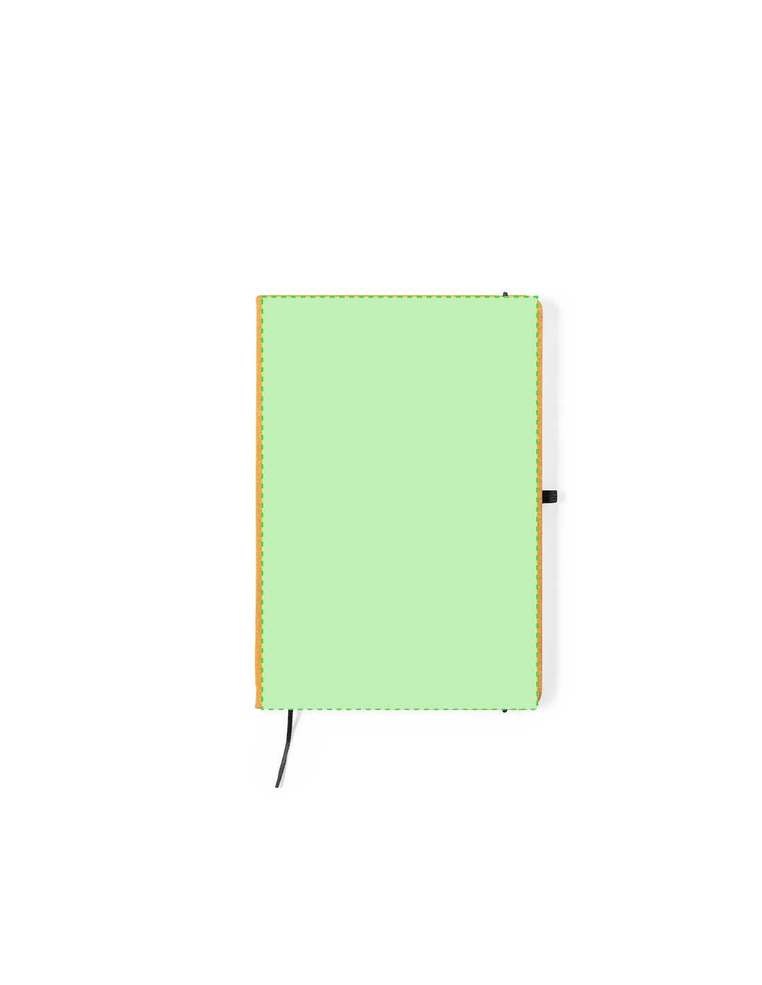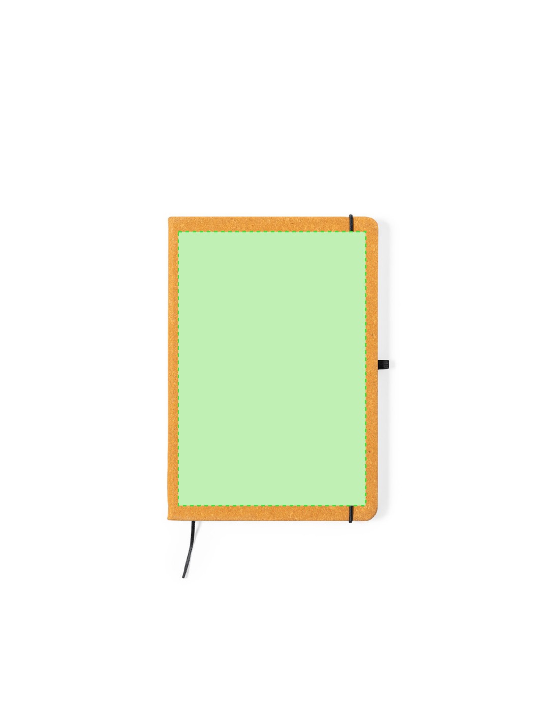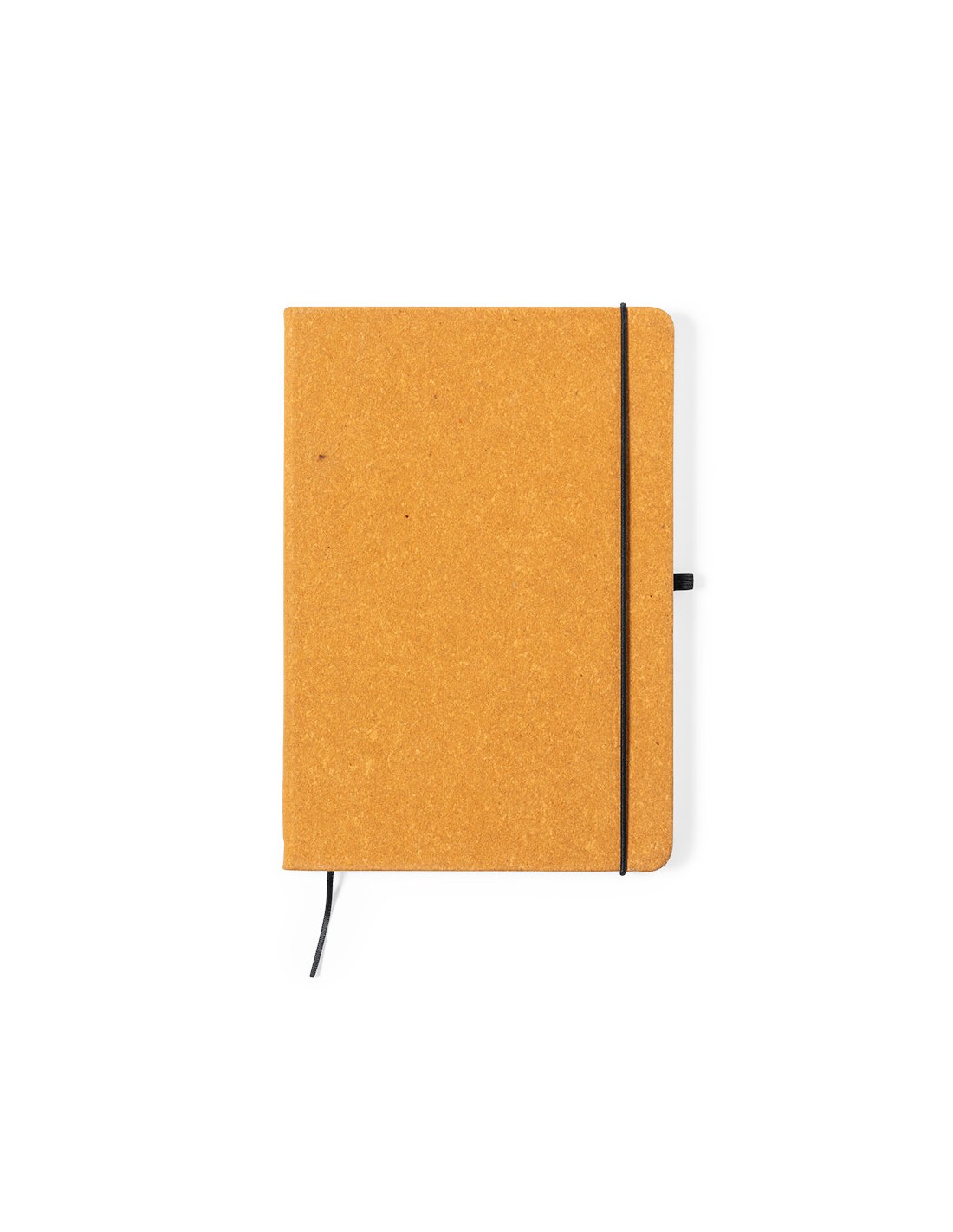 Bloc de notas de línea nature. Con tapas rígidas fabricadas en cuero reciclado, que rescata las fibras desechadas en los procesos de fabricación, minimizando el desperdicio de material, contribuyendo a reducir el impacto ambiental y manteniendo a la vez sus propiedades originales. Interior con 100 hojas de disposición a una raya. Incluye marcapáginas, elástico de cierre y soporte para bolígrafo a juego. Incluye distintivo cuero reciclado.