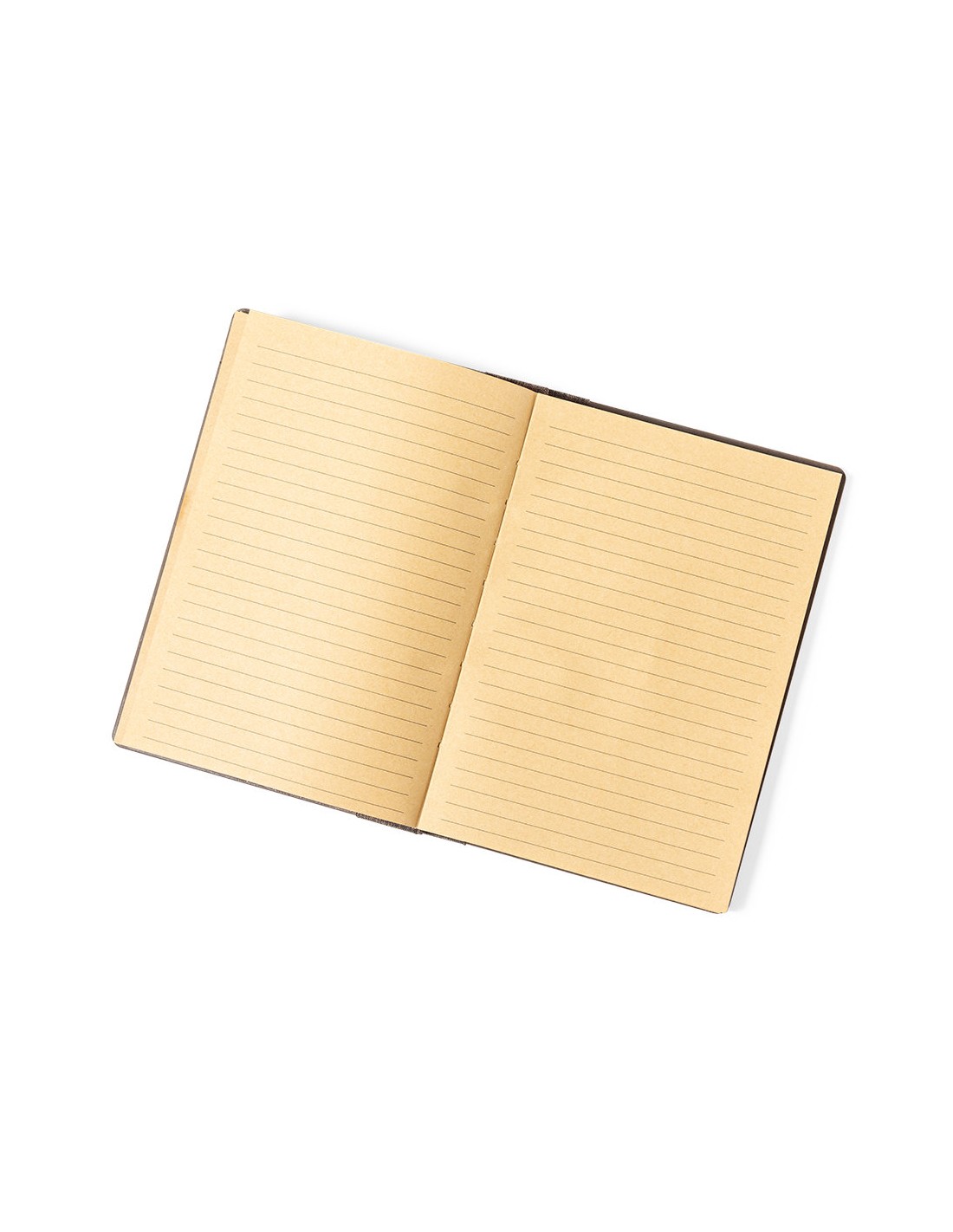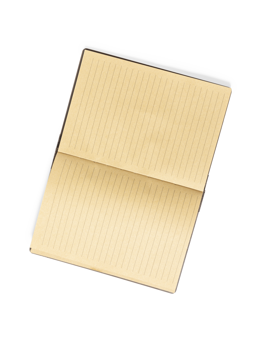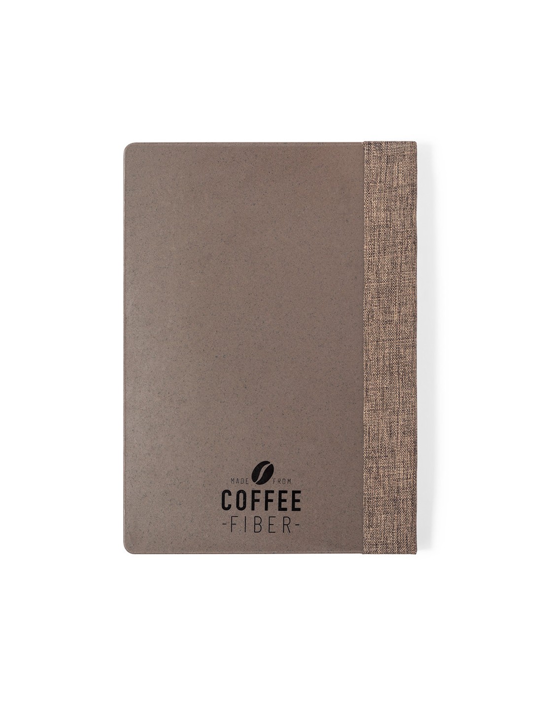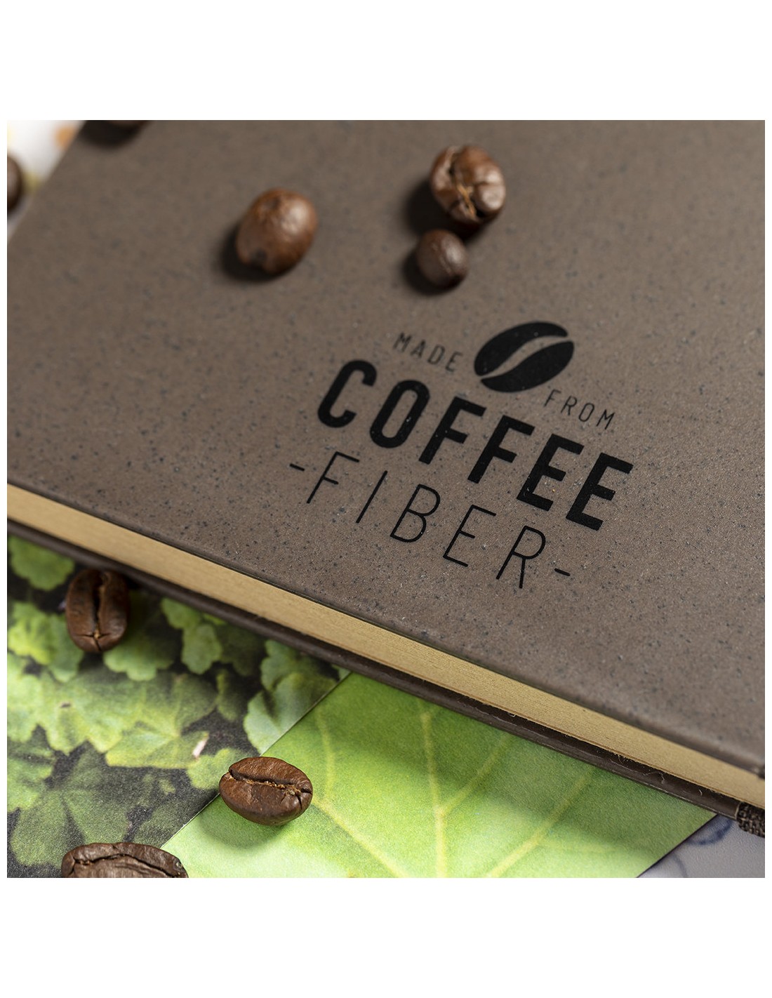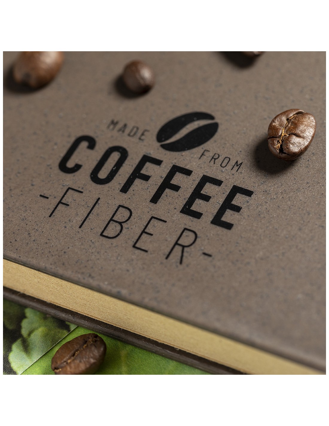 Bloc de notas de línea nature. Con tapas rígidas fabricadas en fibra de café, elaborada a partir de los residuos producidos en la obtención del café. Una alternativa sostenible que favorece la reducción del uso de plásticos, ahorrando energía en el proceso de fabricación y fomentando así el cuidado del medio ambiente. Interior con 100 hojas de disposición a una raya y distintivo fibra de café en contraportada.
