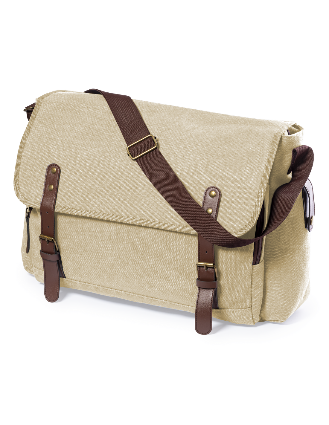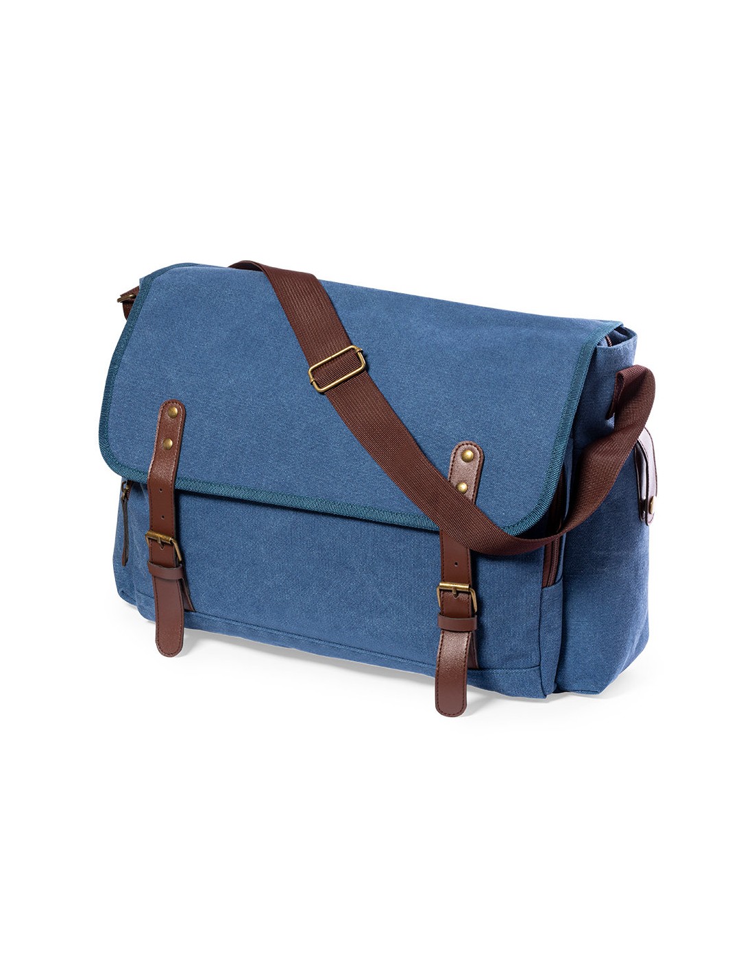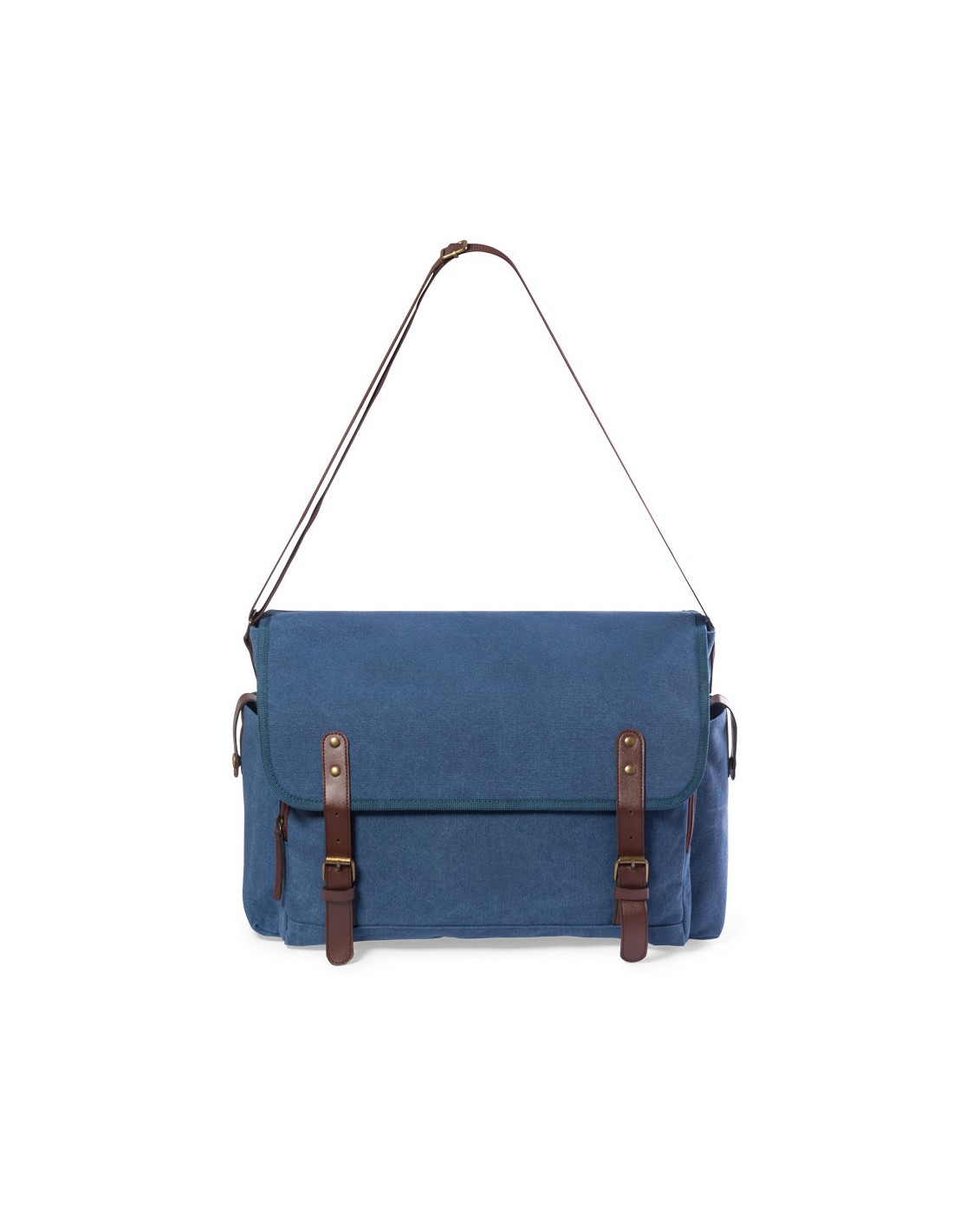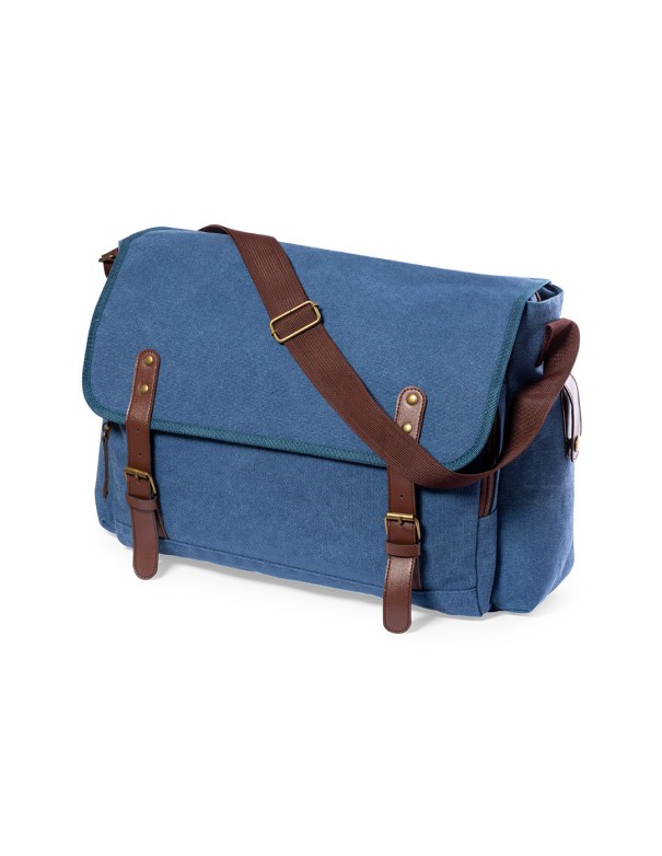 Portadocumentos bandolera de diseño atemporal, fabricado en resistente canvas de 480g/m2, con cintas de cierre en polipiel y práctica cinta para hombro ajustable. Interior acolchado con compartimentos independientes para tablet de hasta 10 pulgadas y ordenador portátil de hasta 15 pulgadas. Incluye prácticos bolsillos laterales en el exterior.