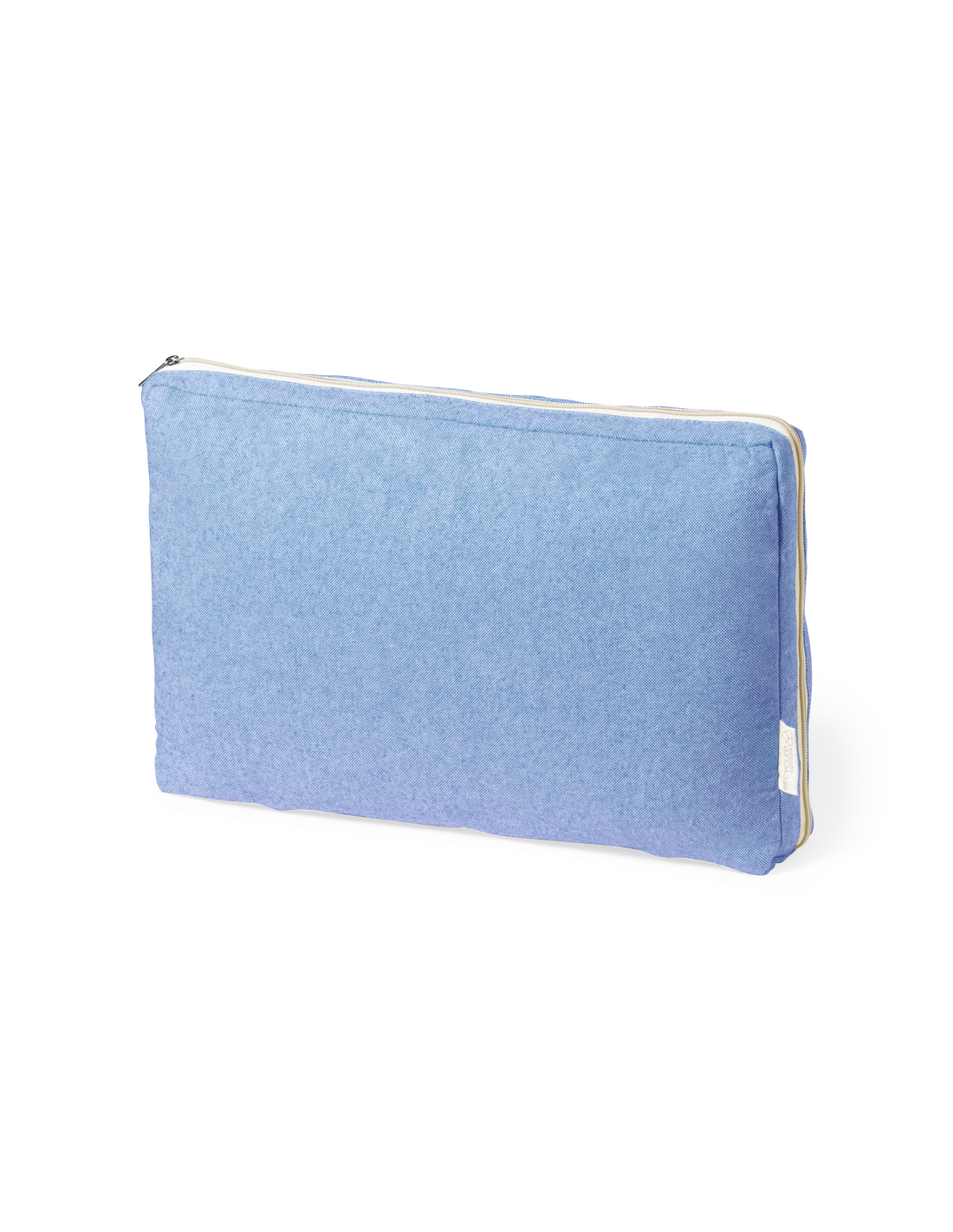 Funda acolchada para ordenador portátil de hasta 15 pulgadas. De línea nature y fabricada en algodón 100% reciclado GRS de 275g/m2. Compartimento principal con cierre de cremallera y distintivo algodón reciclado en etiqueta exterior. Disponible certificación GRS (Global Recycled Standard / Estándar de Reciclaje Global), que garantiza el origen reciclado del material usado para fabricar el producto. Disponible en variada gama de colores.
