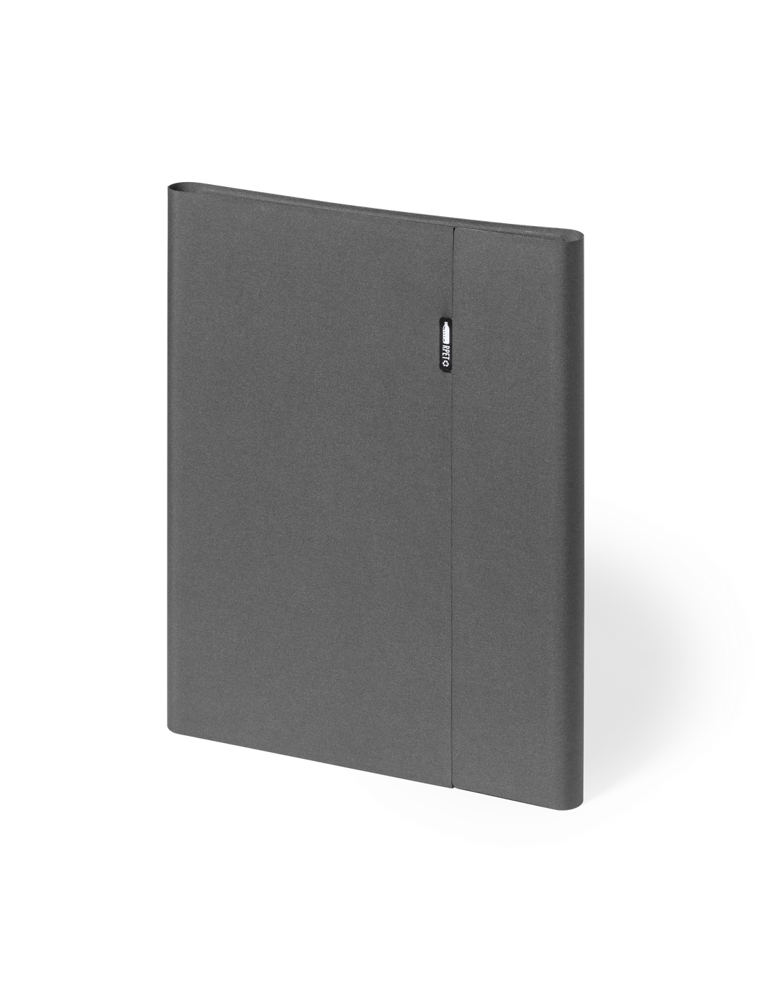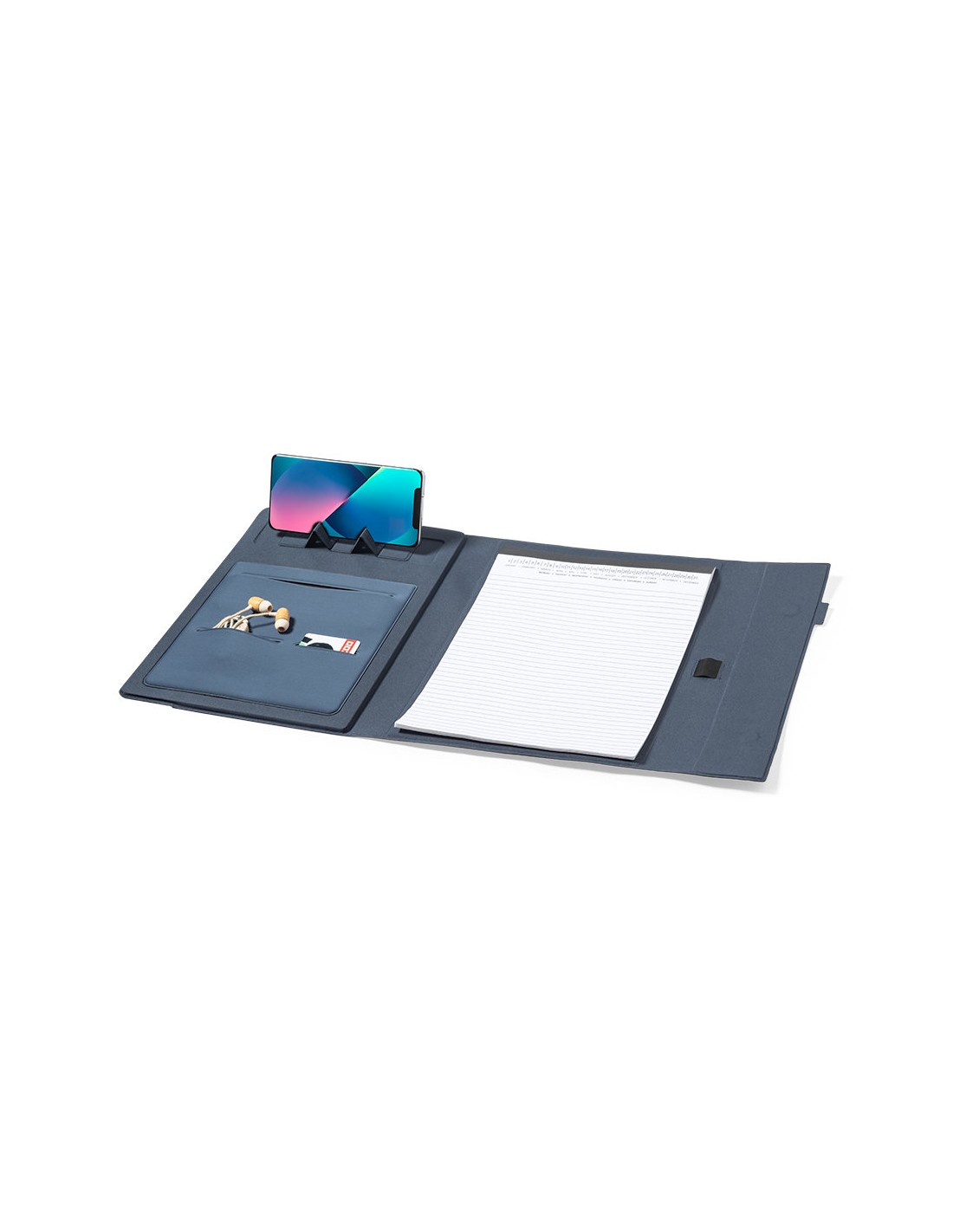 Carpeta fabricada en poliéster 600D RPET, elaborado a partir de plástico reciclado, para así fomentar la reutilización de residuos plásticos y ayudar a la sostenibilidad del planeta. Con cierre magnético y distintivo RPET. Interior con soporte para smartphone y multitud de compartimentos para tarjetas, incluidos soporte para bolígrafo y bloc con 20 hojas de disposición a una raya. Presentada en atractiva caja individual de diseño y disponible en variada gama de colores.