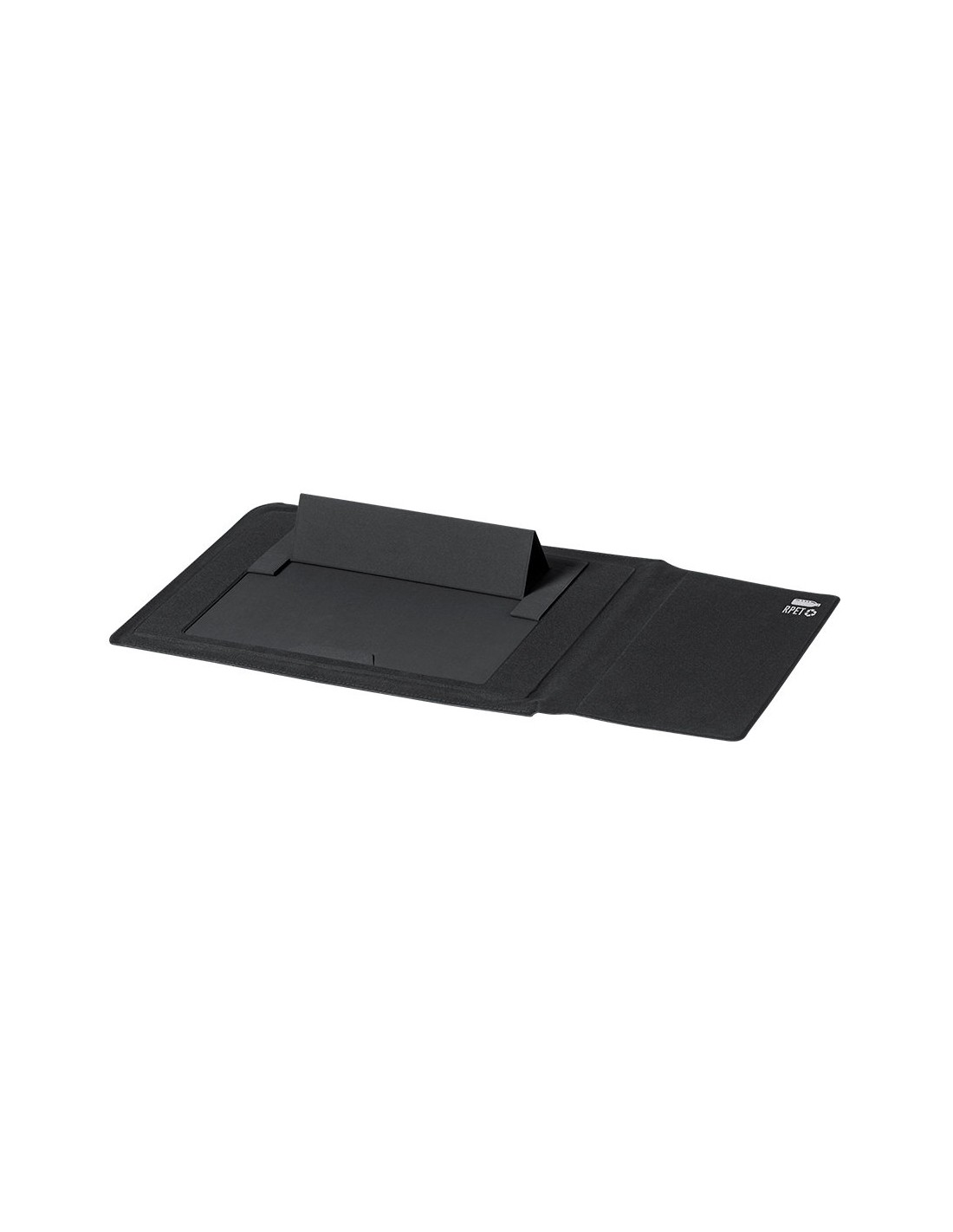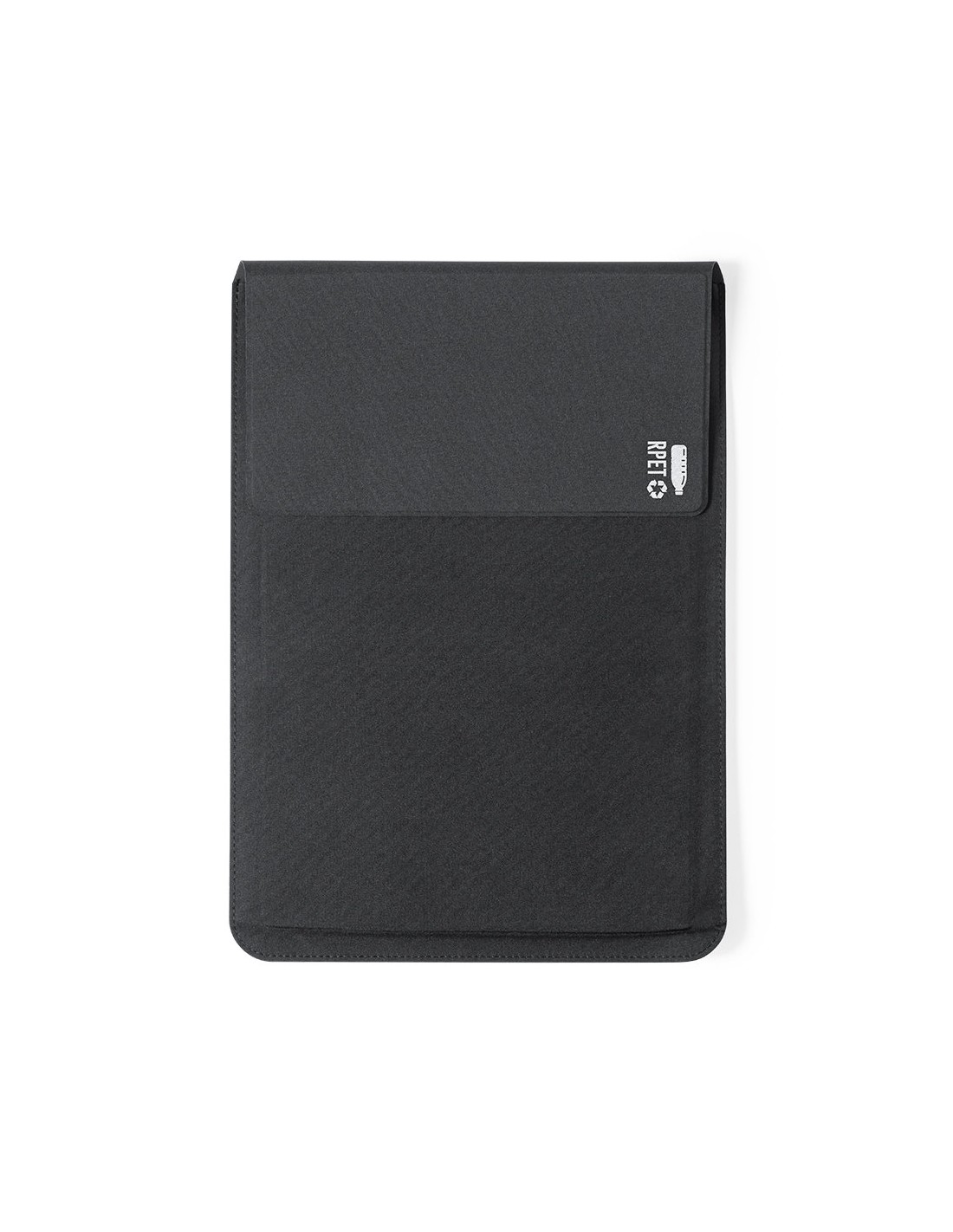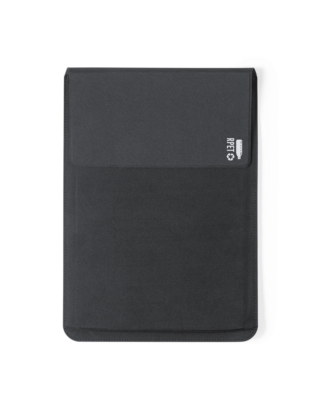 Funda de ordenador fabricada en poliéster 600D RPET, elaborado a partir de plástico reciclado, para así fomentar la reutilización de residuos plásticos y ayudar a la sostenibilidad del planeta. Con cierre magnético y distintivo RPET. Interior desplegable con alfombrilla para ratón y soporte inclinado para ordenador. Presentado en caja individual de diseño.