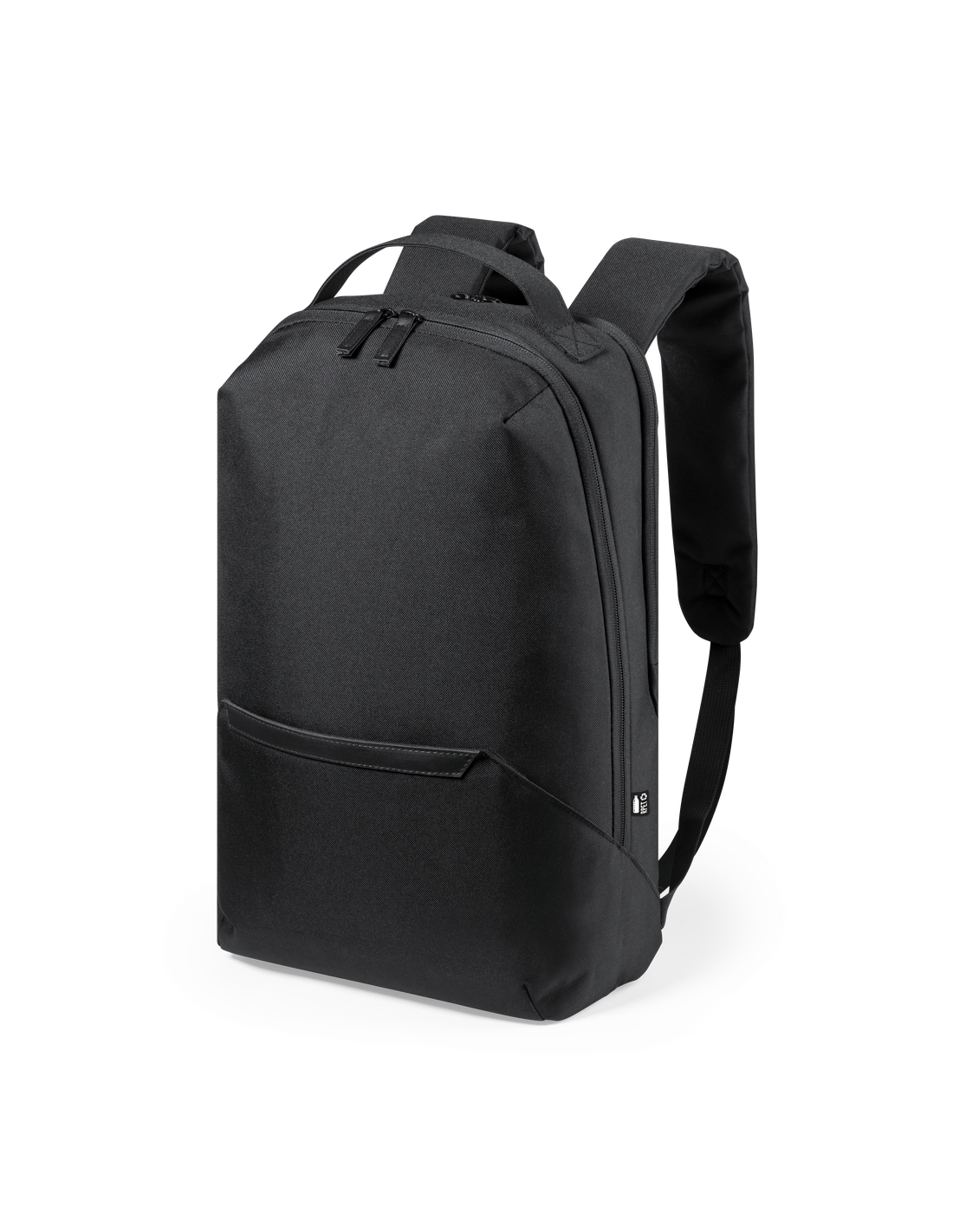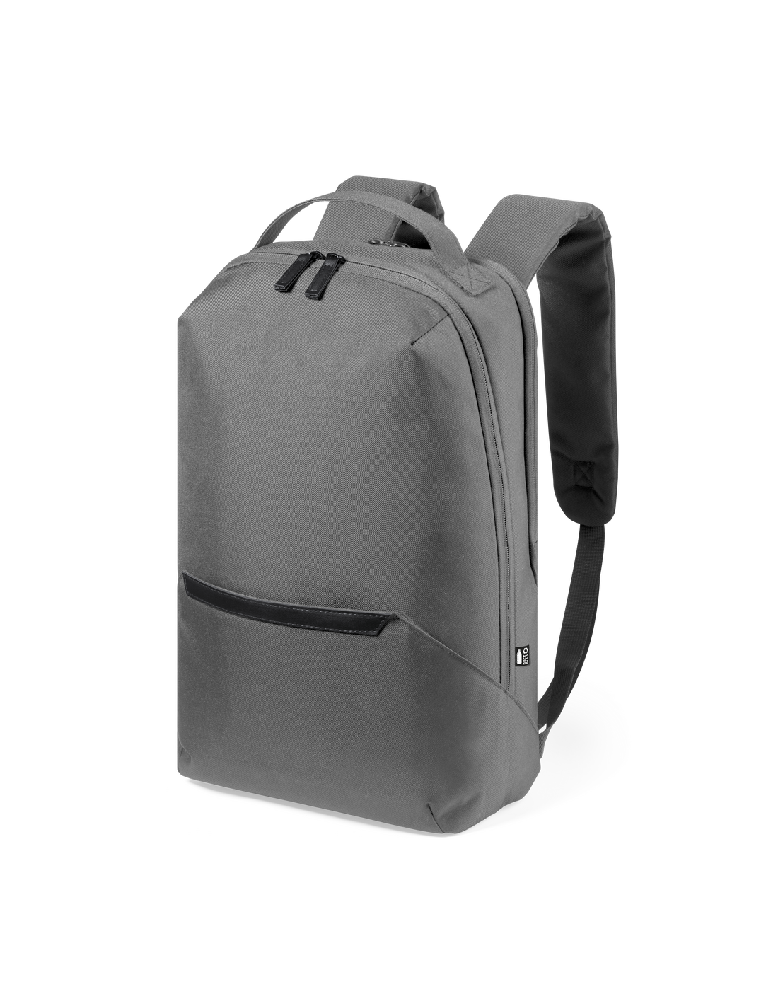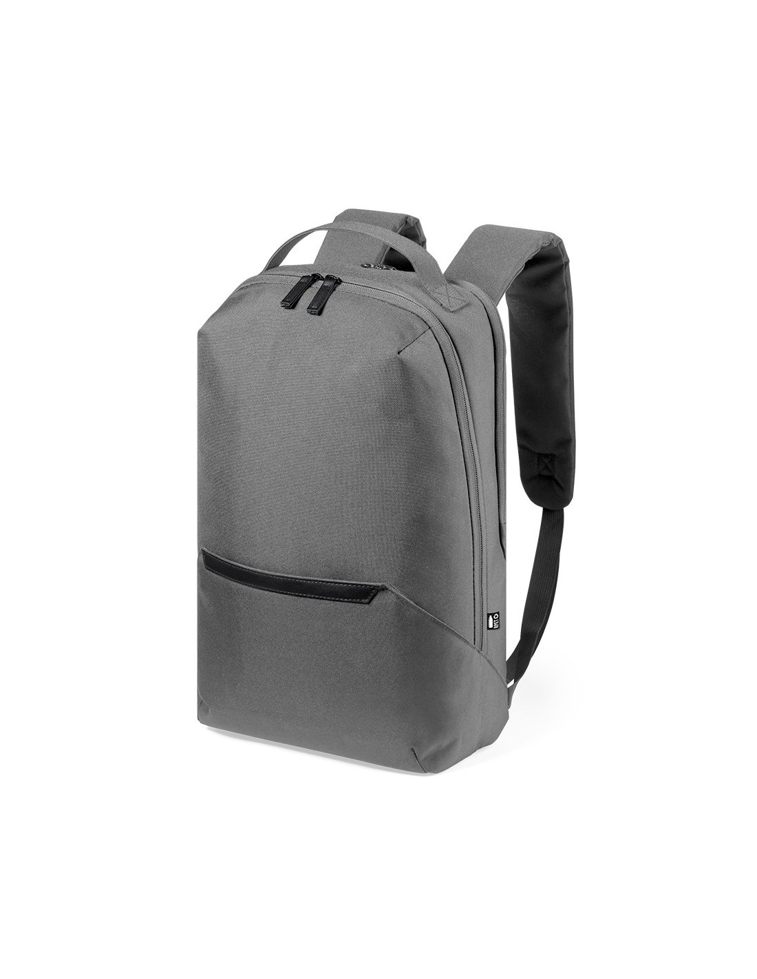 Mochila fabricada en resistente poliéster 600D RPET, elaborado a partir de plástico reciclado, para así fomentar la reutilización de residuos plásticos y ayudar a la sostenibilidad del planeta. Compartimento principal con cierre de cremallera de doble tirador y bolsillo en frontal. Interior con bolsillos acolchados para tablet de hasta 10 pulgadas y ordenador portátil de hasta 15 pulgadas. Accesorio de ajuste en trolley, con bolsillo antirrobo en parte trasera. Espalda y cintas de hombros acolchadas y ajustables, con distintivo RPET en etiqueta.