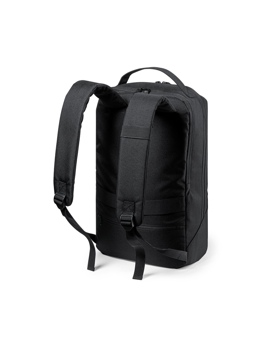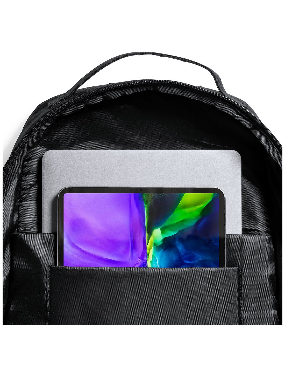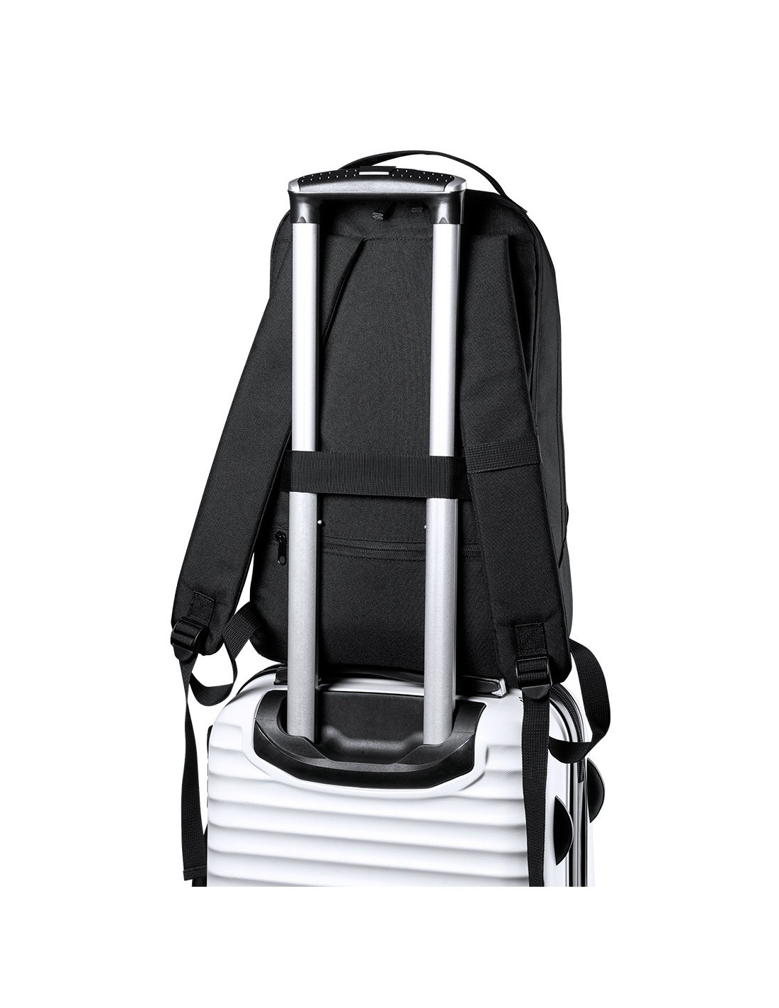 Mochila fabricada en resistente poliéster 600D RPET, elaborado a partir de plástico reciclado, para así fomentar la reutilización de residuos plásticos y ayudar a la sostenibilidad del planeta. Compartimento principal con cierre de cremallera de doble tirador y bolsillo en frontal. Interior con bolsillos acolchados para tablet de hasta 10 pulgadas y ordenador portátil de hasta 15 pulgadas. Accesorio de ajuste en trolley, con bolsillo antirrobo en parte trasera. Espalda y cintas de hombros acolchadas y ajustables, con distintivo RPET en etiqueta.
