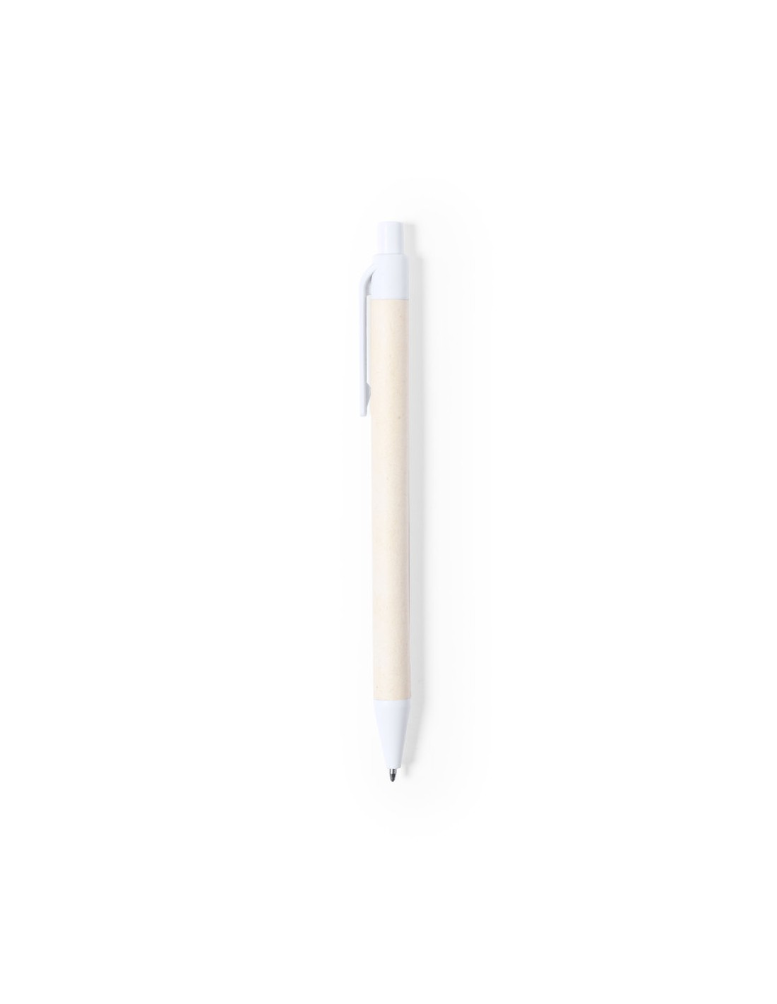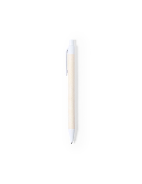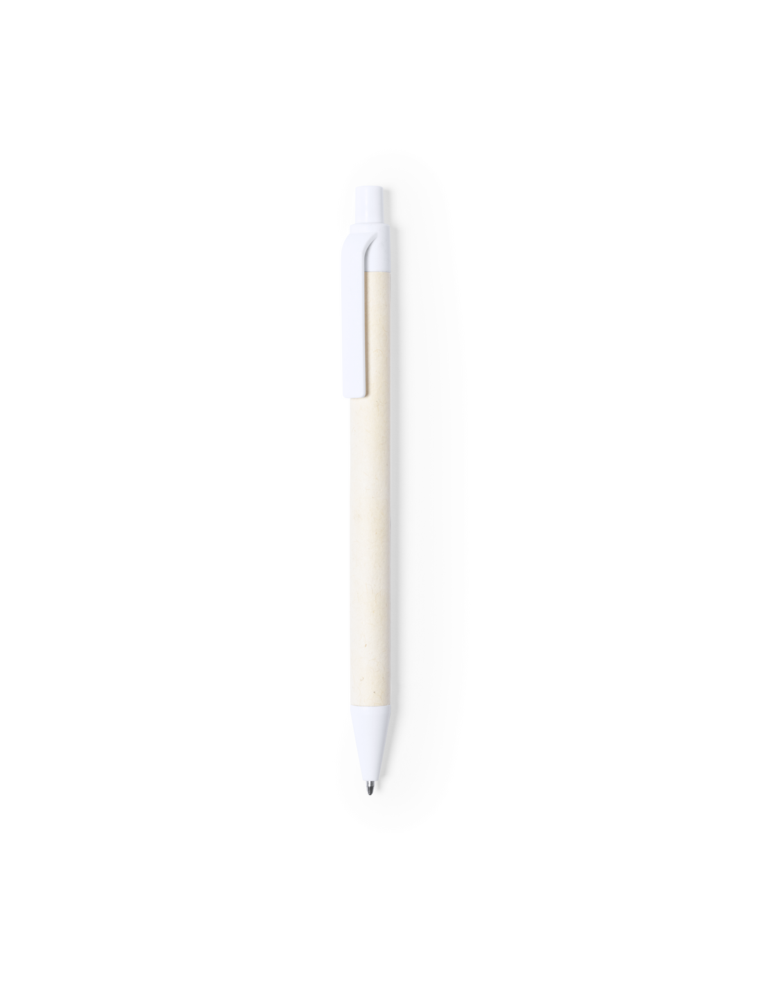 Bolígrafo de línea nature, con cuerpo fabricado con cartones de leche reciclados y detalles en color blanco. De mecanismo pulsador y en tinta azul, con distintivo cartón de leche reciclado en el cuerpo. Los cartones de leche se componen en su mayor parte de cartón y aluminio. Durante su proceso de reciclado, se separan los distintos materiales del envase para su reutilización y nuevo uso, contribuyendo así a recorrer el camino infinito de la economía circular. Este material se caracteriza por su alto grado de reciclabilidad, así como por su ligereza y resistencia.