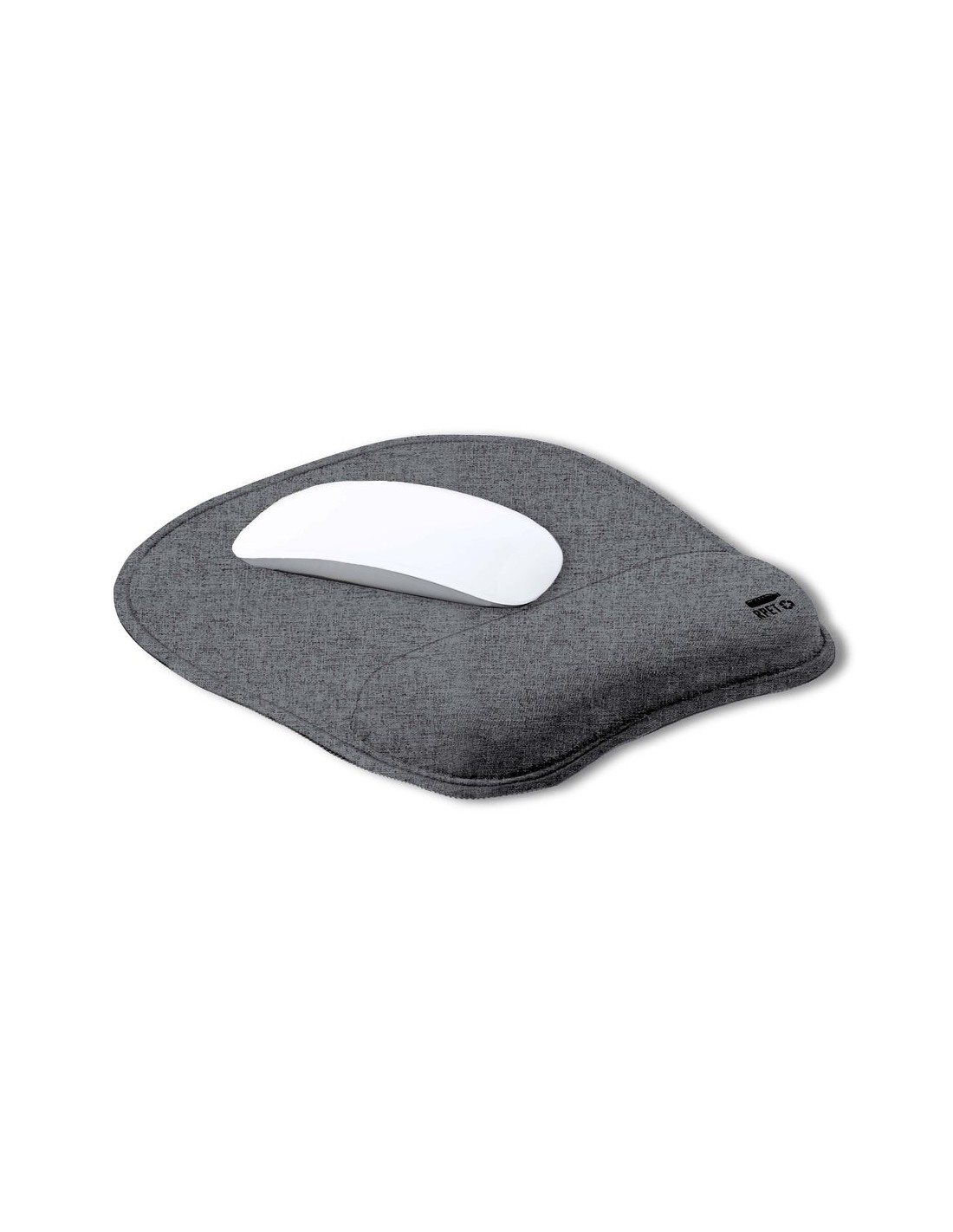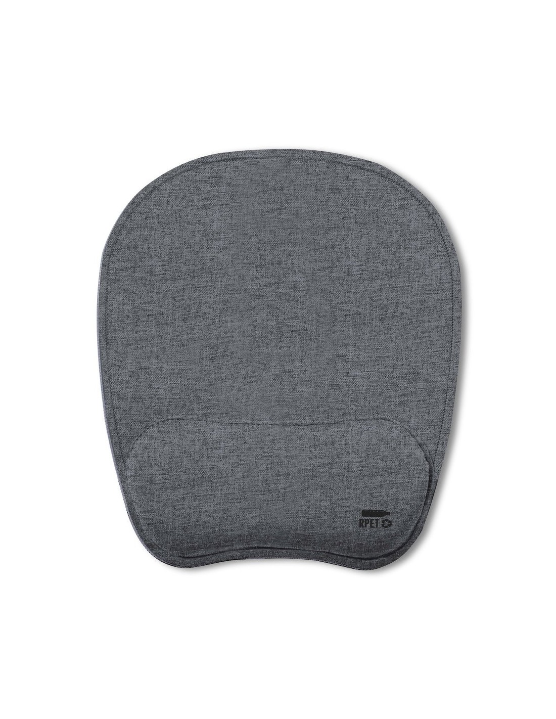 Alfombrilla para ratón fabricada en suave poliéster RPET, elaborado a partir de plástico reciclado para así fomentar la reutilización de residuos plásticos y ayudar a la sostenibilidad del planeta. Con base antideslizante en silicona y reposa muñecas acolchado para prevenir el estrés y el dolor en las articulaciones. Distintivo RPET impreso.