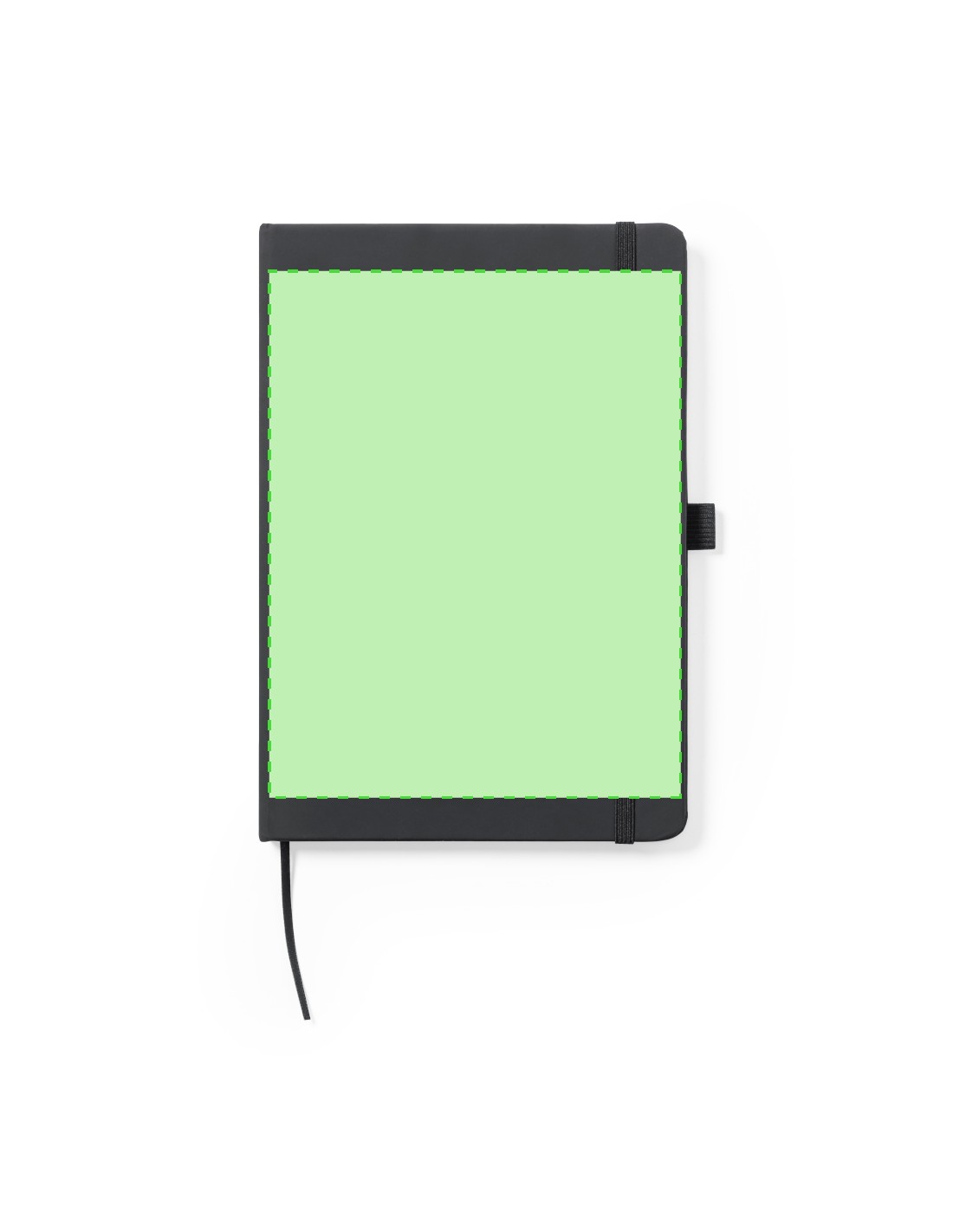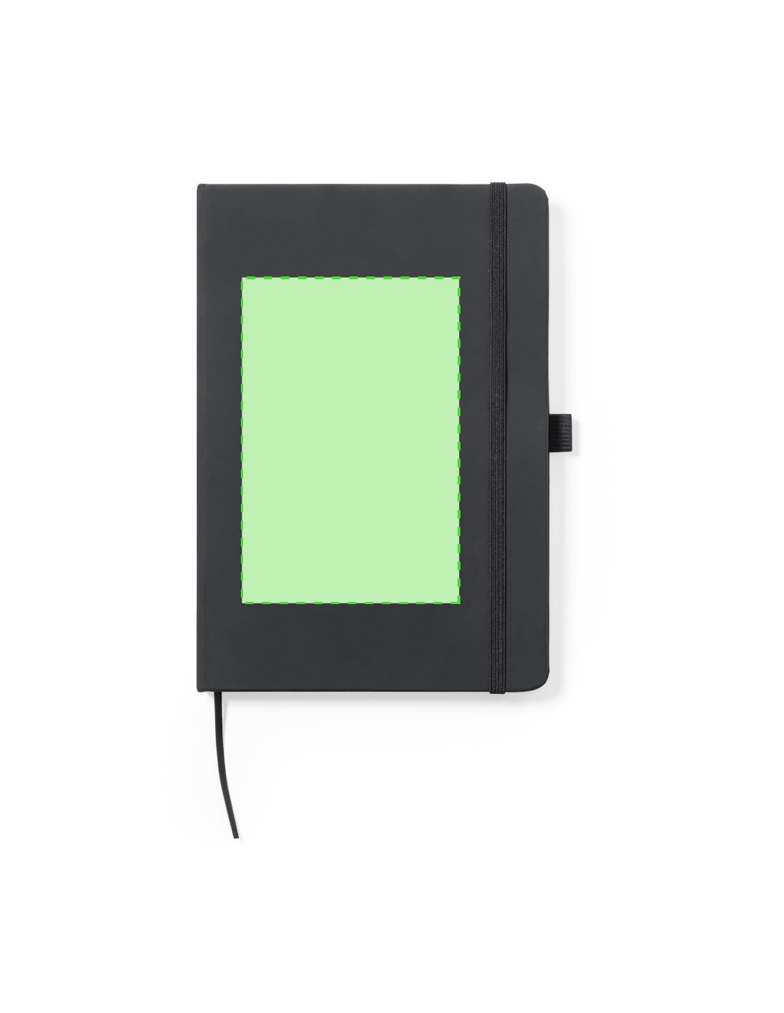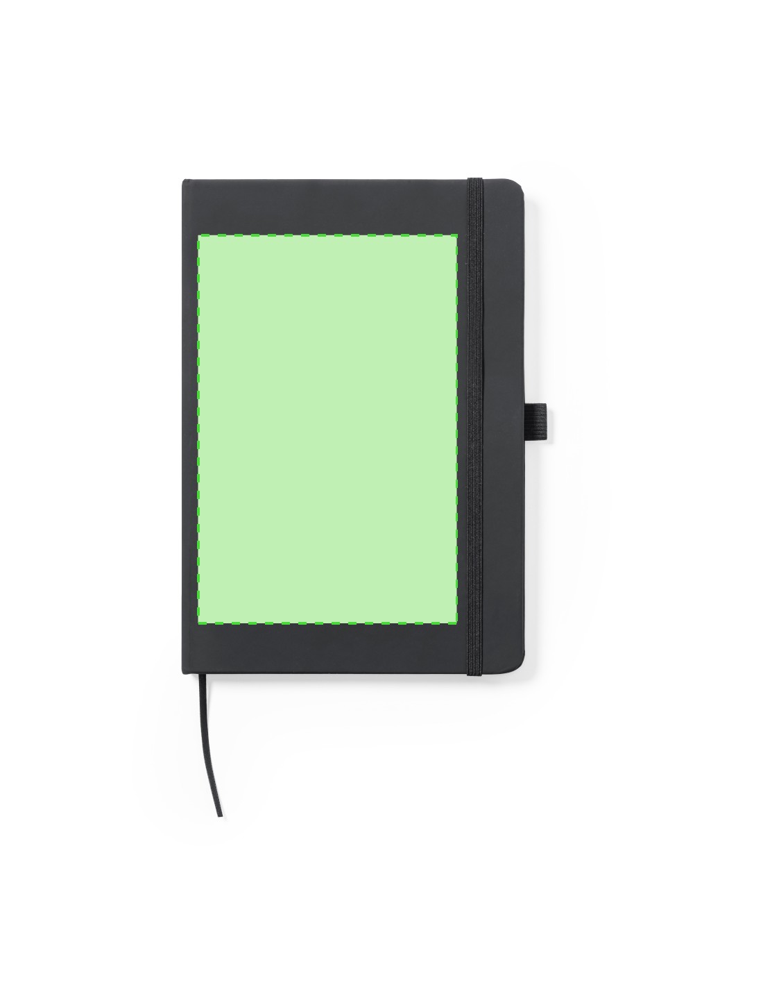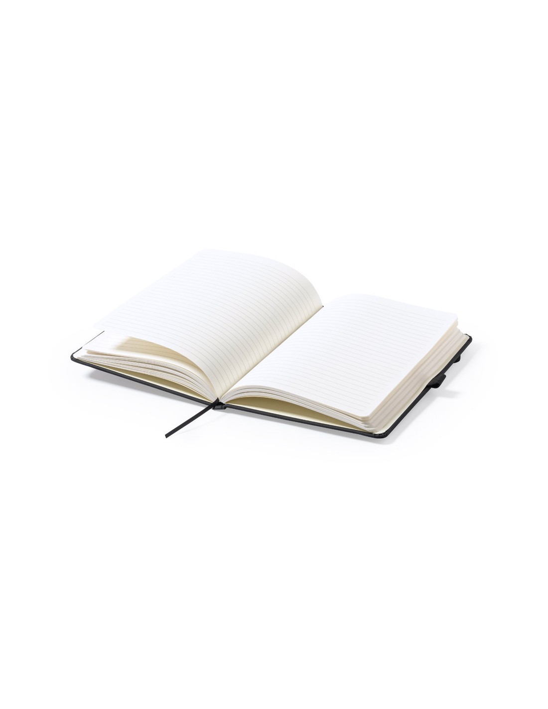 Bloc de notas fabricado en polipiel de elegante acabado en negro. Con tapas duras, marcapáginas y elástico de sujeción a juego. Interior con 100 hojas de disposición a 1 raya y soporte para bolígrafo (bolígrafo no incluido).