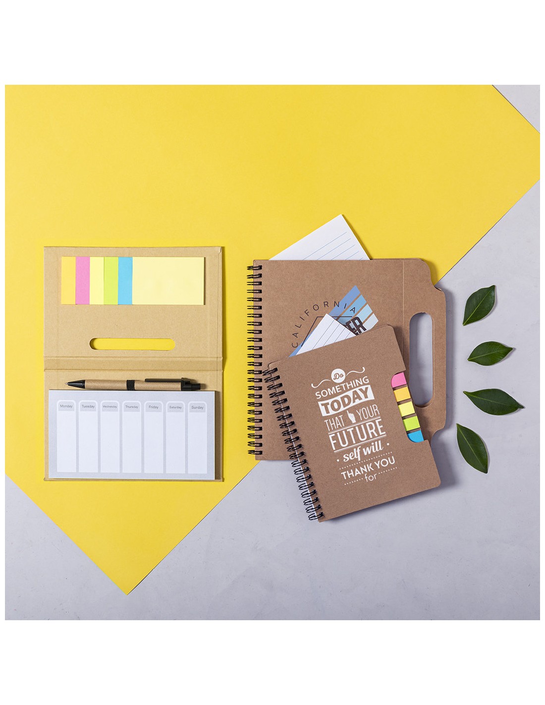 - Bloc 70 Hojas. 25 Notas Adhesivas 7,5 x 10 cm. 125 Mininotas Adhesivas 1,5 x 7,5 cm. Bolígrafo Cartón Reciclado Incluido