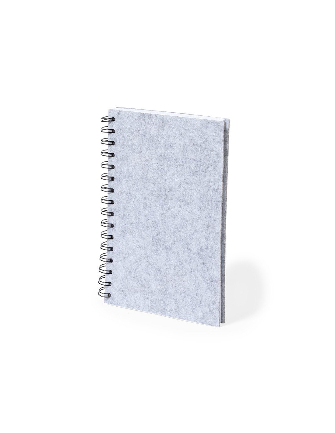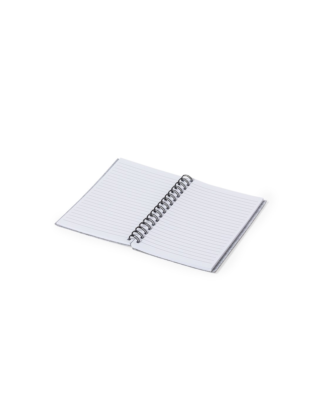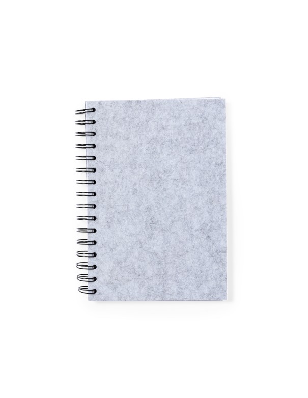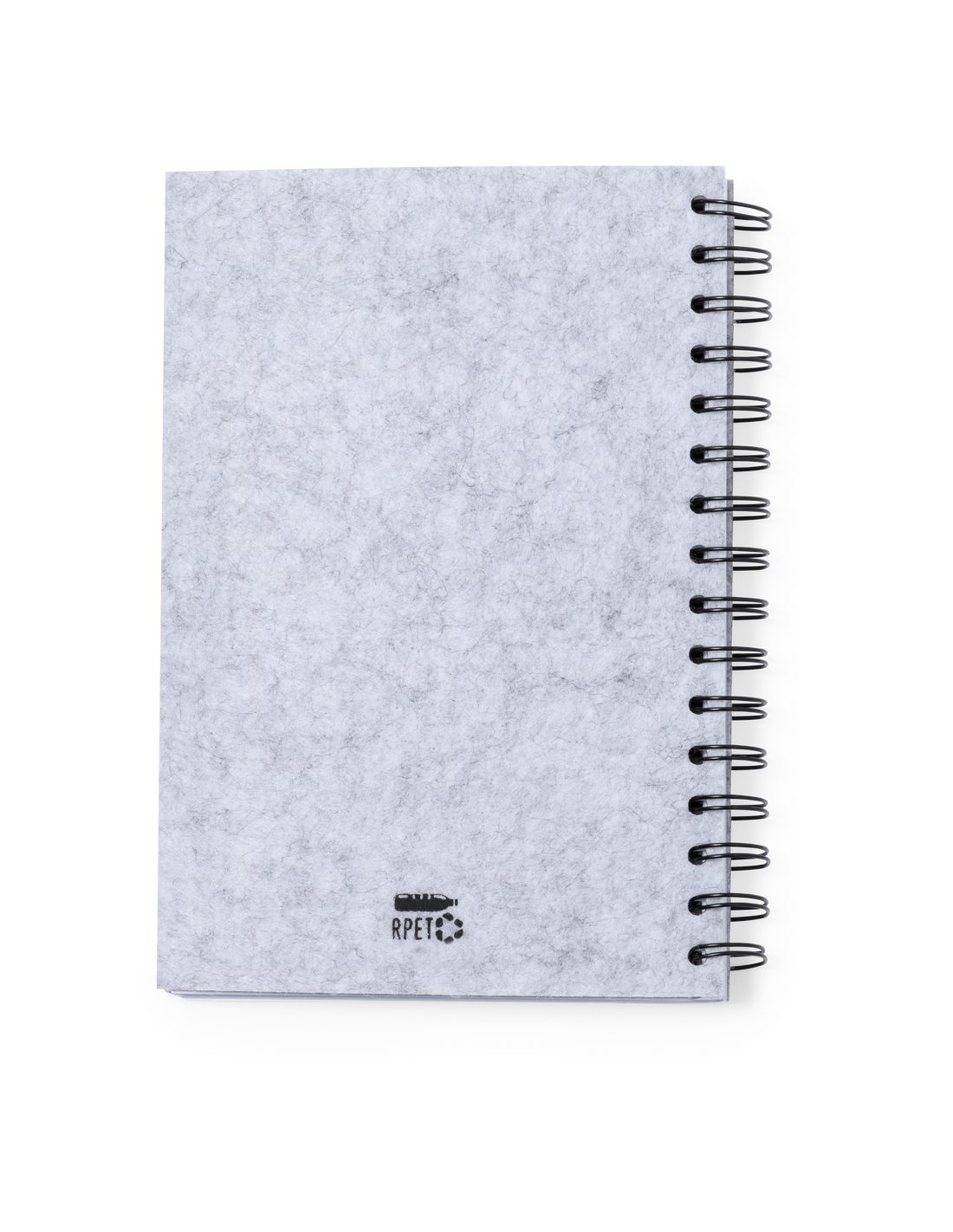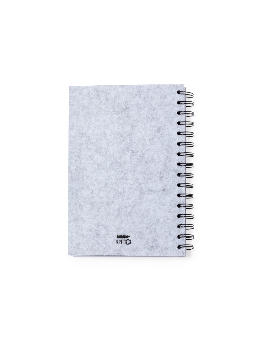 Libreta de anillas con tapas en suave fieltro RPET reciclado. Interior con 100 hojas blancas con disposición a una raya. Incluye distintivo RPET. Presentado en bolsa individual reciclada.El fieltro RPET reciclado es fruto de la combinación del proceso de reciclaje de materiales plásticos junto a la técnica milenaria de fabricación del fieltro, dando como resultado un material de eco-tendencia que, además de ser de origen reciclado, también se convierte en reciclable.