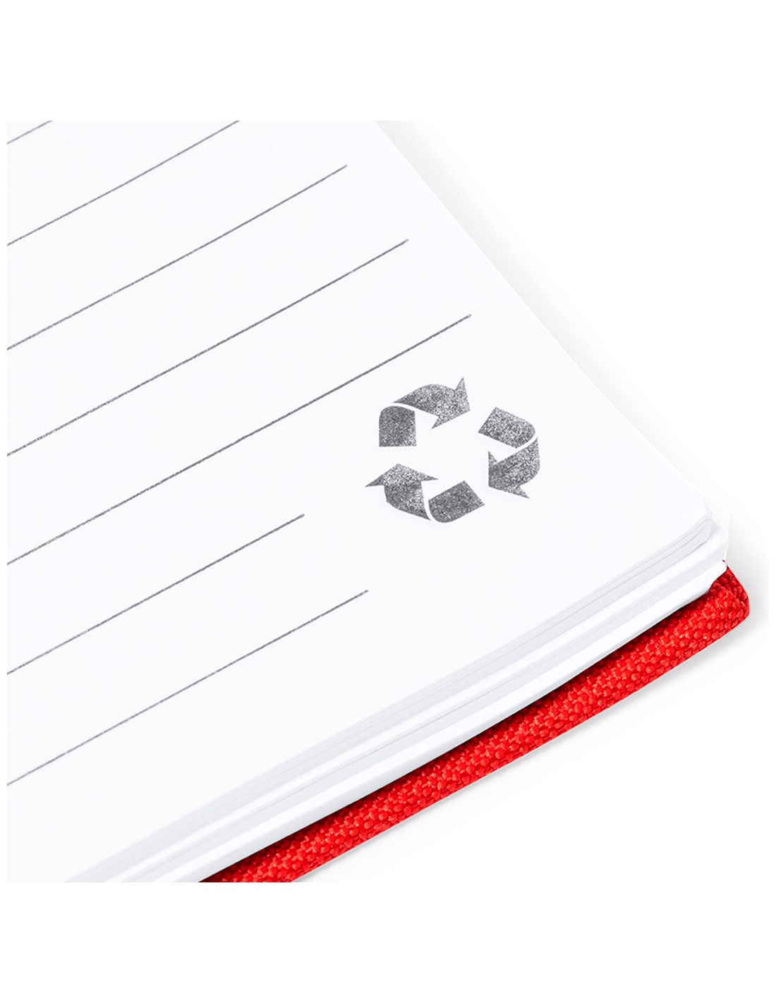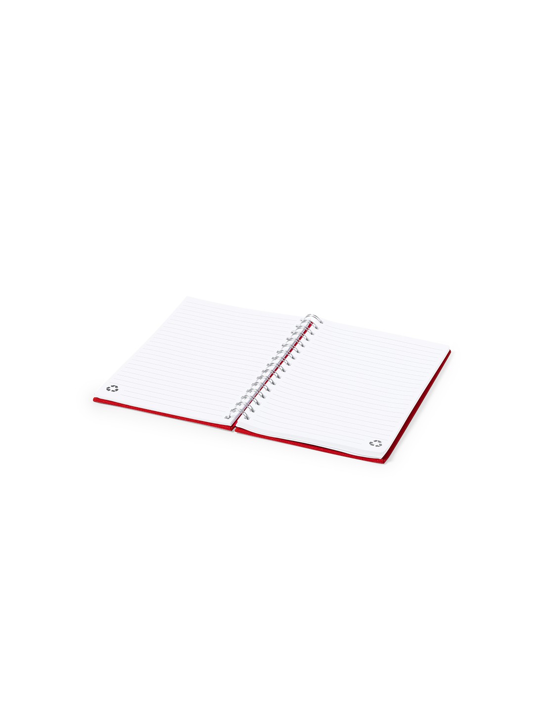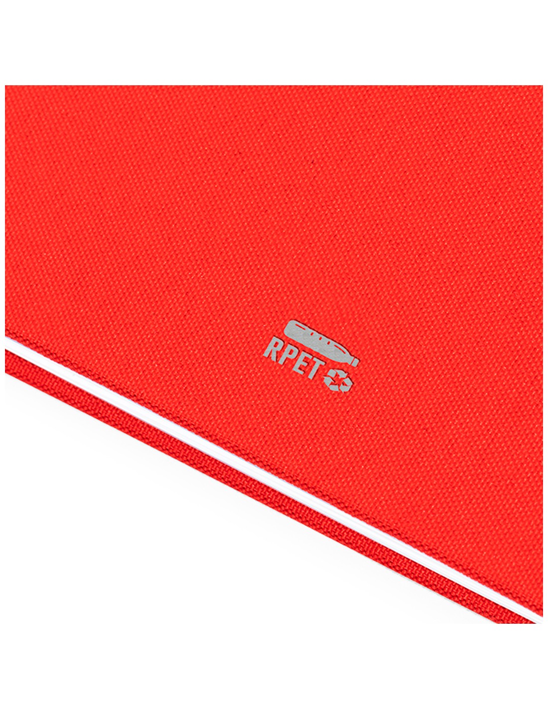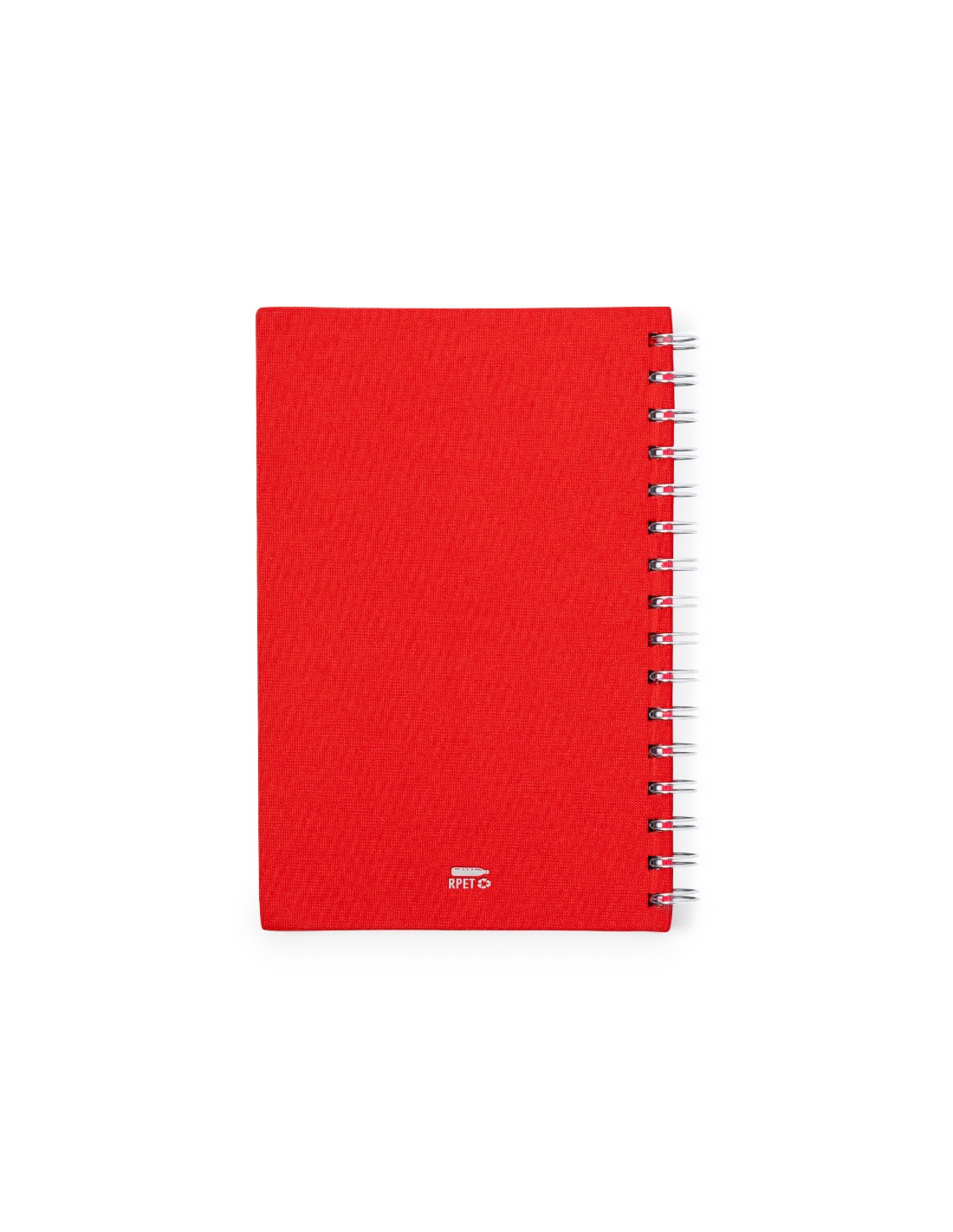 Libreta de anillas A5 con tapas duras en resistente material RPET 300D. Interior con 100 hojas a una raya y 100% recicladas microperforadas. Incluye distintivo RPET en contraportada. Presentado en bolsa individual reciclada.El material RPET se elabora a partir de plástico reciclado, para así fomentar la reutilización de residuos plásticos y ayudar a la sostenibilidad del planeta.