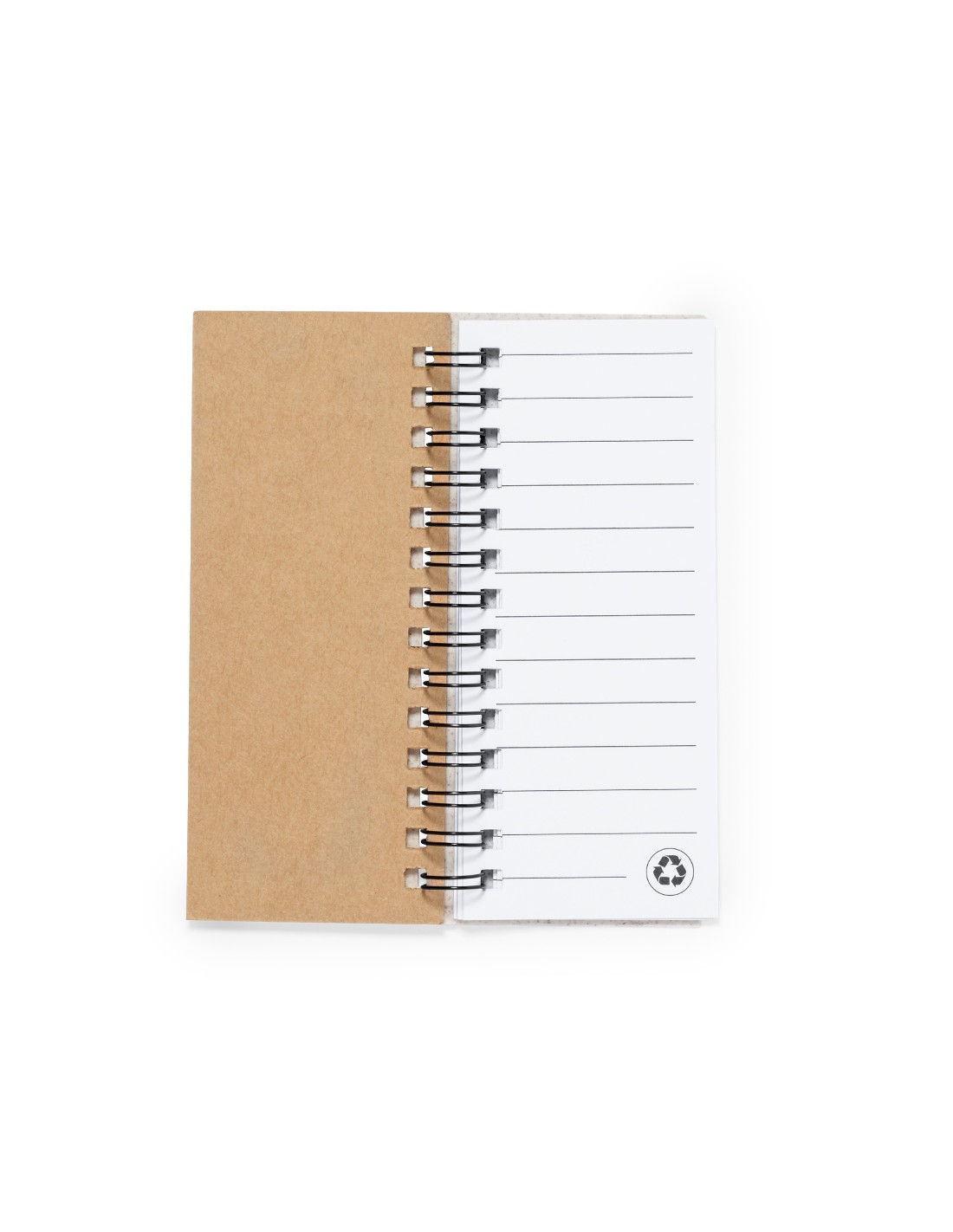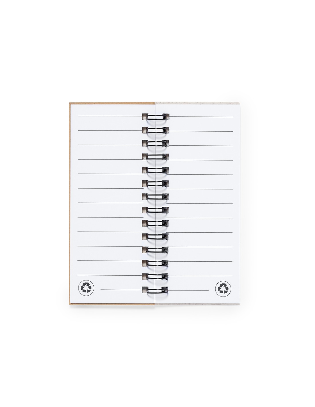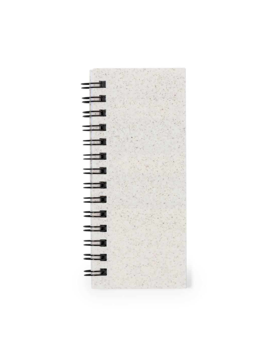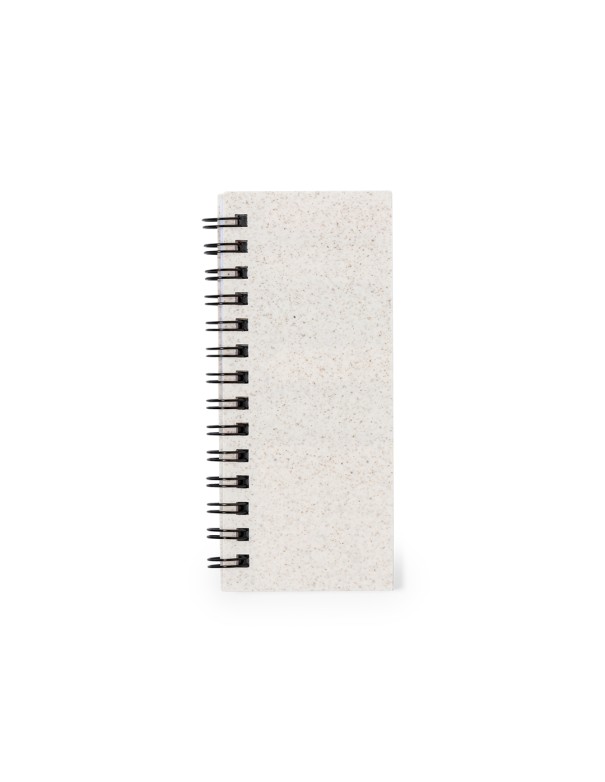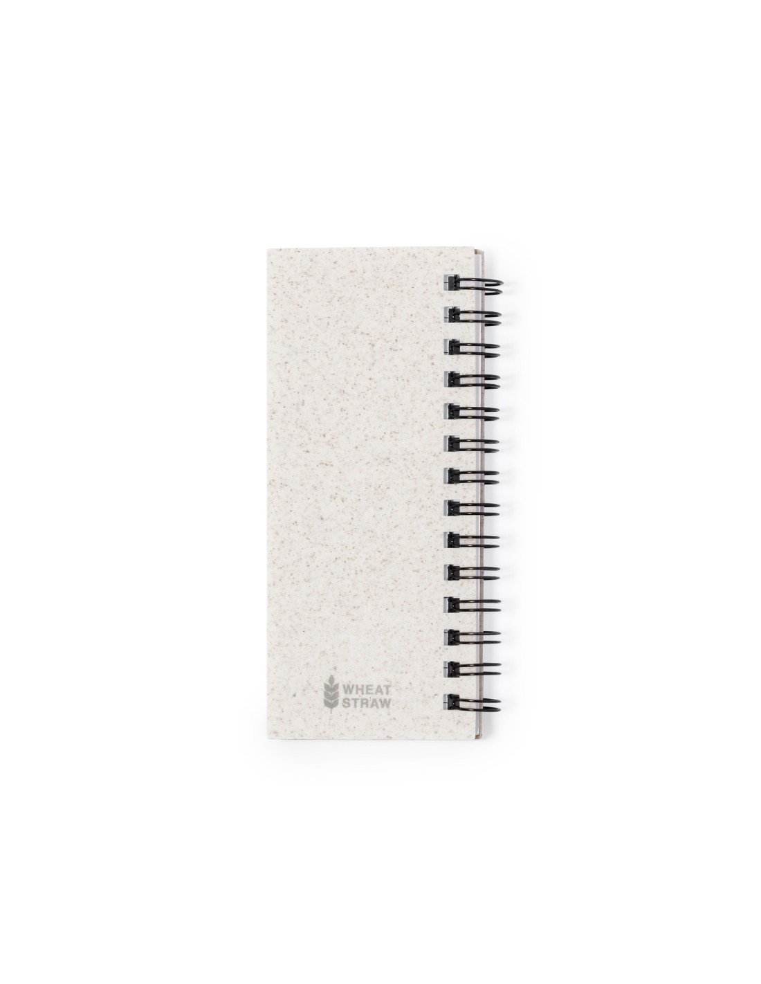 Bloc de notas con tapas en fibra de trigo. Con distintivo wheat straw en la contraportada. Incluye:Bloc de anillas de 30 hojas blancas con disposición a una raya y distintivo reciclado por ambas caras.25 notas adhesivas medianas.125 mininotas adhesivas en varios colores. Elaborado con elementos vegetales para así fomentar la utilización de materias primas naturales y reducir las emisiones contaminantes.Presentado en bolsa individual reciclada.