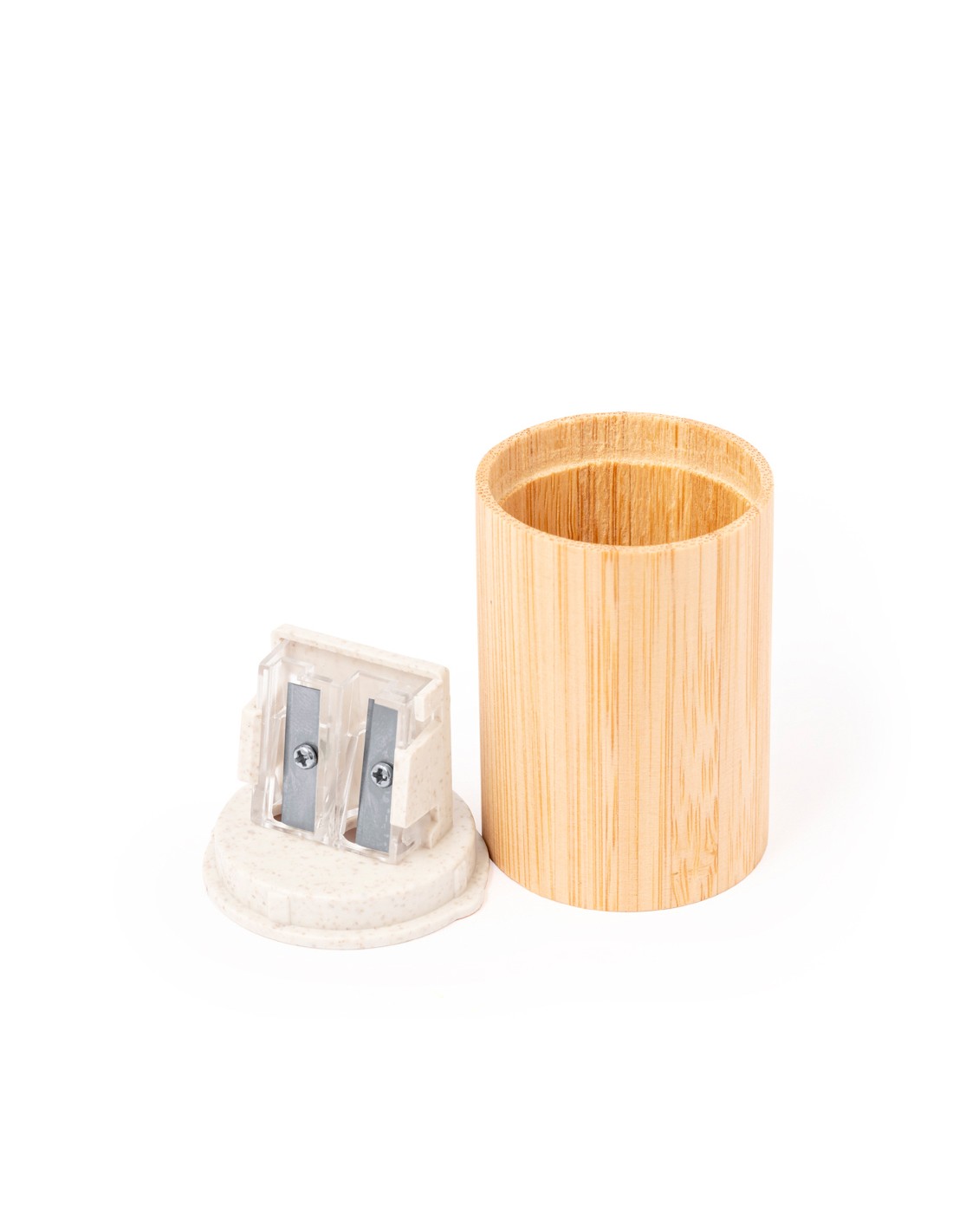 Original sacapuntas fabricado en caña de trigo y bambú. Fácil y cómodo de usar con dos sacapuntas de diá metros diferentes; hechos en caña de trigo para afilar lápices diferentes. Además, tiene contenedor hecho en bambú para guardar la viruta. La caña de trigo fomenta la utilización de materias primas naturales, reduciendo así las emisiones contaminantes.Materiales como el bambú fomentan la utilización de materias primas naturales, reduciendo las emisiones contaminantes. Proviene de una planta de gran resistencia y versatilidad, con crecimiento y regeneración rápidos, siendo una excelente alternativa al uso de madera tradicional.