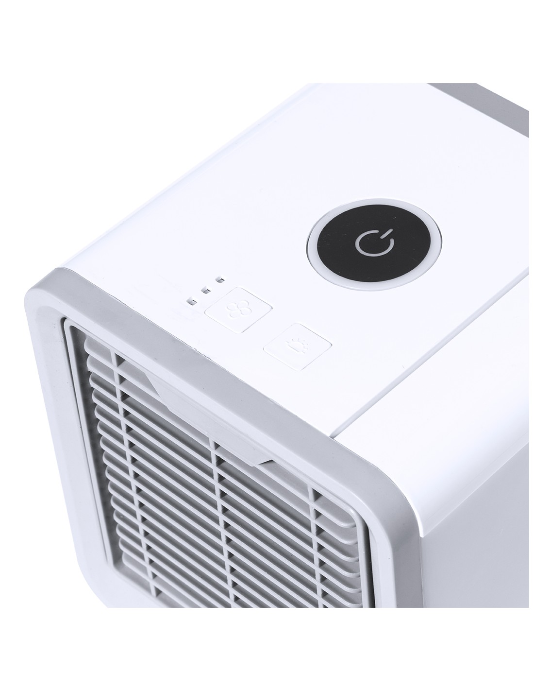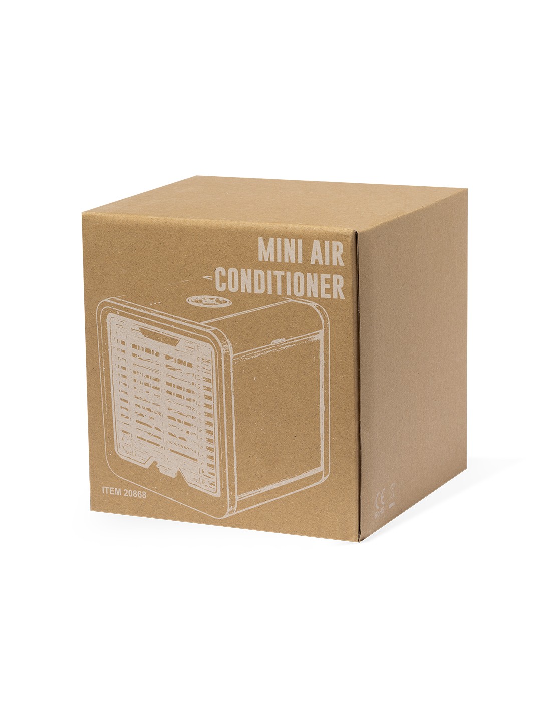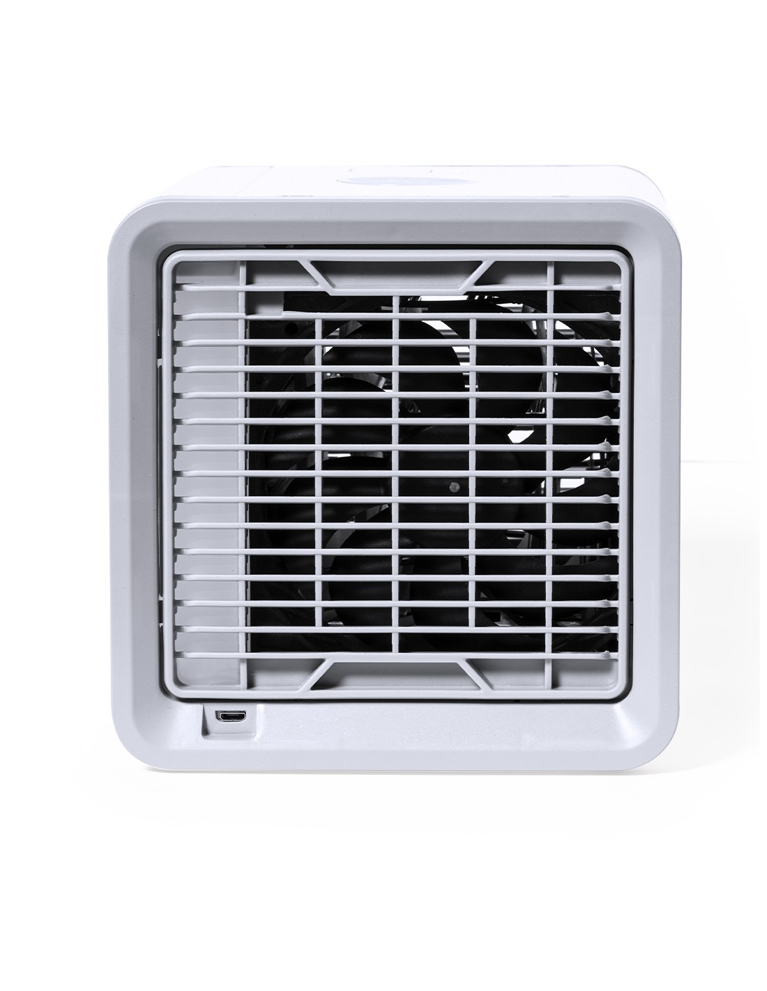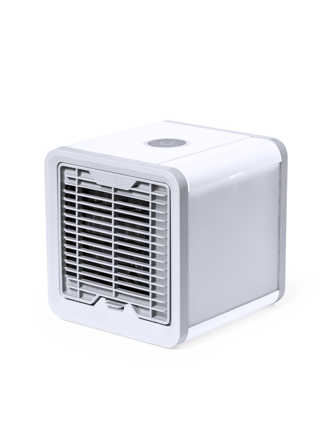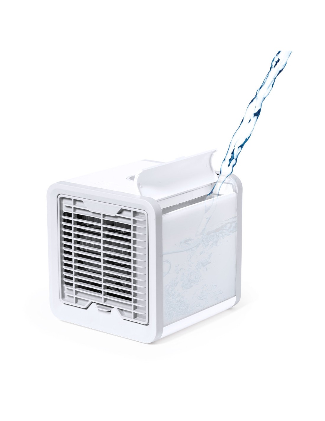 Mini dispositivo portátil de aire acondicionado para enfriar y purificar el aire. Al ser pequeño y ligero, es fácilmente transportable. Ventilador con tres velocidades a elegir (alta, media, baja). Incluye un depósito de agua de gran capacidad -700 ml-, con posibilidad de añadir cubitos de hielo para conseguir un aire más fresco alrededor. Se conecta a la corriente eléctrica a través de un cable de alimentación USB -incluido- y viene presentado individualmente en caja de diseño kraft. Disponible manual de instrucciones en español e inglés.