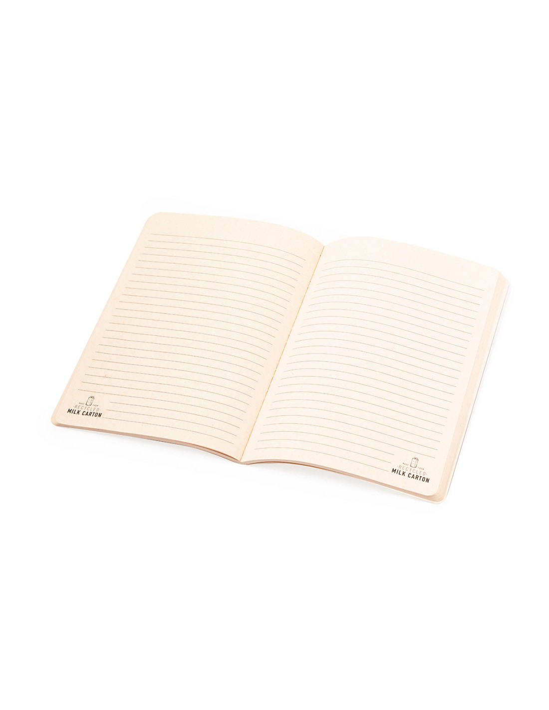 Libreta fabricada a partir de cartones de leche reciclados. Con tapas blandas, de acabado cosido y 60 hojas interiores blancas a una raya. Logotipo Recycled Milk Carton en la parte frontal y en las hojas interiores. Presentado en bolsa individual reciclada.Los cartones de leche se componen en su mayor parte de cartón y aluminio. Durante su proceso de reciclado, se separan los distintos materiales del envase para su reutilización y nuevo uso, contribuyendo así a recorrer el camino infinito de la economía circular. Este material se caracteriza por su alto grado de reciclabilidad, así como por su ligereza y resistencia.