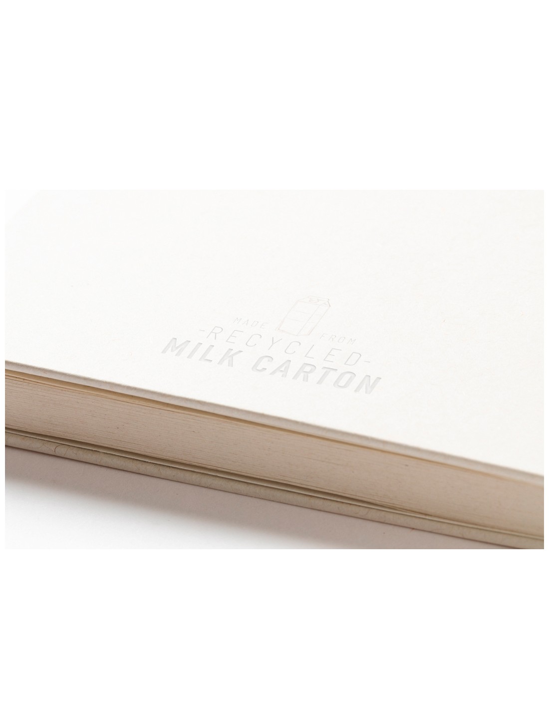 Libreta de anillas doble metálicas A5 con tapas duras fabricado a partir de cartones de leche reciclados. Interior con 80 hojas color natural a una raya microperforadas y elástico de cierre en color natural. Logotipo Recycled Milk Carton en contra portada y presentada en bolsa individual reciclada.Los cartones de leche se componen en su mayor parte de cartón y aluminio. Durante su proceso de reciclado, se separan los distintos materiales del envase para su reutilización y nuevo uso, contribuyendo así a recorrer el camino infinito de la economía circular. Este material se caracteriza por su alto grado de reciclabilidad, así como por su ligereza y resistencia.