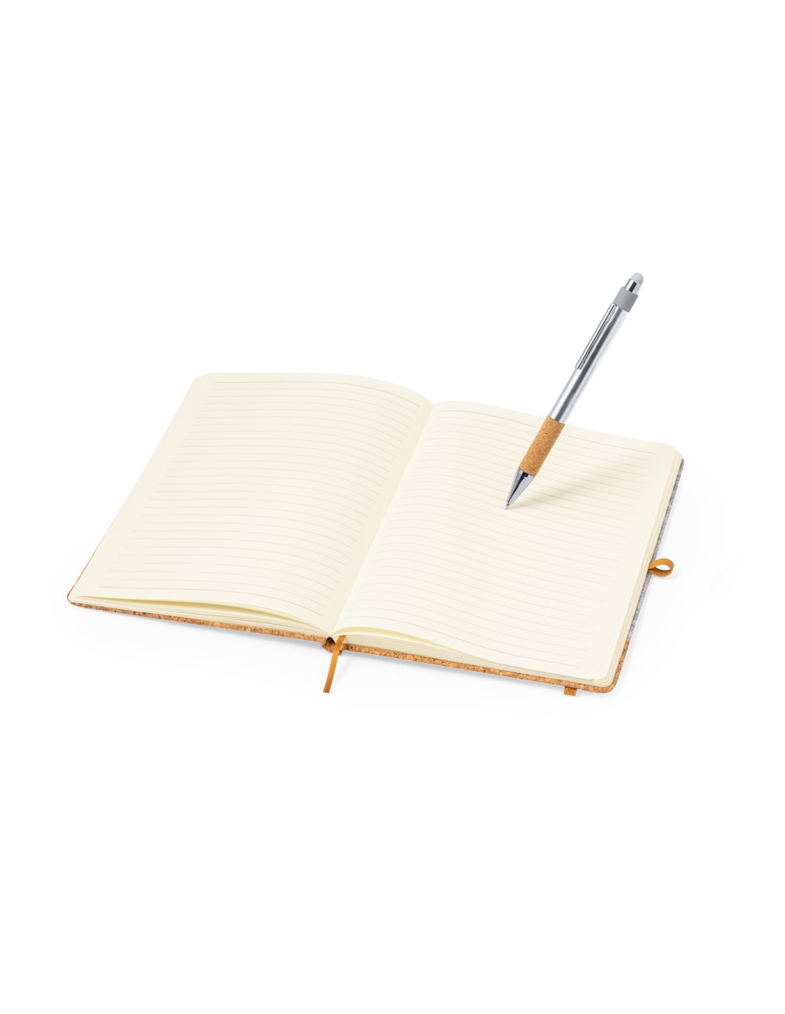 - Bloc Portada Rígida. 80 Hojas. Bolígrafo Aluminio Reciclado/ Corcho. Carga Jumbo