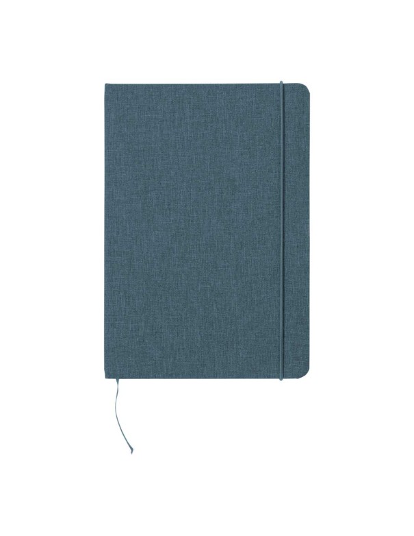 Bloc de notas con tapas rígidas fabricadas en RPET. Interior con 80 hojas lisas. Incluye marcapáginas, con logotipo RPET en la contraportada. Disponible en elegantes colores y presentado individualmente en bolsa reciclada. El material RPET se elabora a partir de plástico reciclado, para así fomentar la reutilización de residuos plásticos y ayudar a la sostenibilidad del planeta.