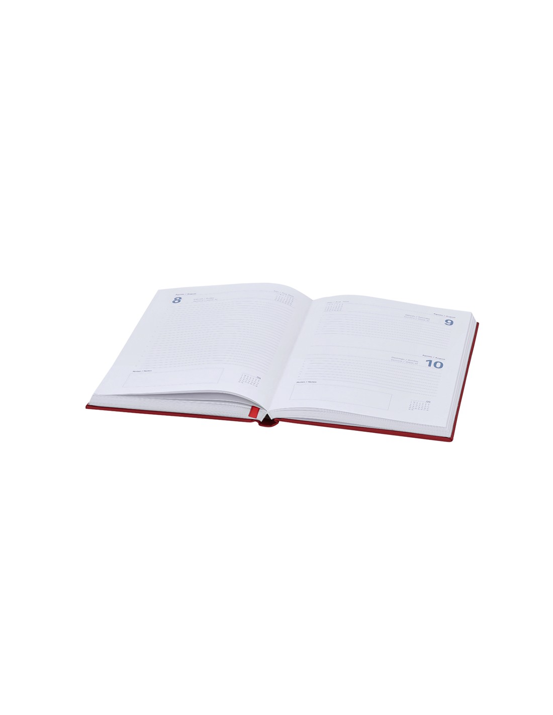 Agenda de tamaño A5 acabada en suave PU. Con cubiertas rígidas y acolchadas. Incluye caja kraft de presentación.Diseño página día y marcapáginas de tela. En 2 idiomas: castellano e inglés.