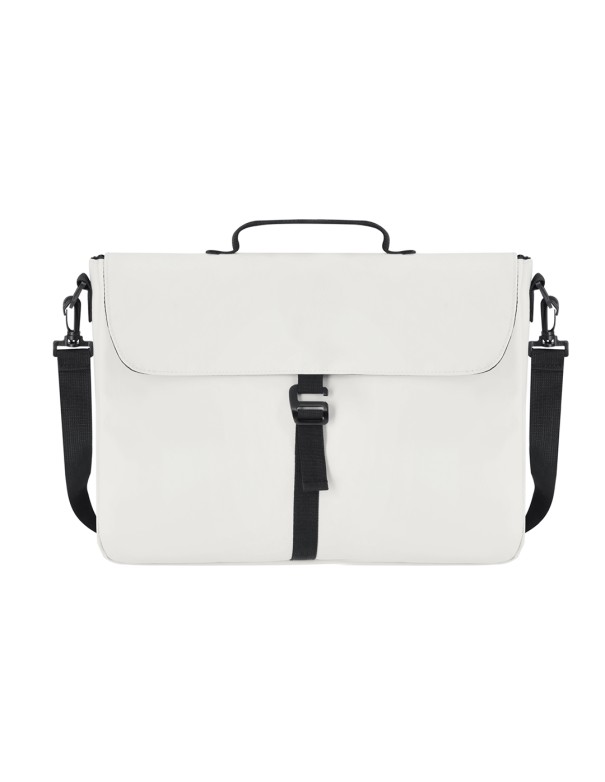 Portadocumentos de suave PU. Interior de gran capacidad con compartimento acolchado para portátiles de hasta 15 pulgadas. Con sistema de cierre de hebilla. Incluye cinta de transporte removible y acolchada.