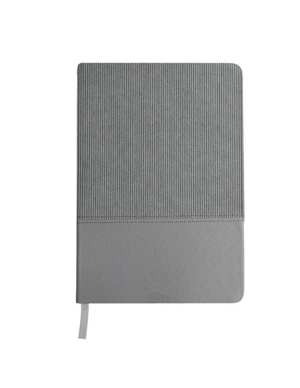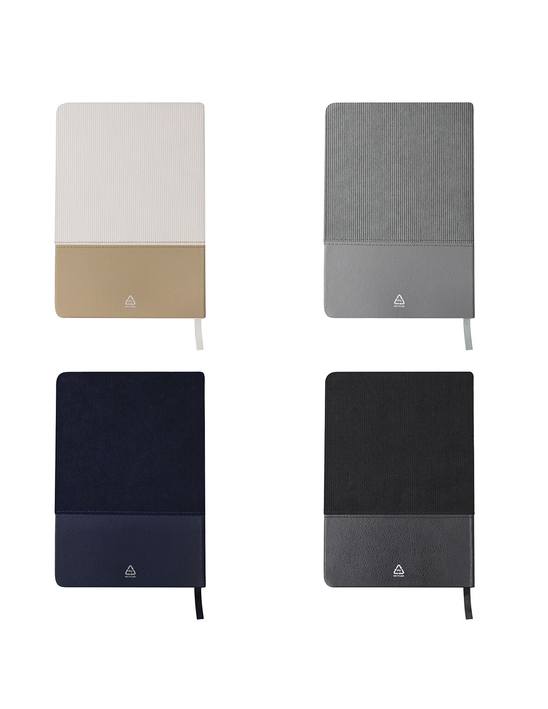 Bloc de notas A5 en suave pana de poliéster y PU Reciclado. Incluye con 80 hojas en color crema, de disposición a una raya y con marcapáginas a juego. Logotipo PU Reciclada en contraportada. La PU Reciclada destaca por su resistencia y elasticidad. Este material reciclado y reciclable es una opción sostenible que rescata las fibras desechadas en los procesos de fabricación, minimizando así el desperdicio de material y contribuyendo a su vez a reducir el impacto ambiental, manteniendo a la vez sus propiedades originales.