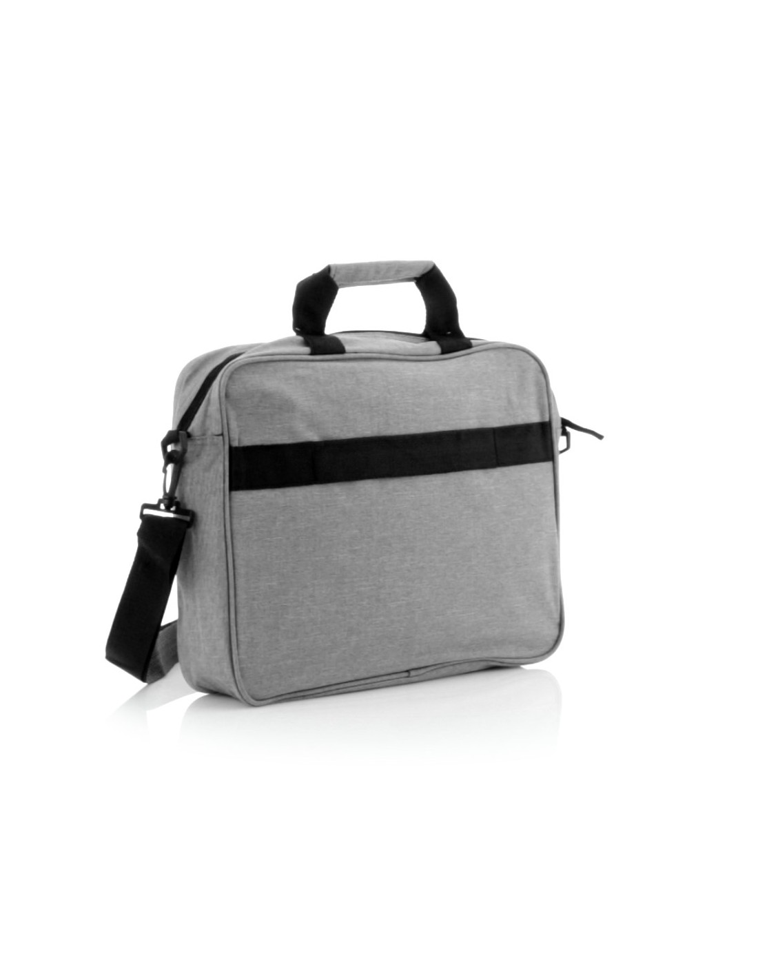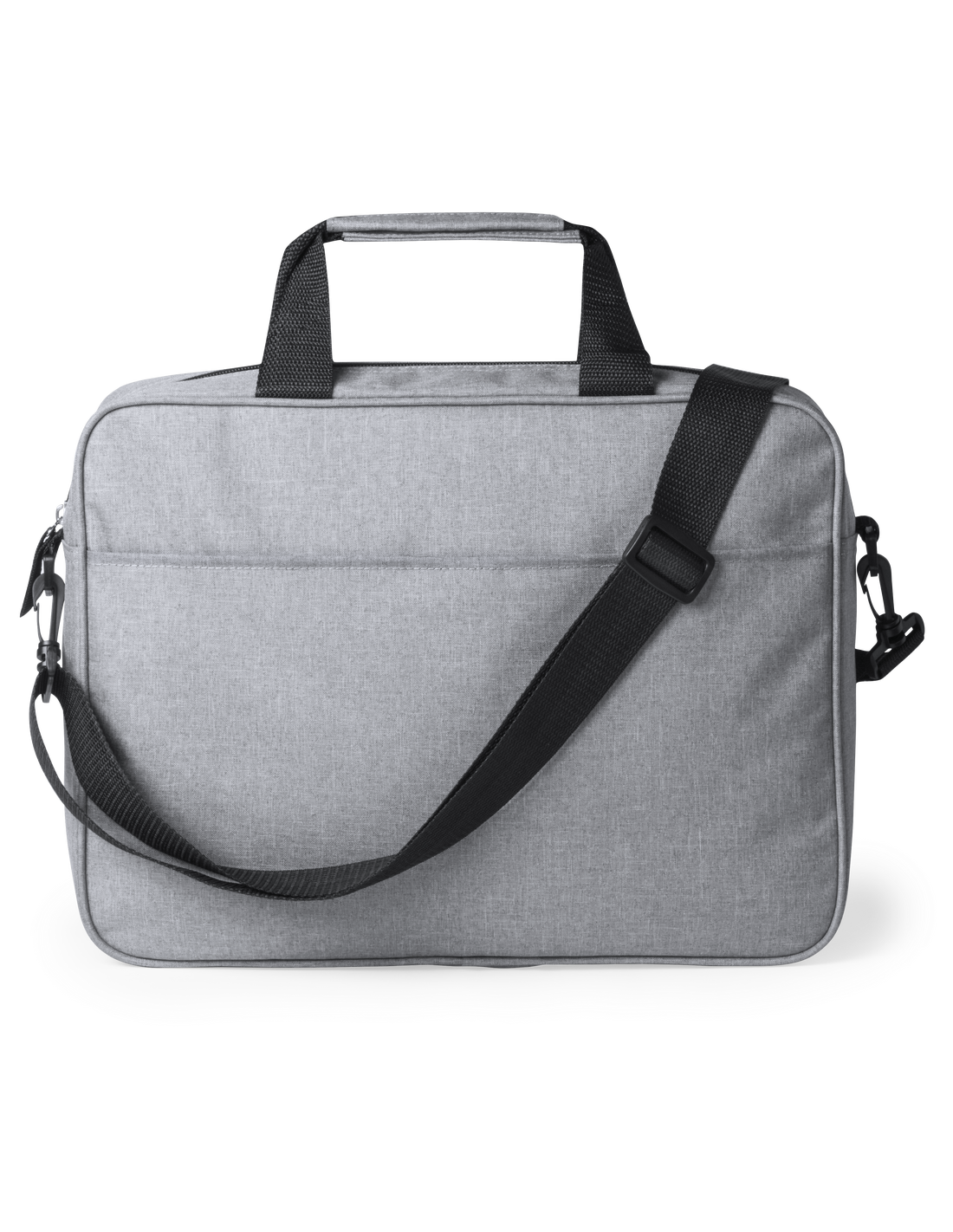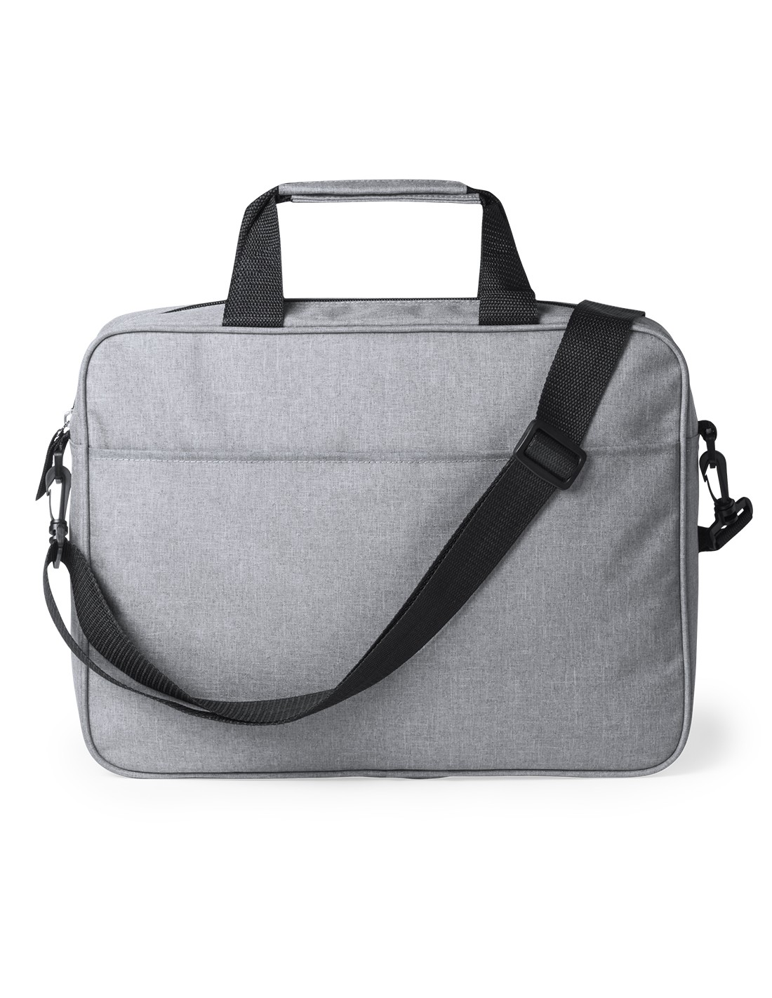 Portadocumentos de cierre de cremallera en elegante poliéster 600D de color gris. Con bolsillo exterior con cierre de velcro, cómodas asas reforzadas, cinta bandolera ajustable con cierre de mosquetón y accesorio en parte trasera para acople en barra de trolley.