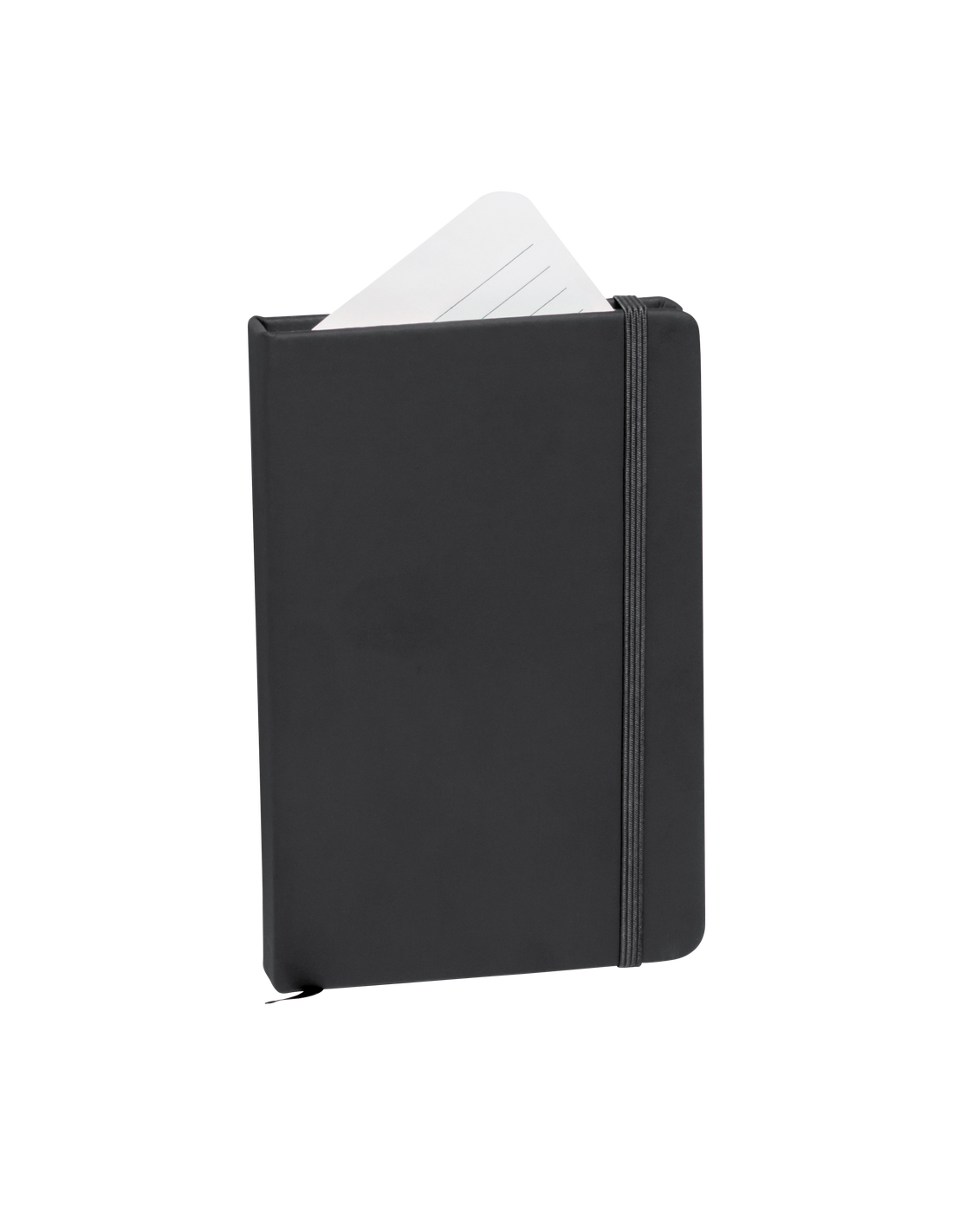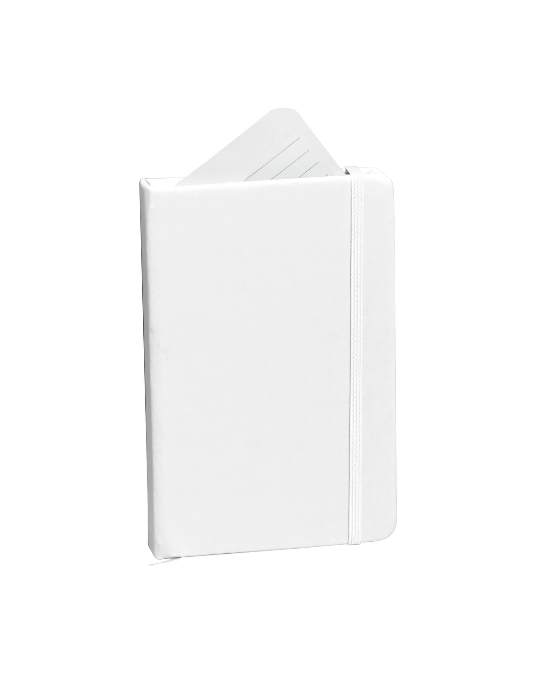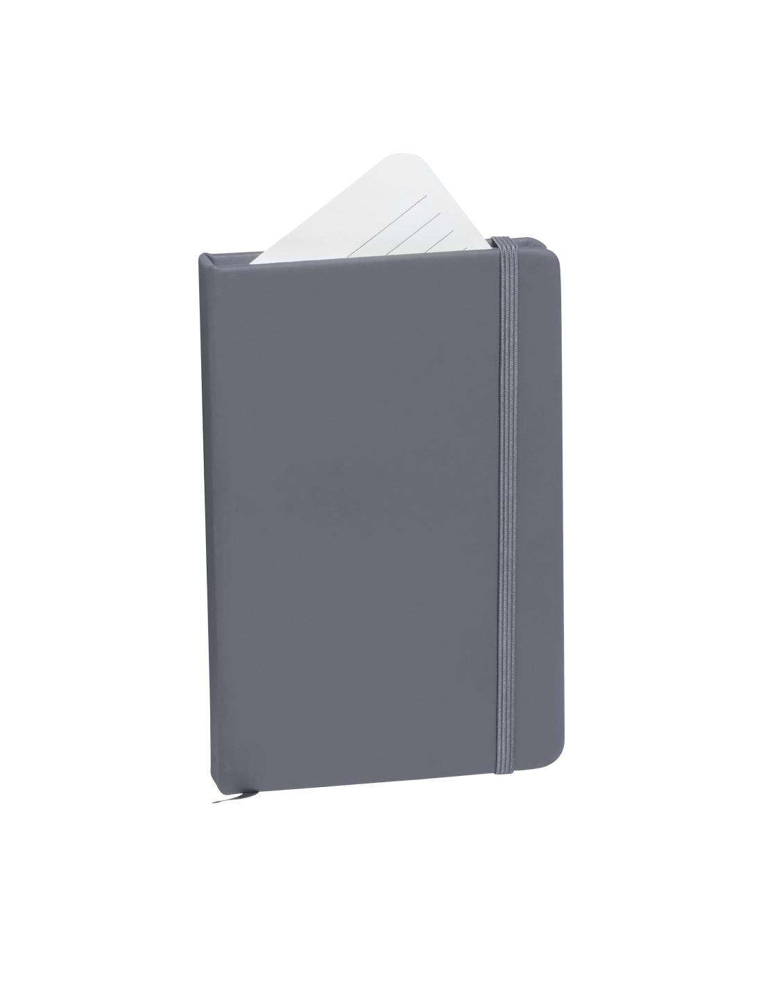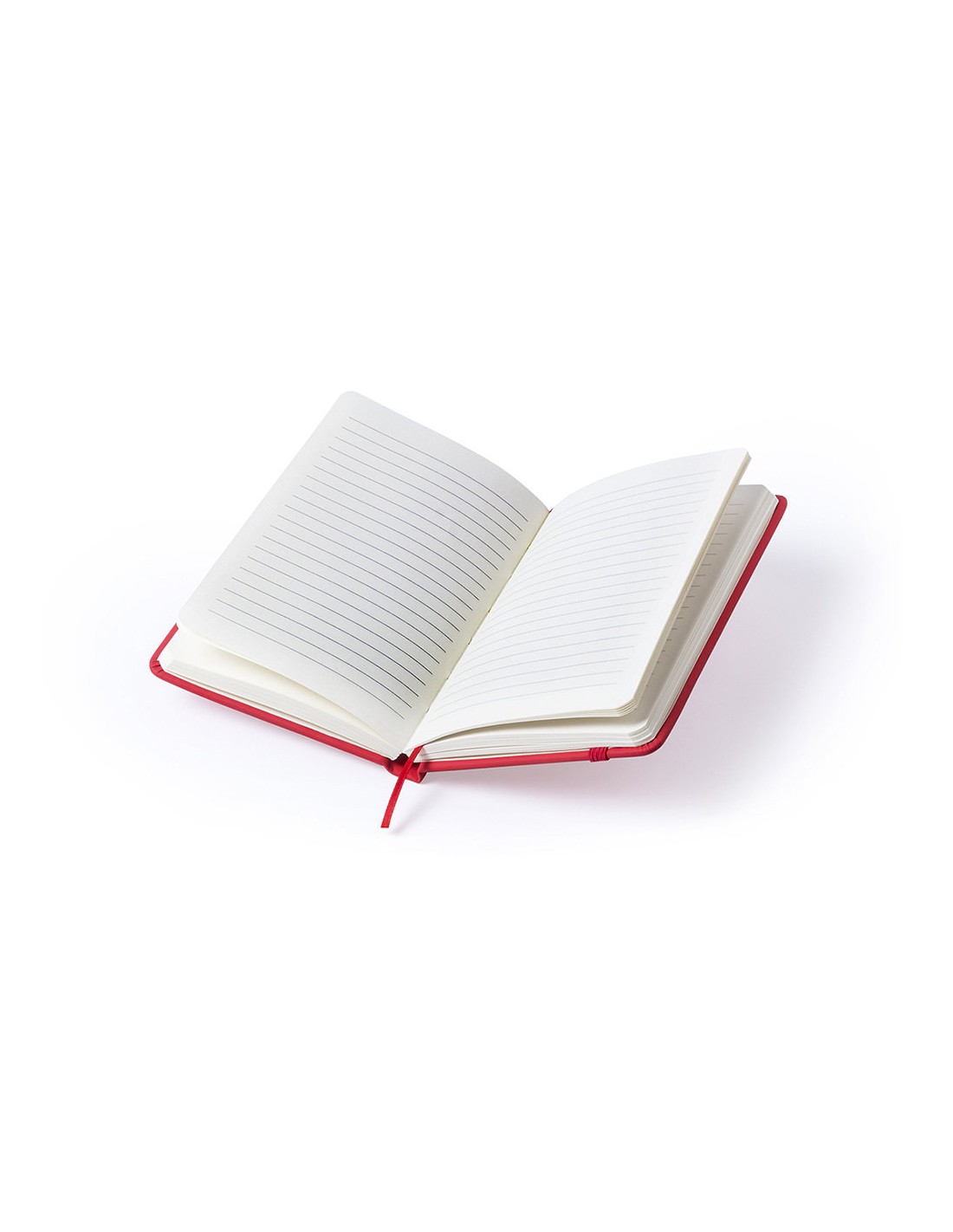 Bloc de notas con tapas de suave tacto, acabado en polipiel y en desenfadados colores. Con 100 hojas de distribución a una raya, elástico de sujeción y marcapáginas de tela a juego.