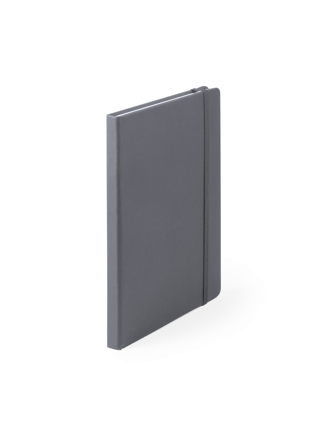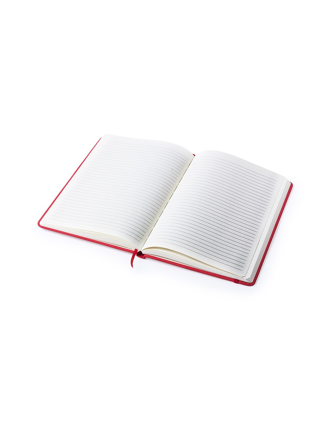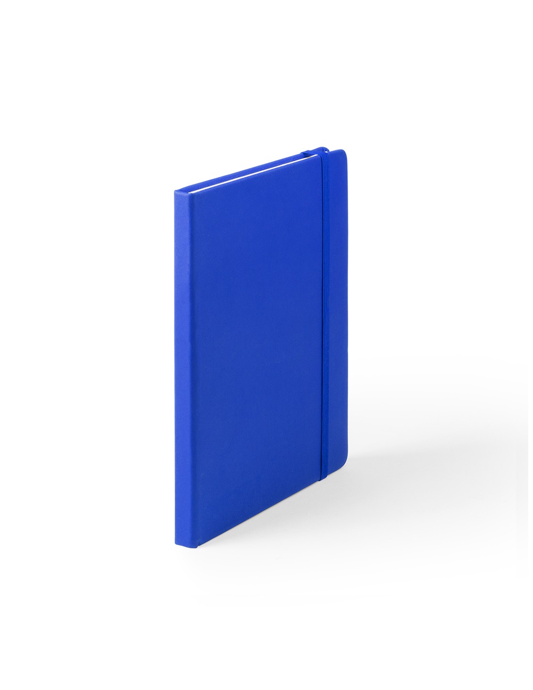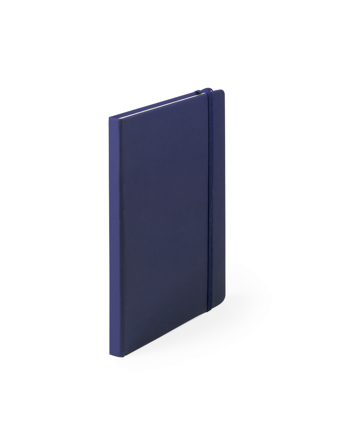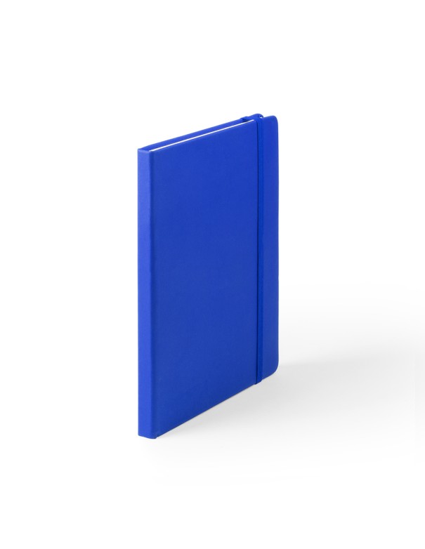 Bloc de notas A5 con tapas duras fabricado en suave polipiel y con 100 hojas de disposición a una raya. Incluye marcapáginas de tela y banda elástica a juego. Disponible en una variada gama de colores.