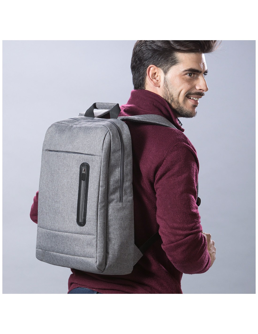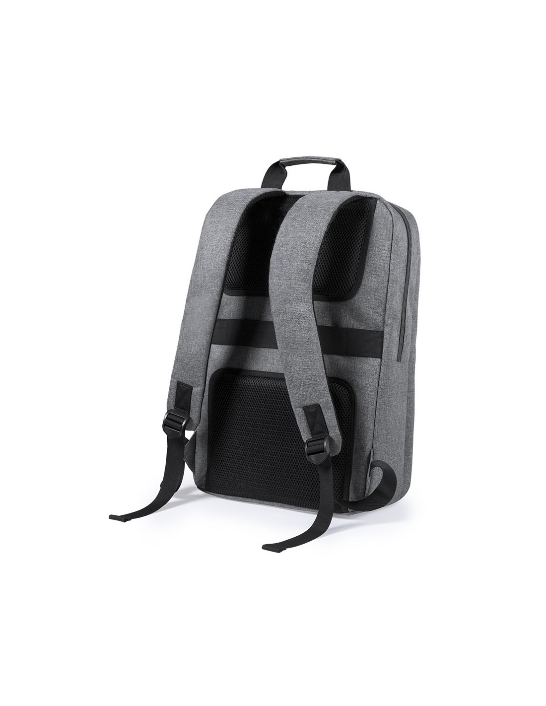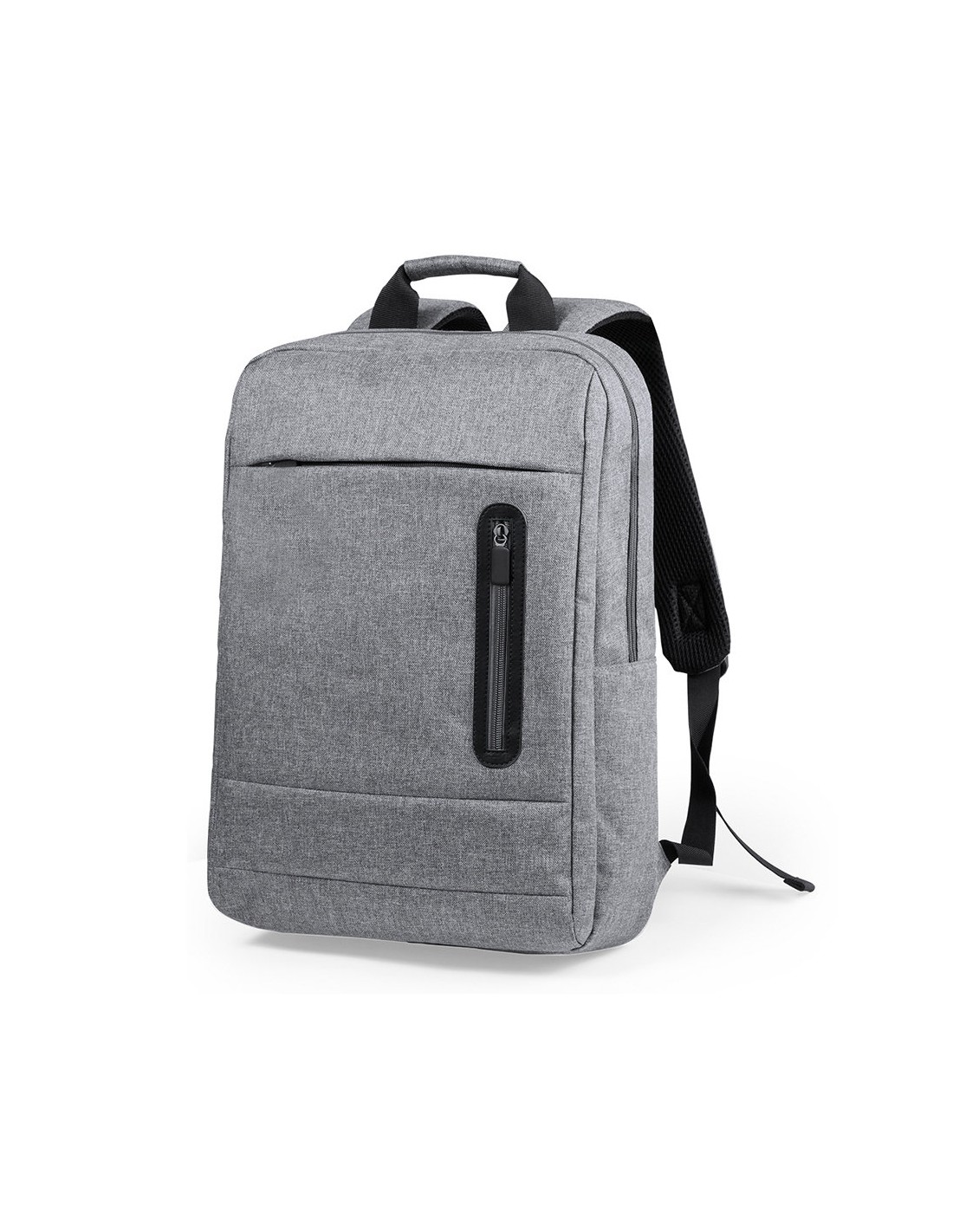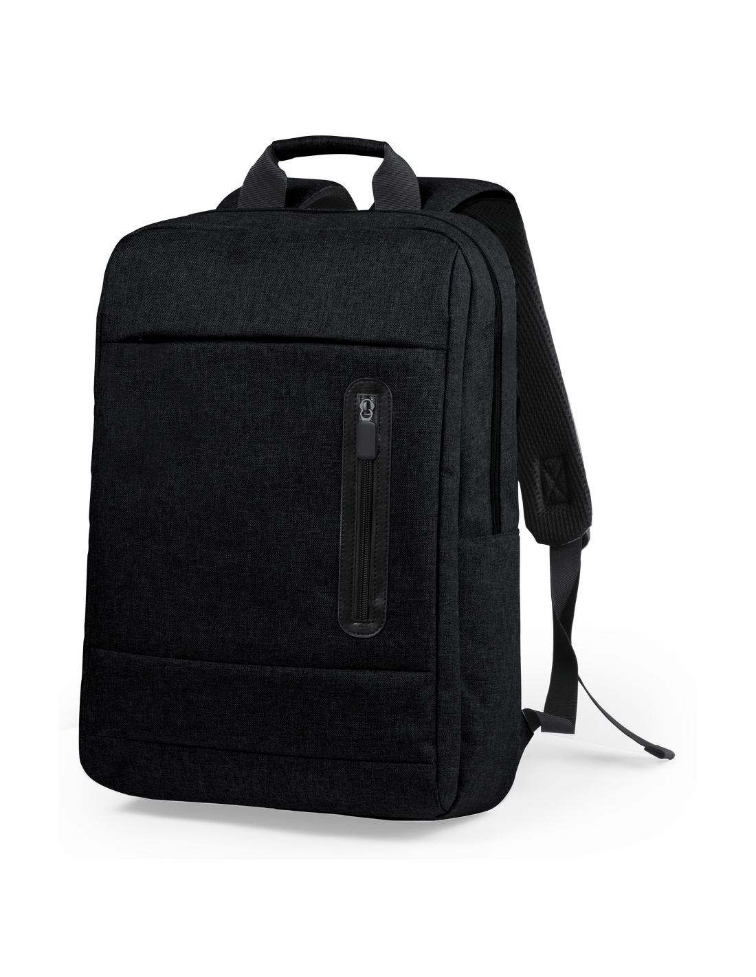 Mochila de resistente Nylon 600D. Original diseño rectángulas con cierre de cremallera tanto para el bolsillo principal como para el frontal. Con acolchado ergonómico en espalda y cintas de hombros, incluye en el interior un compartimento acolchado para ordenador portátil de hasta 15 pulgadas. Disponible en dos elegantes colores.