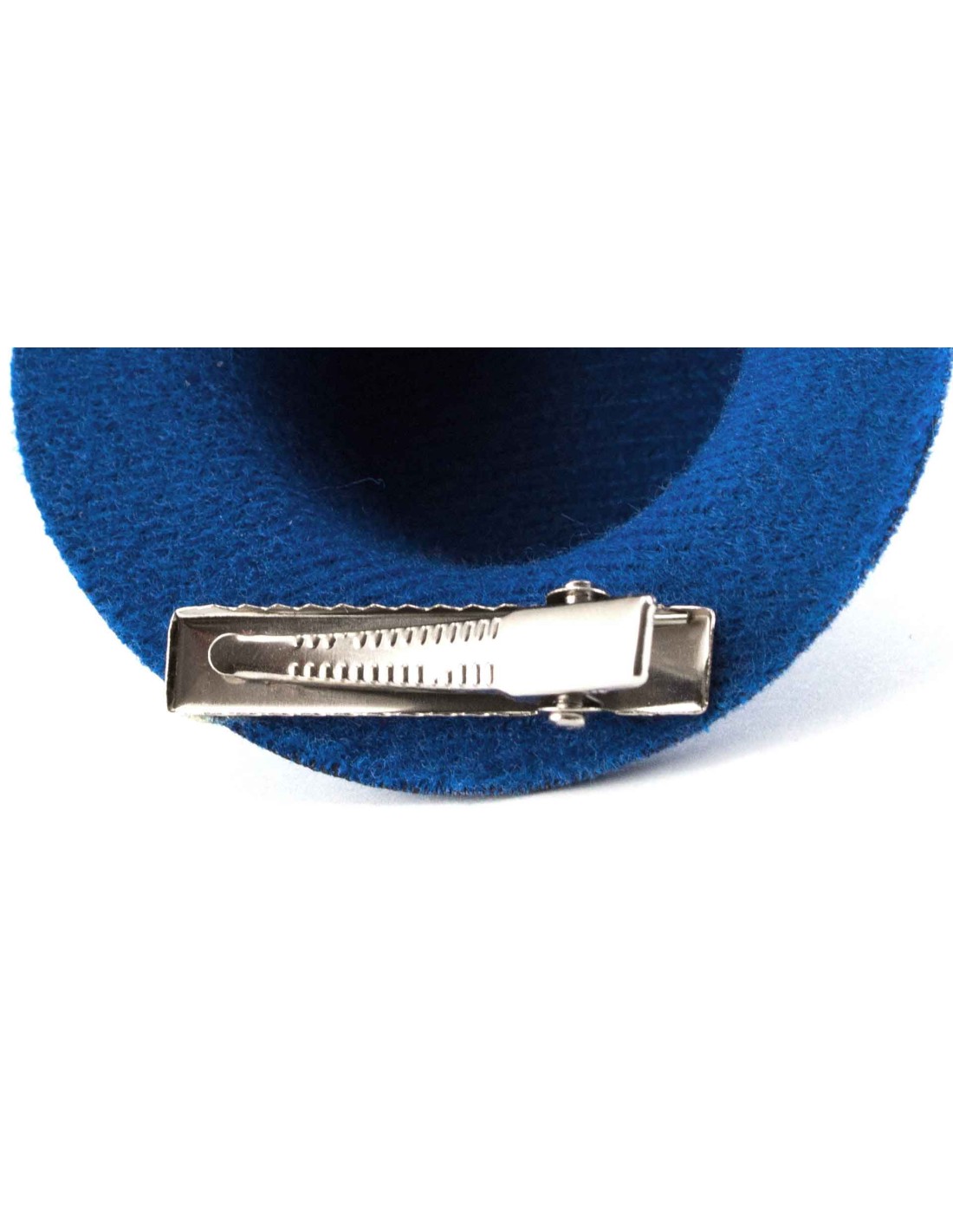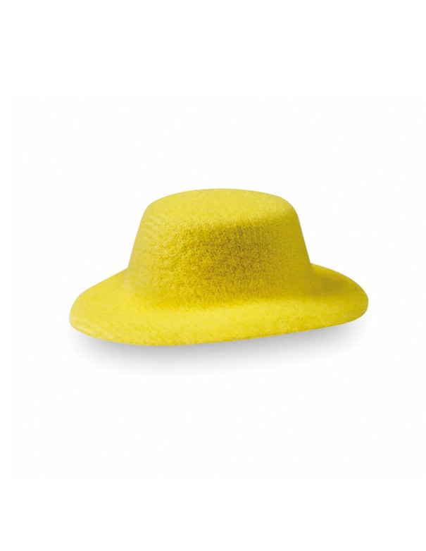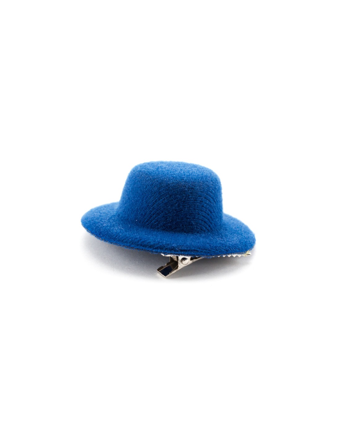 Original pasador de pelo en antelina y con forma de sombrero en variada gama de vivos colores.