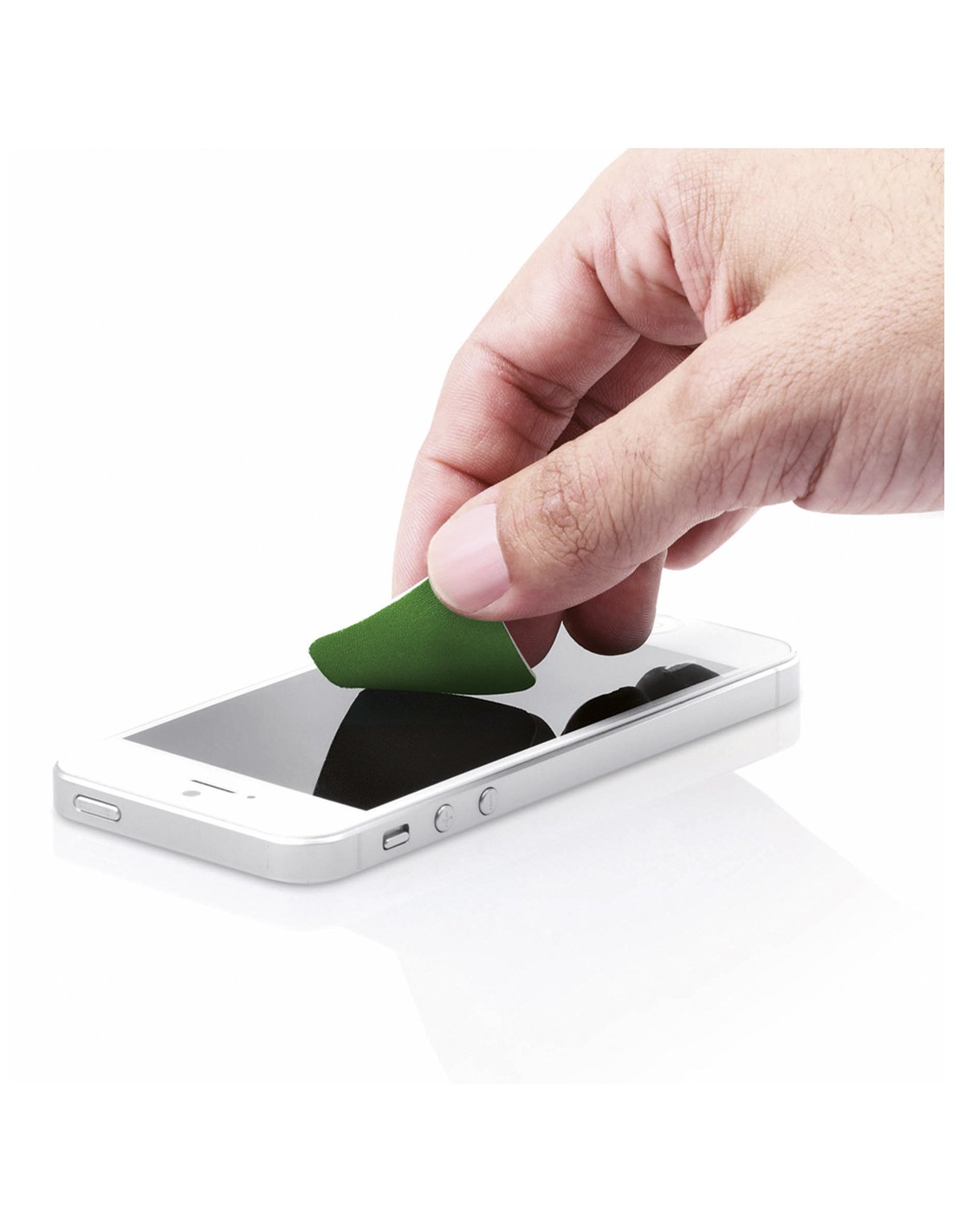 Limpiador de pantalla de suave microfibra de diseño minimalista, en desenfadados colores y con parte trasera adherente.