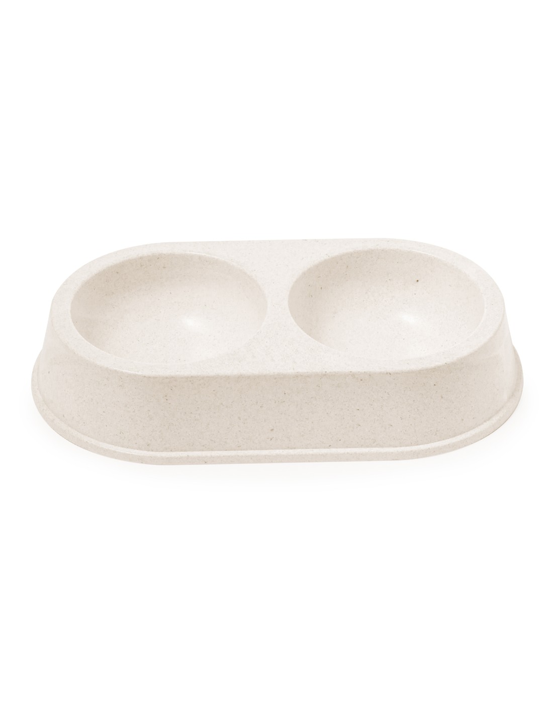 Bowl para mascotas de doble compartimento fabricado en fibra de bambú. Ideal para la alimentación de mascotas, gracias a sus dos divisiones para sólidos y líquidos. Presentado en una bolsa individual reciclada. Materiales como el bambú fomentan la utilización de materias primas naturales, reduciendo las emisiones contaminantes. Proviene de una planta de gran resistencia y versatilidad, con crecimiento y regeneración rápidos, siendo una excelente alternativa al uso de madera tradicional.