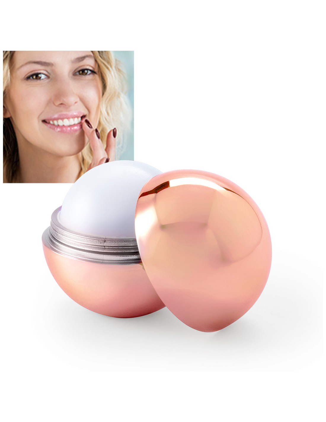 Esfera de bálsamo labial en elegantes colores dorado, plateado y oro rosa. Aroma vainilla, con protección SPF15 y dermatológicamente testados.