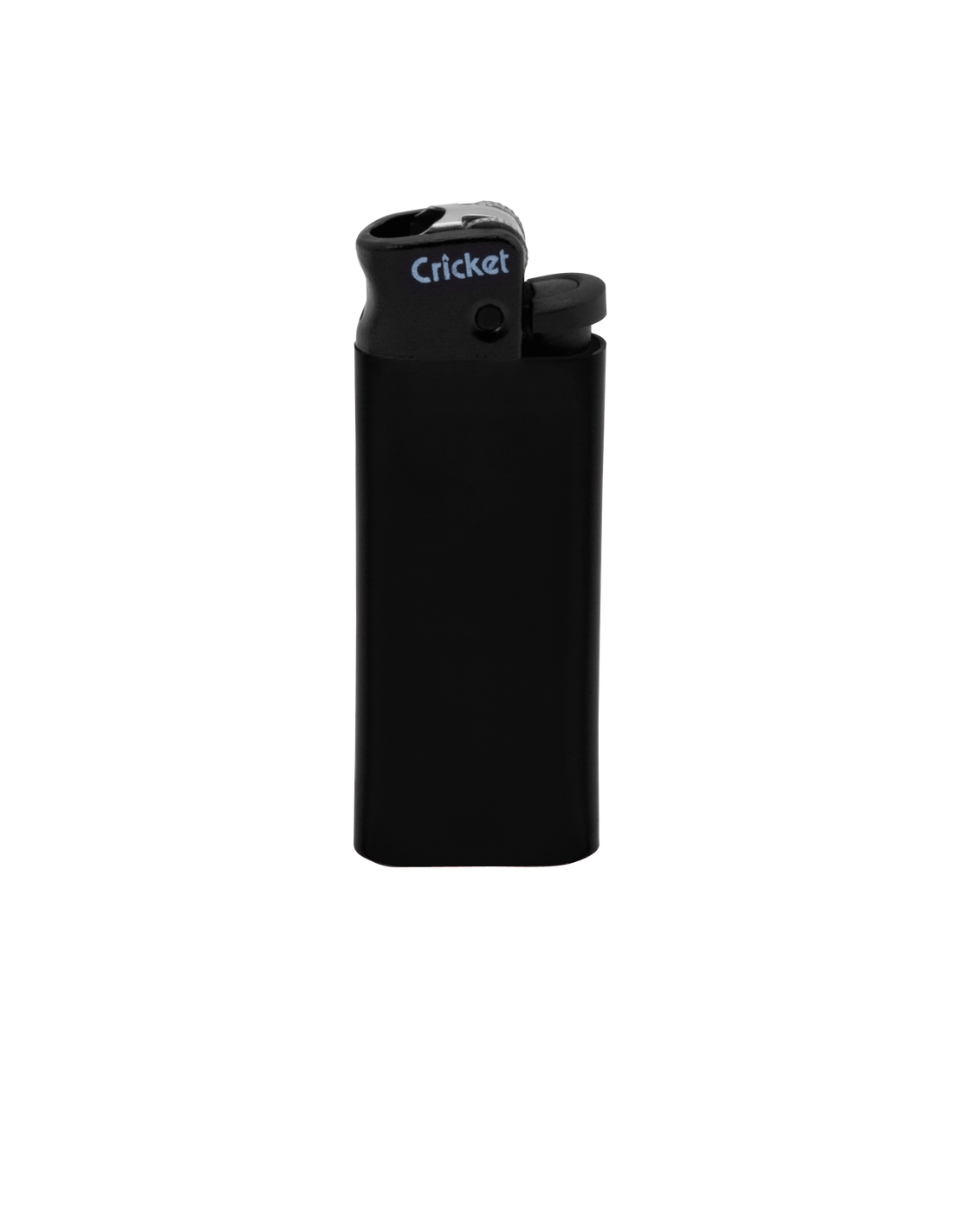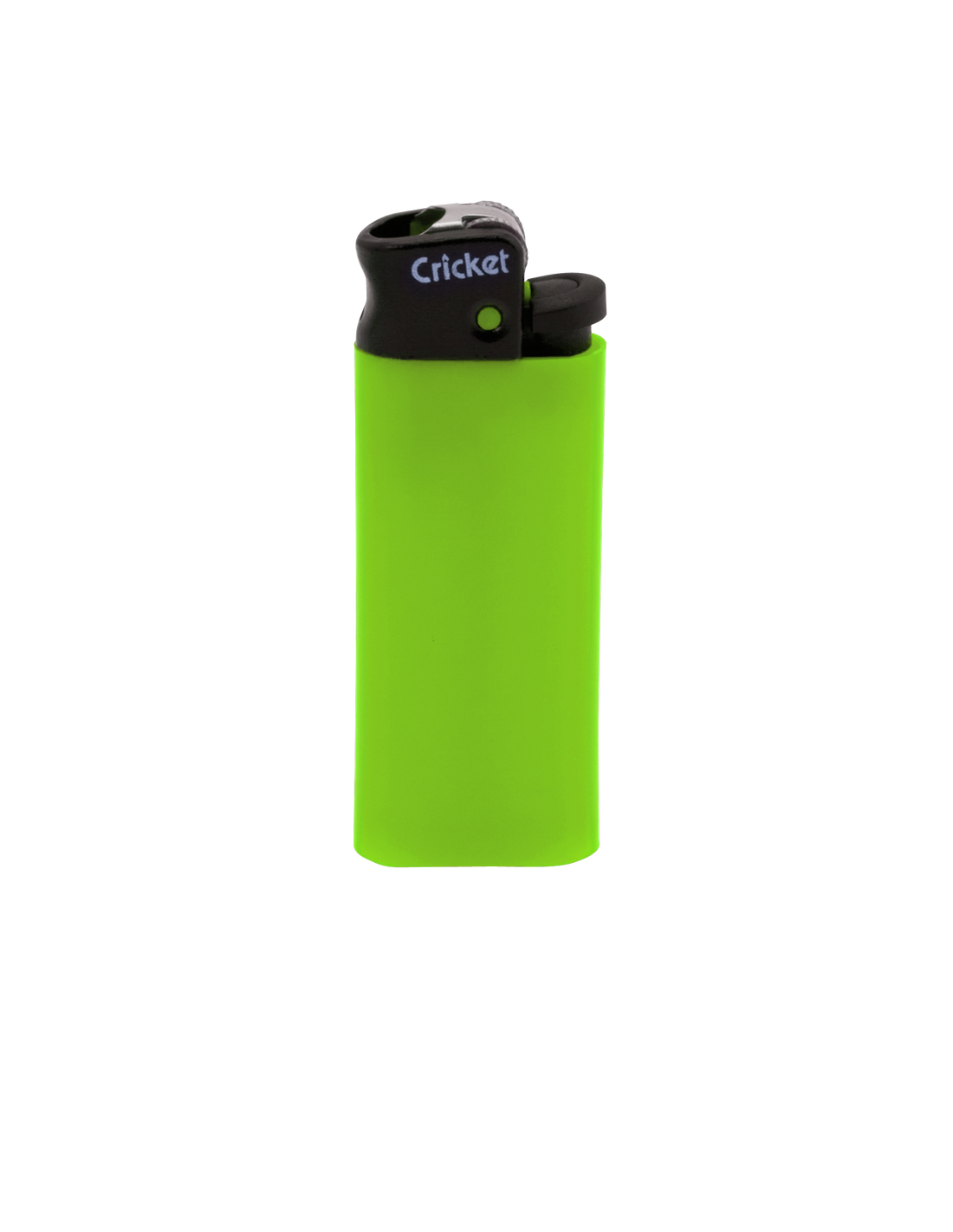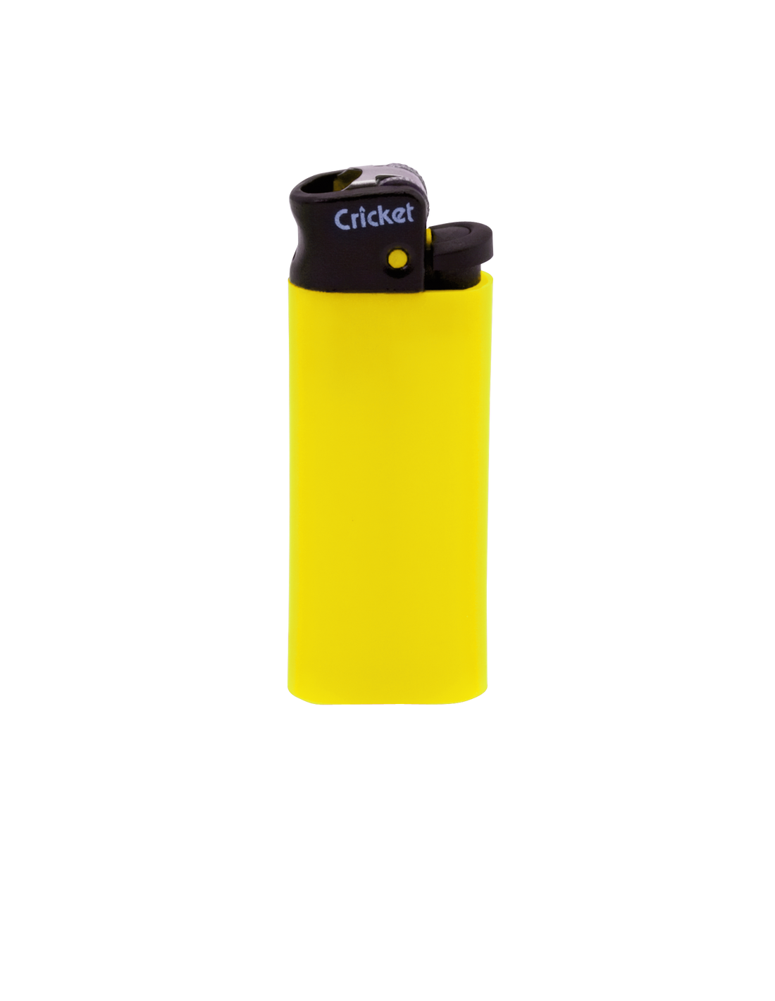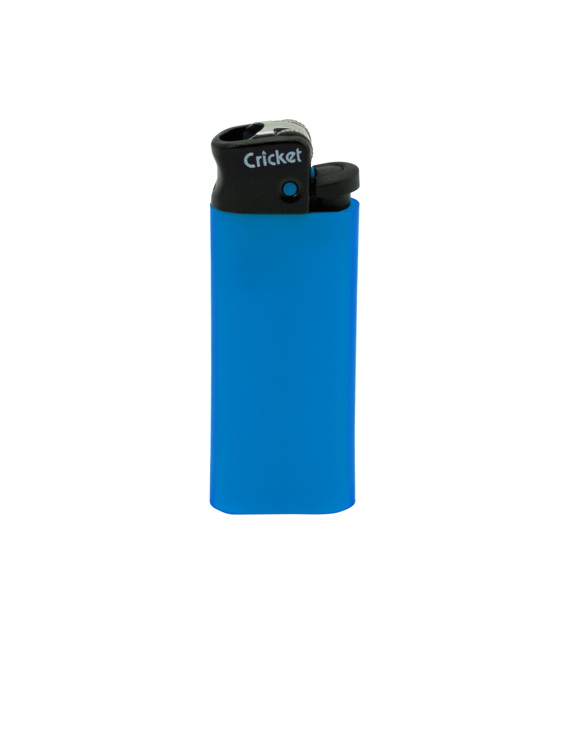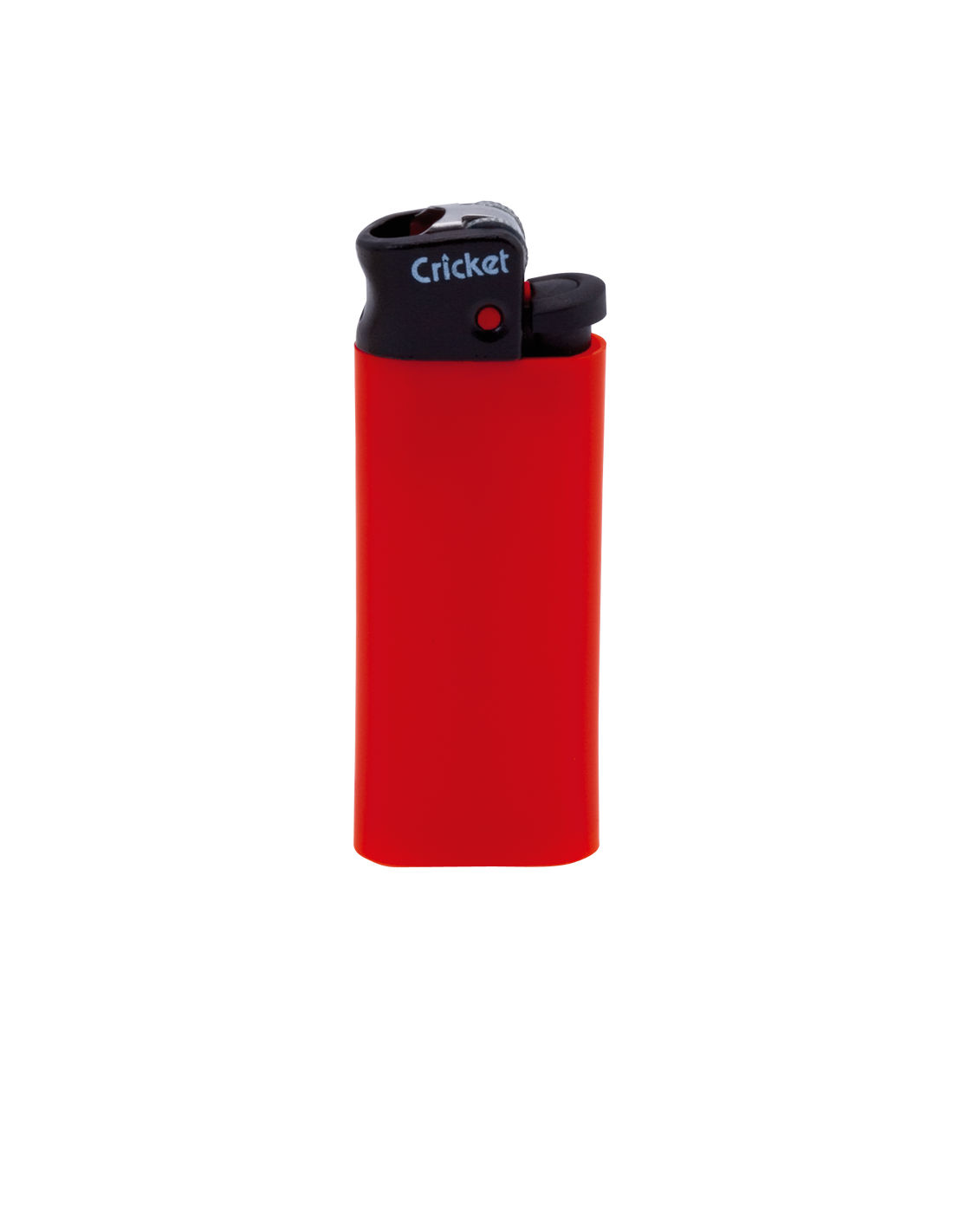 Miniencendedor clásico Cricket. A gas, de mecanismo de piedra y con protección infantil. Disponible en variada gama de colores sólidos. Servido en bandejas de 50 unidades del mismo color.