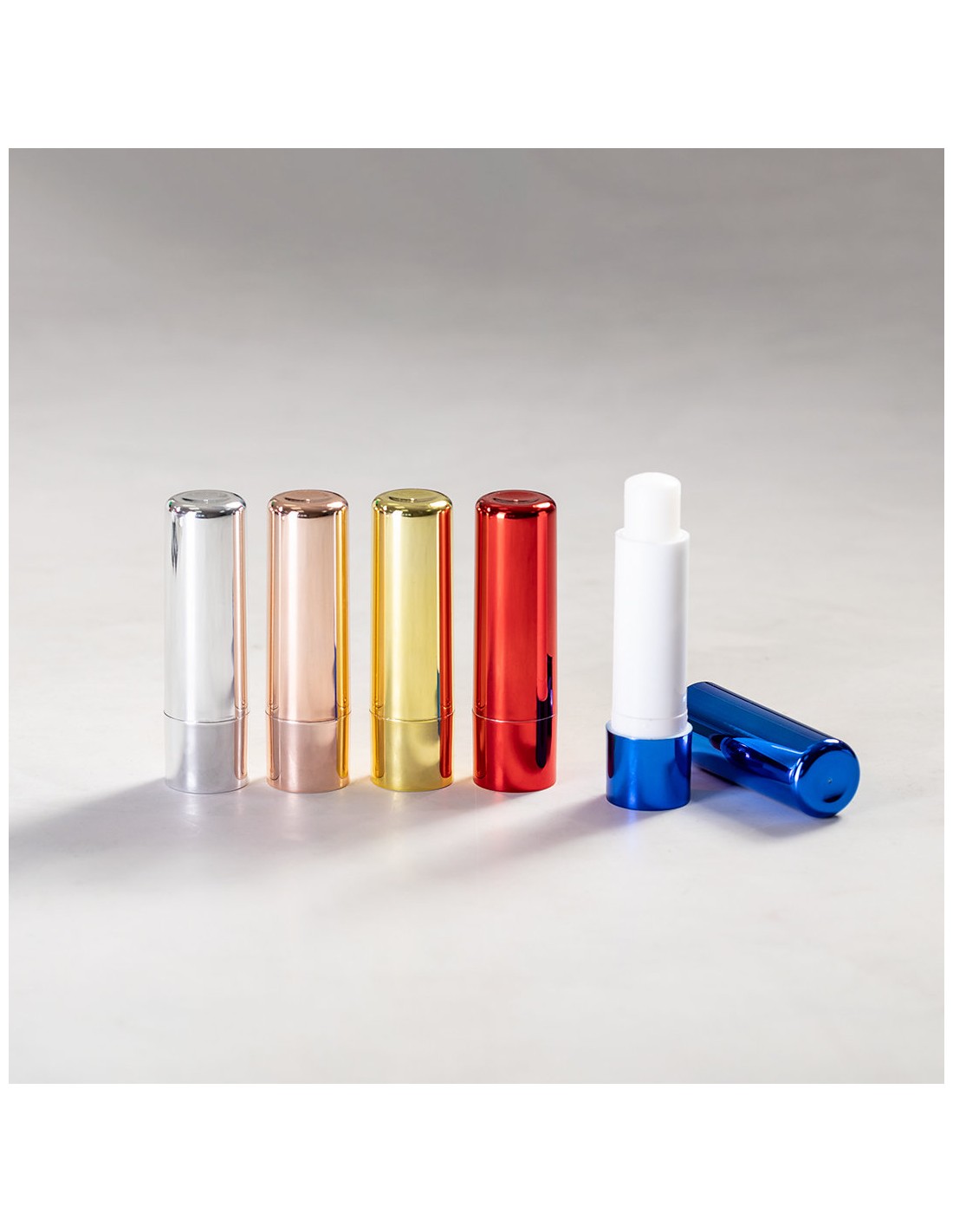 Barra de bálsamo labial con protección SPF15 y aroma vainilla. En variada gama de colores metalizados.