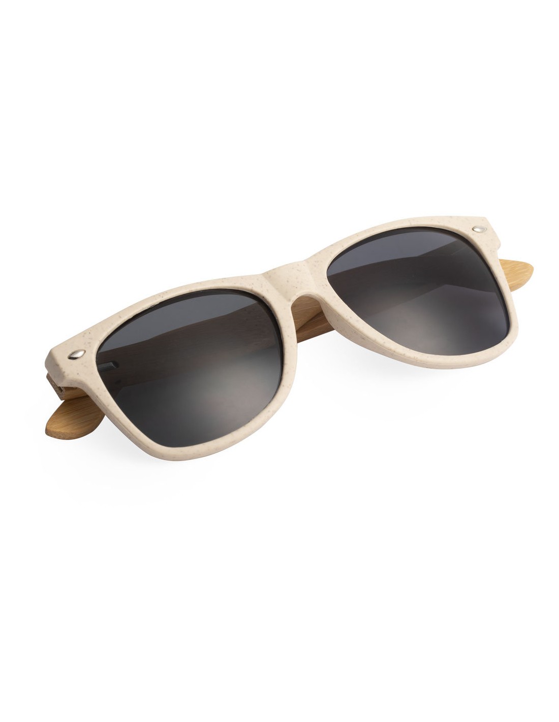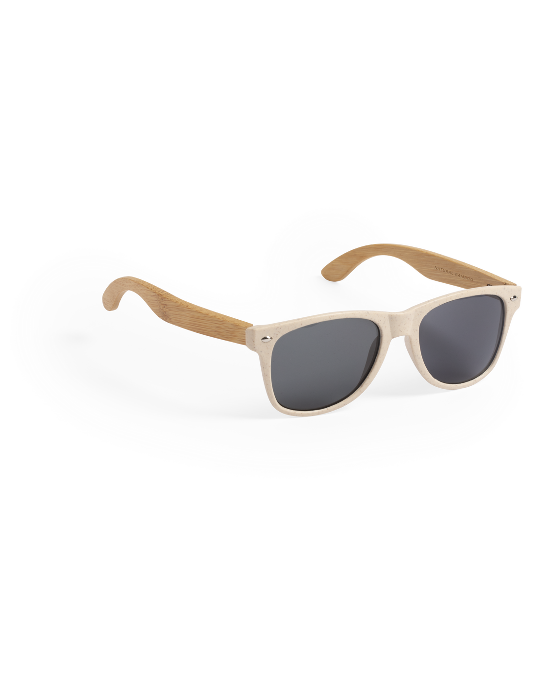 Gafas de sol de línea nature con protección UV400. Con montura en fibra de bambú y patillas en bambú. Lentes tintadas a juego.
