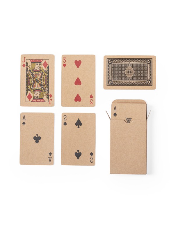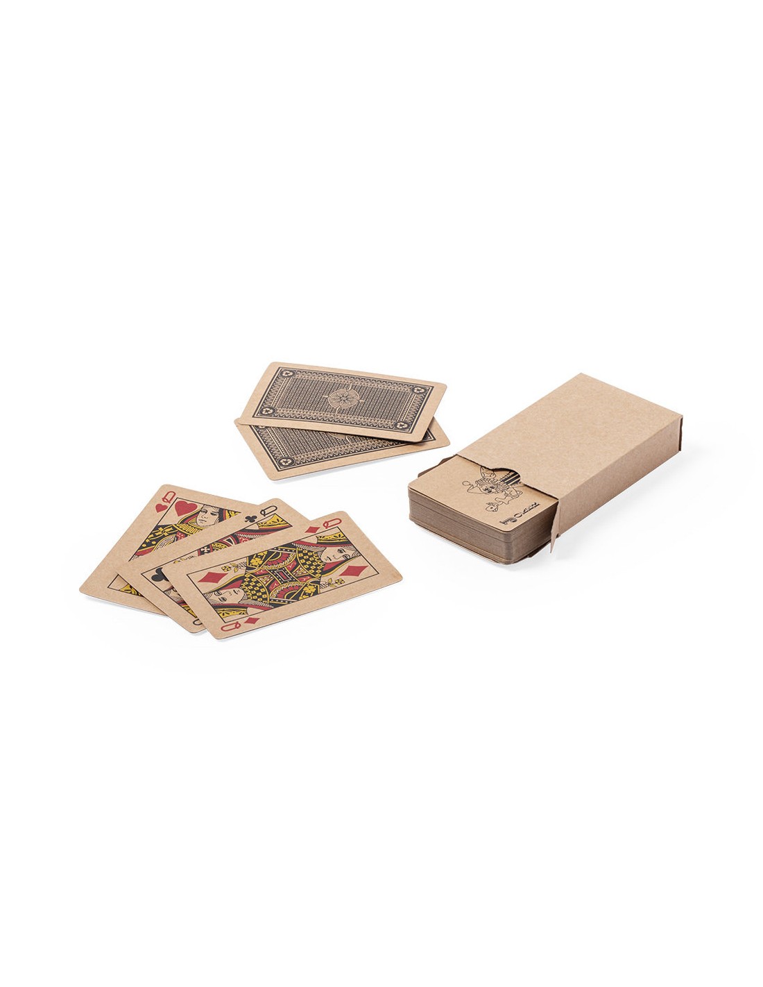 Baraja francesa de línea nature, fabricada en resistente cartón reciclado. Incluye 54 naipes, presentados en estuche individual de cartón reciclado.