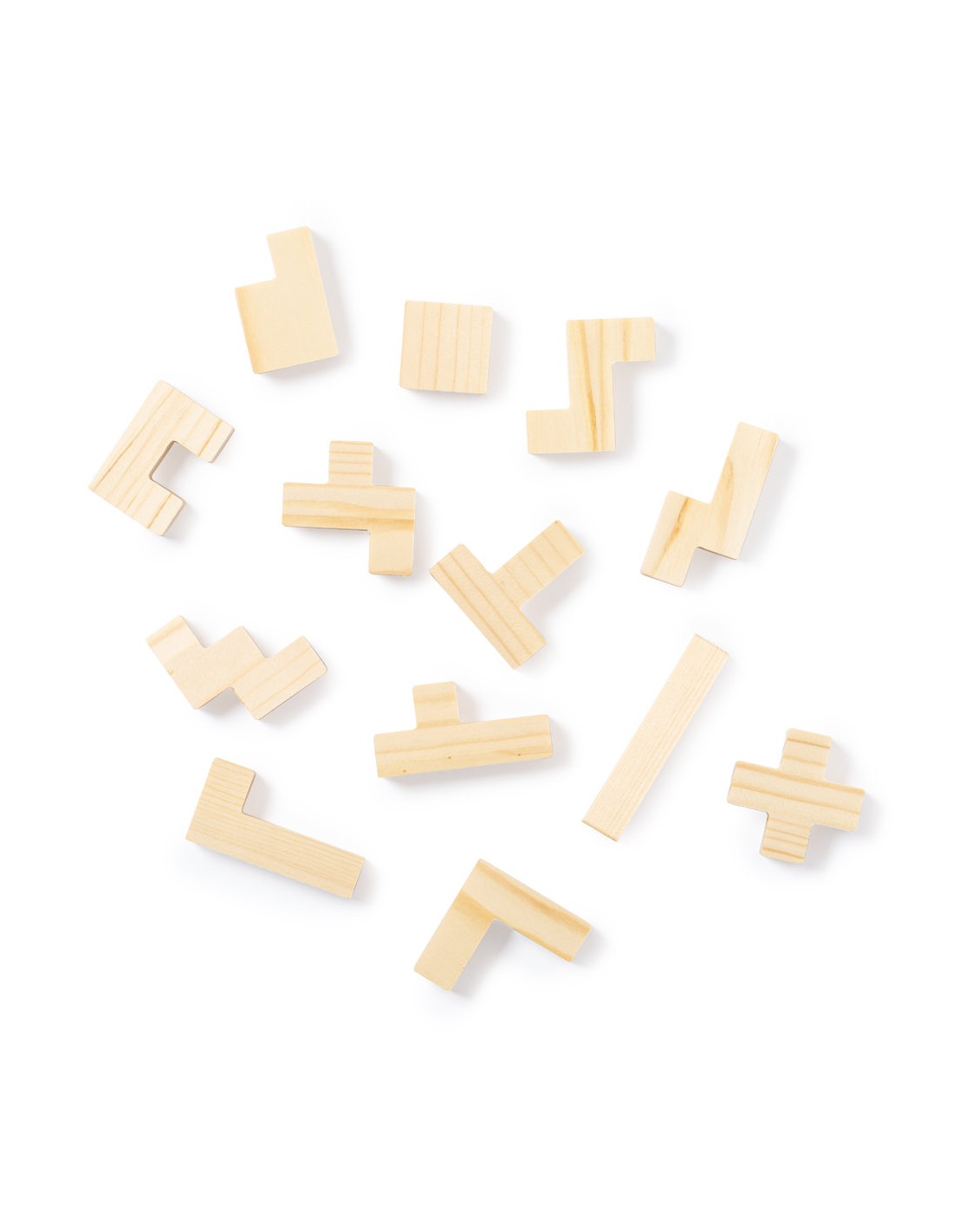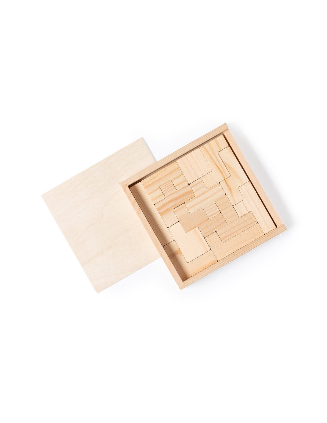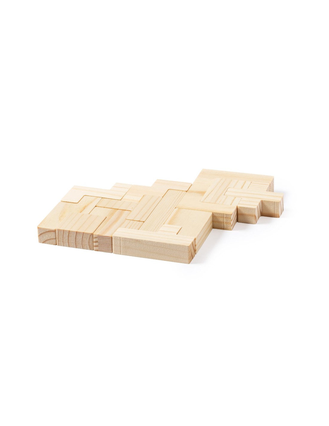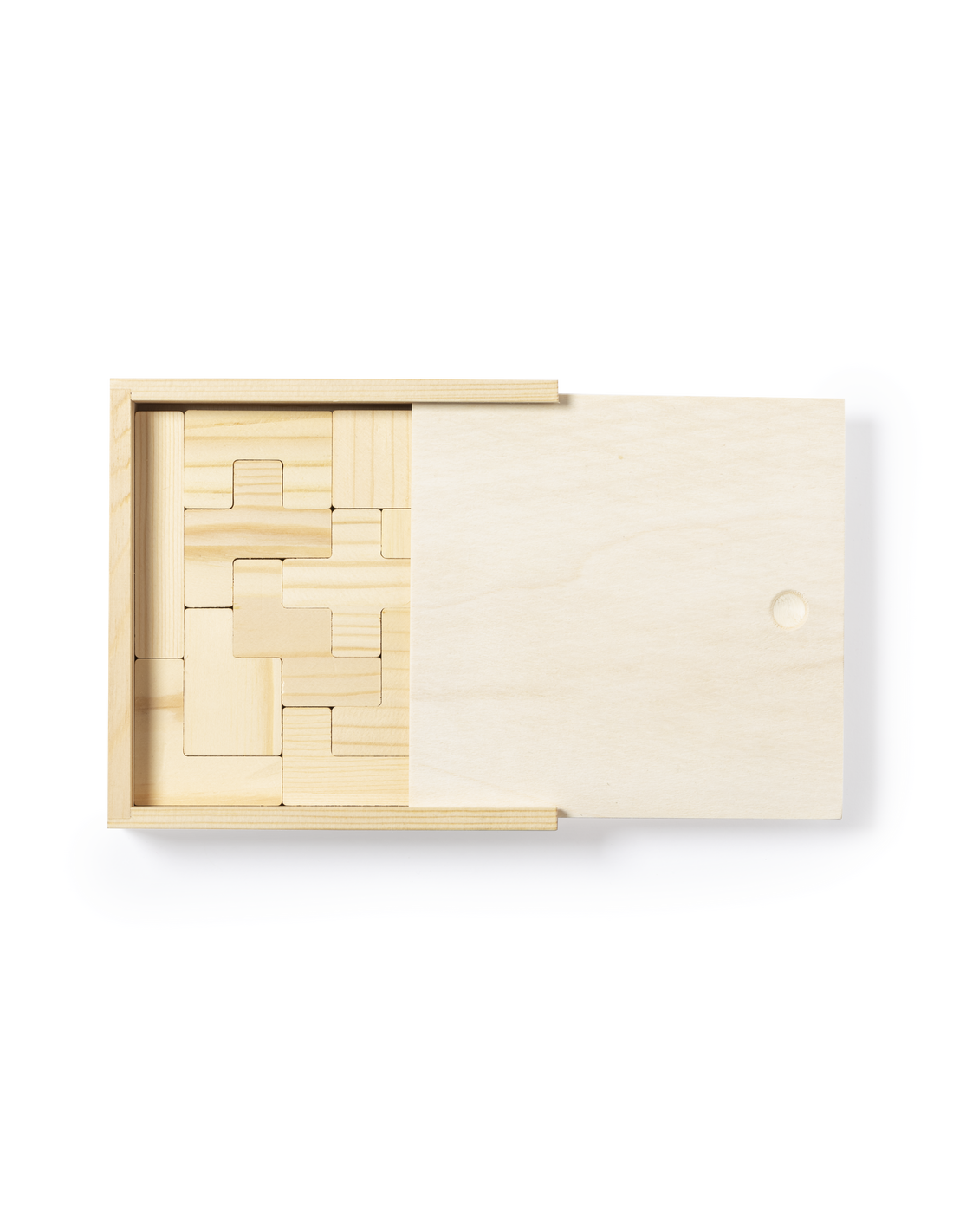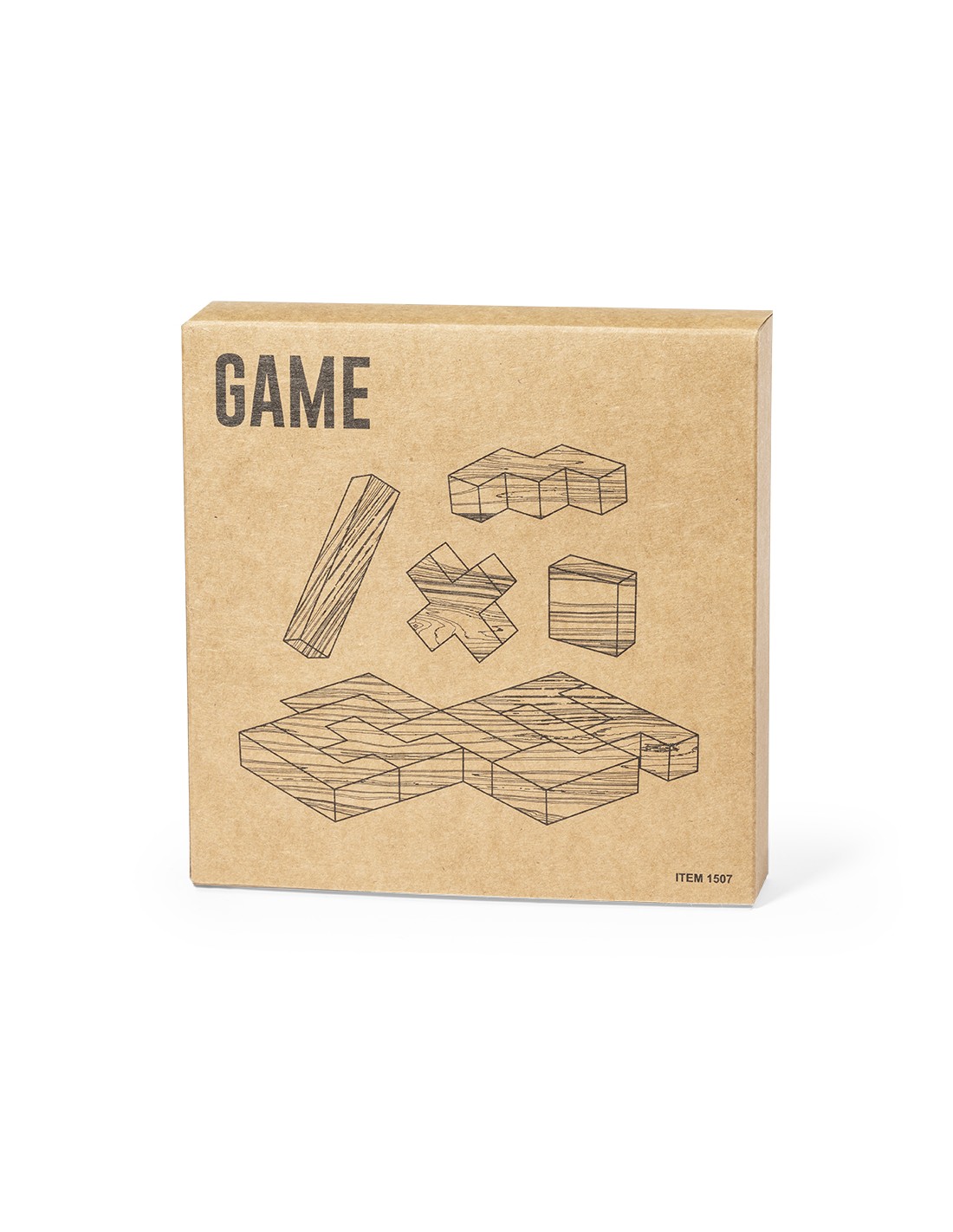 Juego de habilidad fabricado en resistente madera. Con 13 piezas en caja de madera con tapa. Presentación en caja individual de diseño kraft.