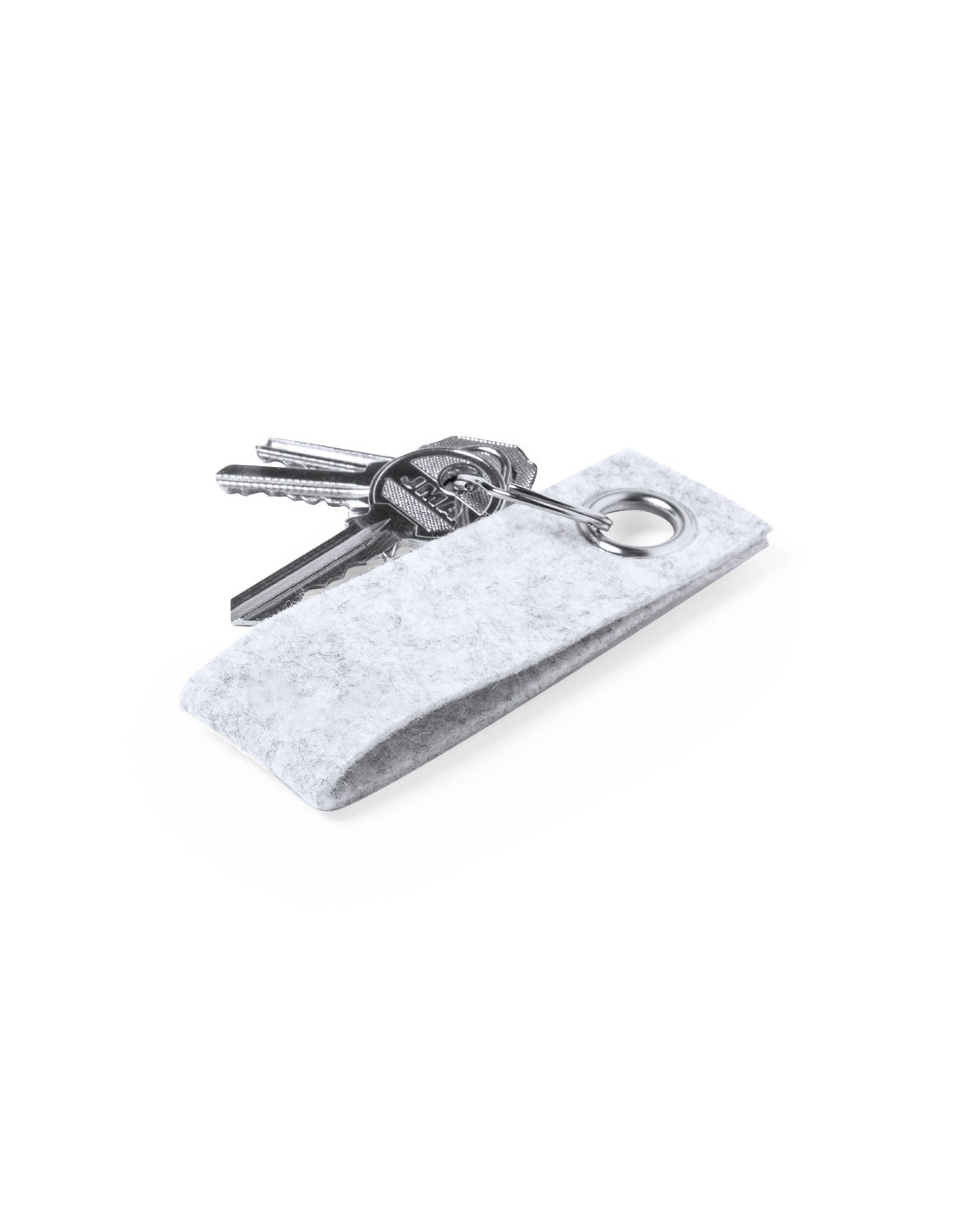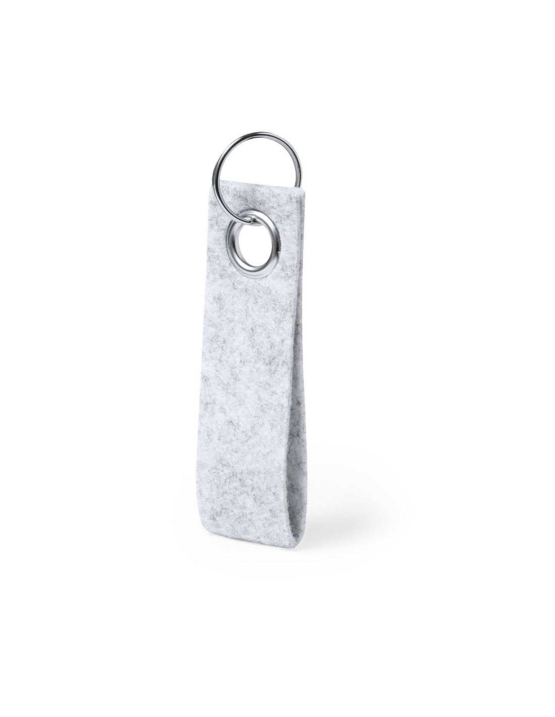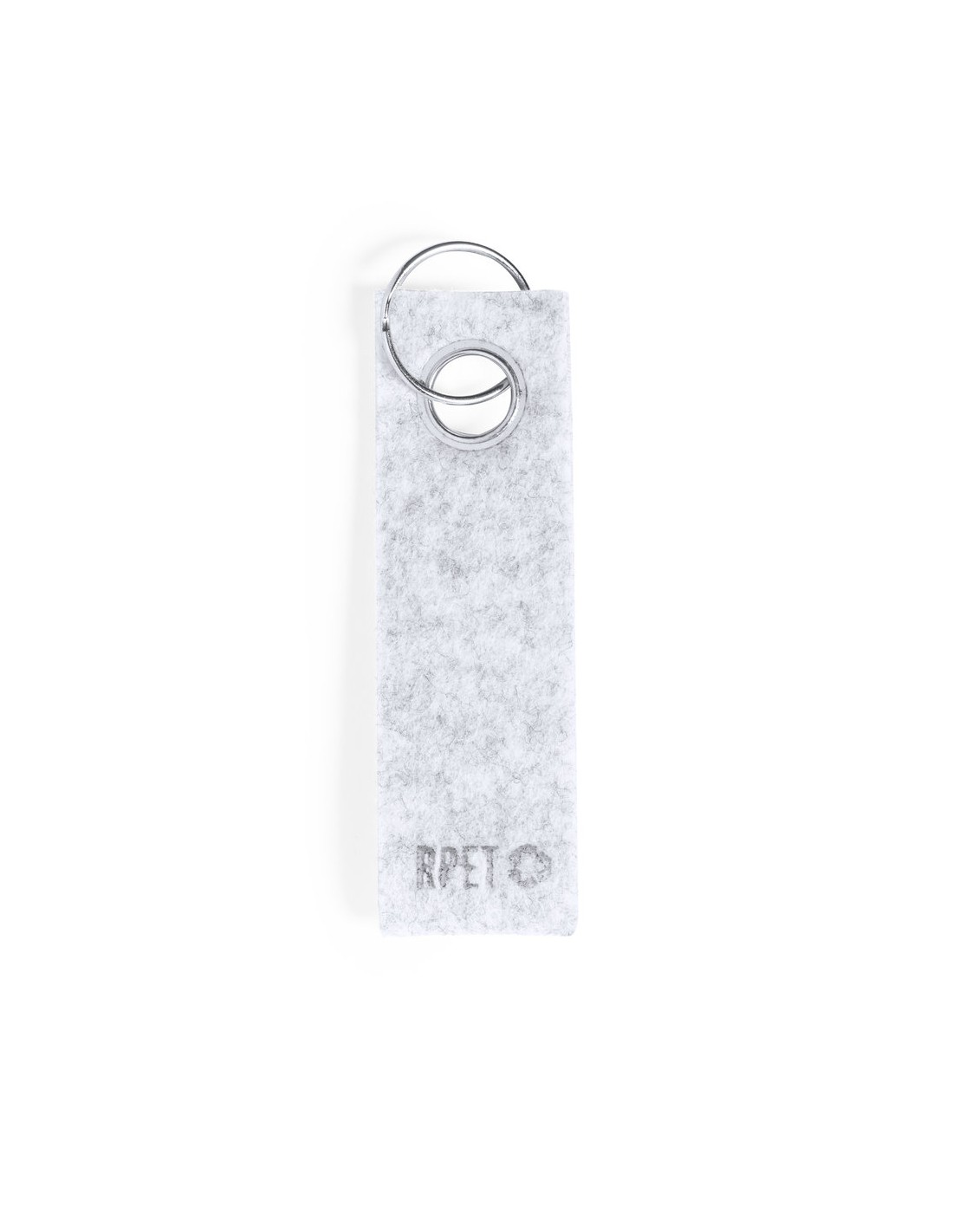 Elegante llavero con cinta fabricada en fieltro RPET y ojal metálico cromado. Con distintivo fieltro RPET en la cinta y anilla metálica cromada. El fieltro RPET es fruto de la combinación del proceso de reciclaje de materiales plásticos junto con la técnica milenaria de fabricación del fieltro, dando como resultado un material de eco-tendencia que, además de ser de origen reciclado, también se convierte en reciclable.