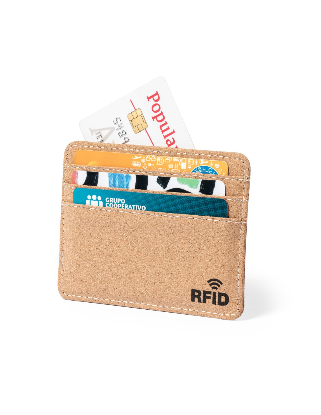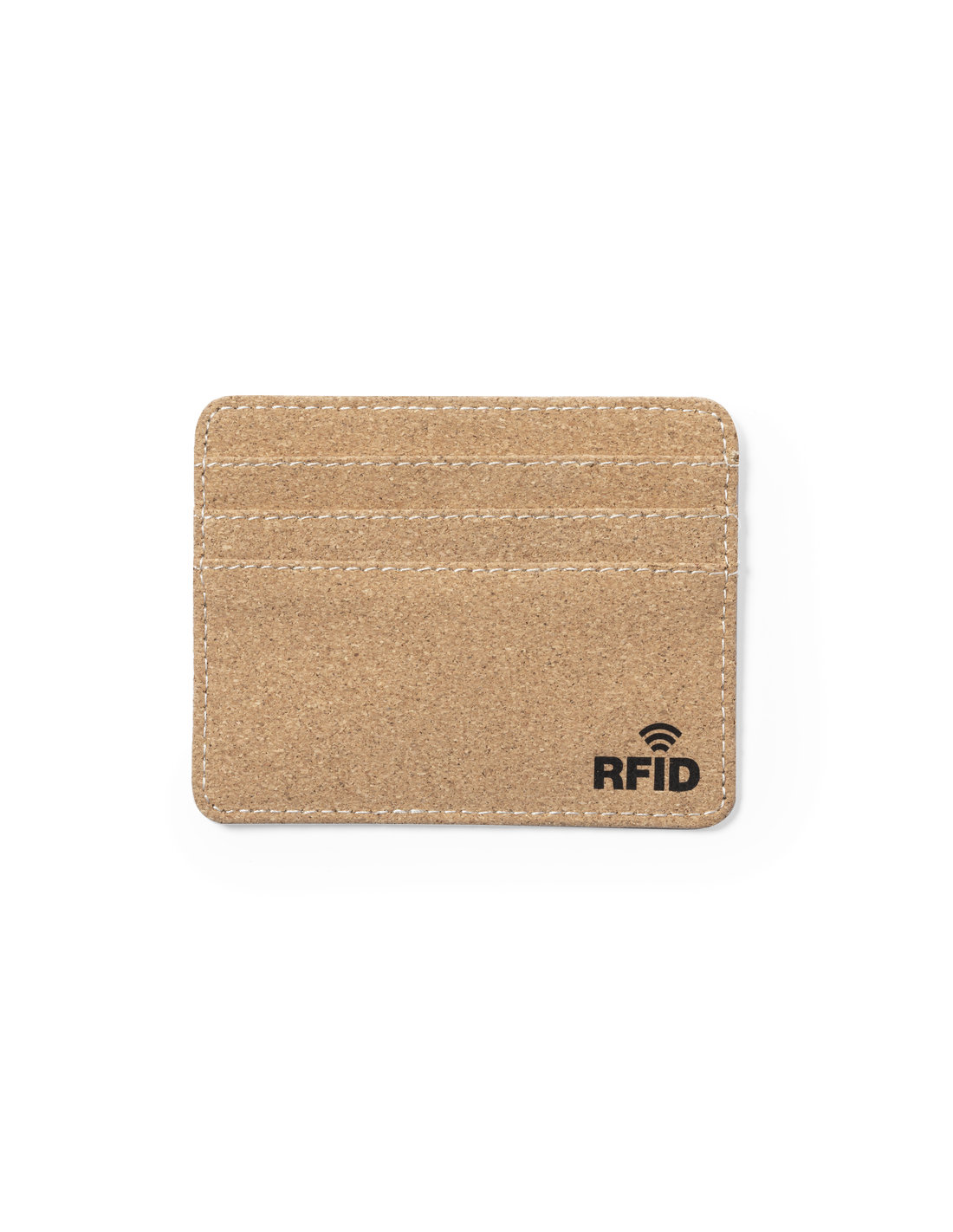 Elegante tarjetero fabricado en corcho natural. Con 6 compartimentos independientes para tarjetas y tecnología de seguridad RFID (Identificación por Radio Frecuencia) que mantiene seguros tus dispositivos de transmisión de identidad. Distintivo RFID en el exterior.