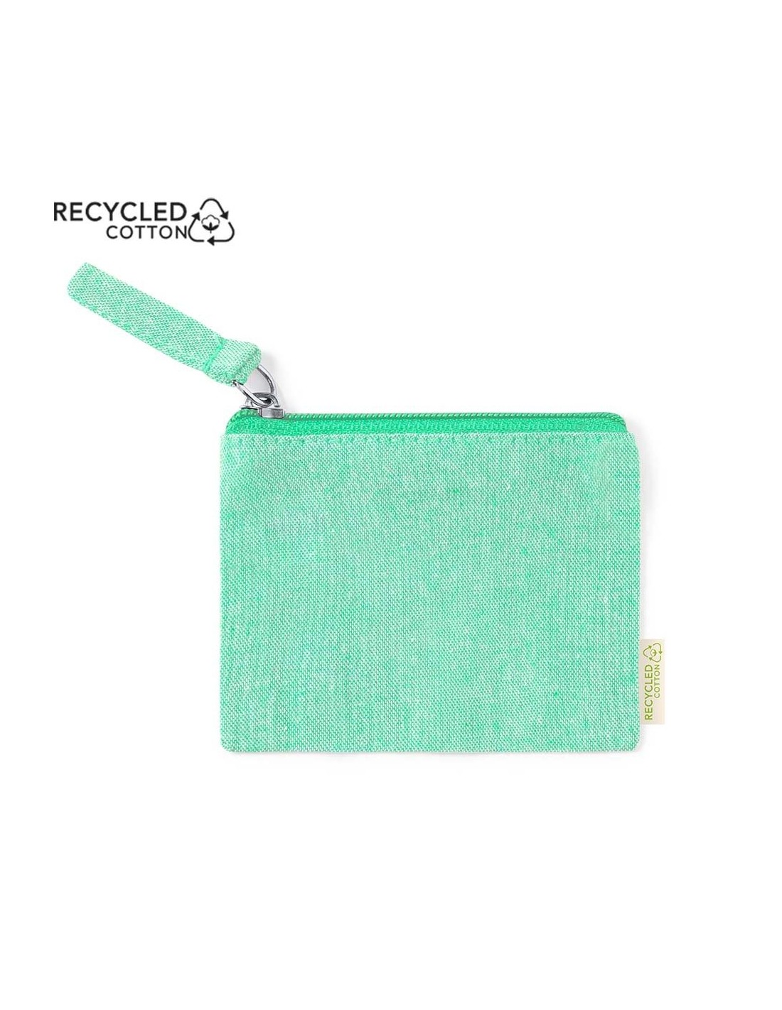 Monedero fabricado en 100% algodón reciclado. Compartimento principal con cierre de cremallera y tirador a juego. Con algodón distintivo reciclado en la etiqueta exterior y disponible en variada gama de colores. Certificación GRS (Global Recycled Standard / Estándar de Reciclaje Global), que garantiza el origen reciclado del material usado para fabricar el producto