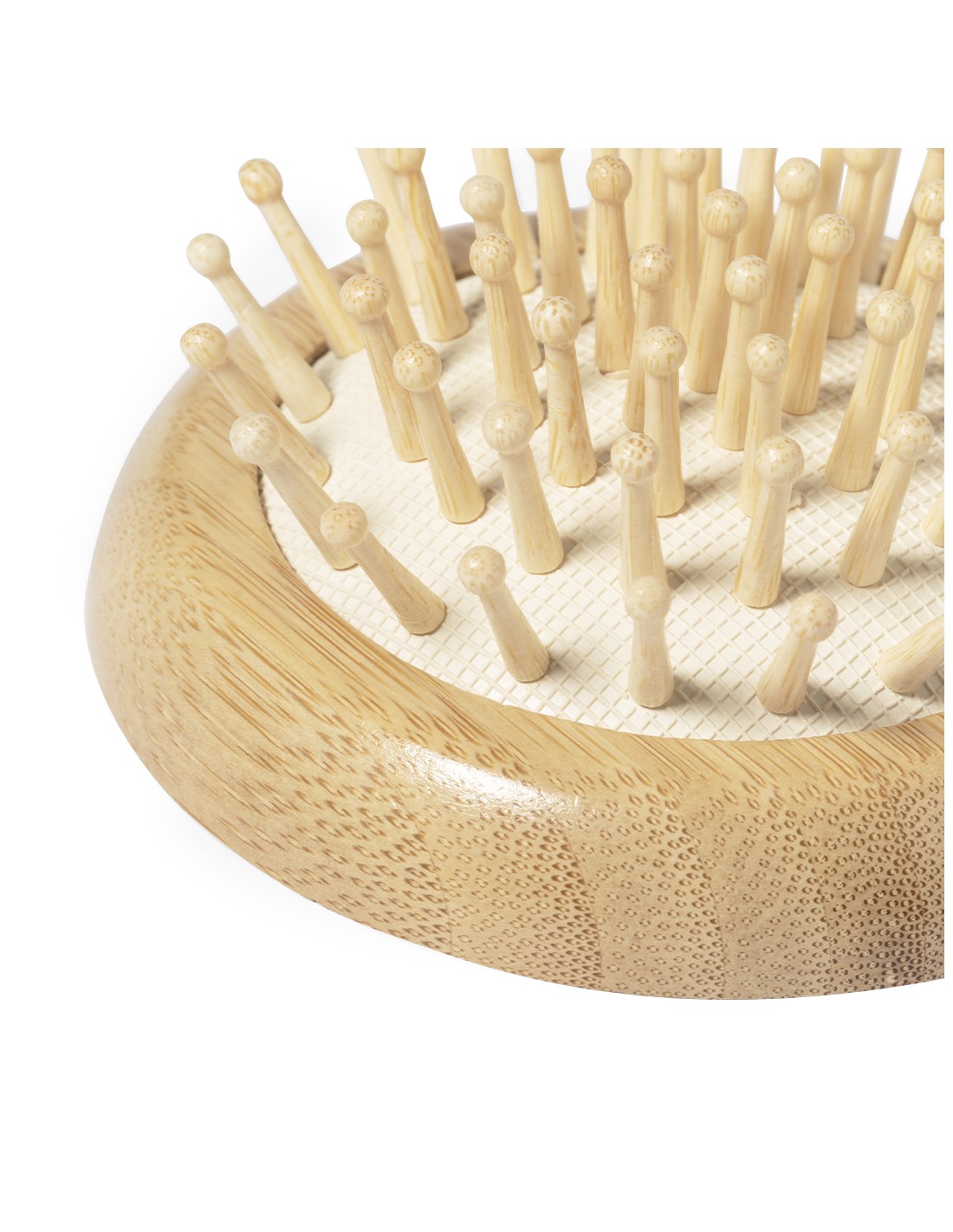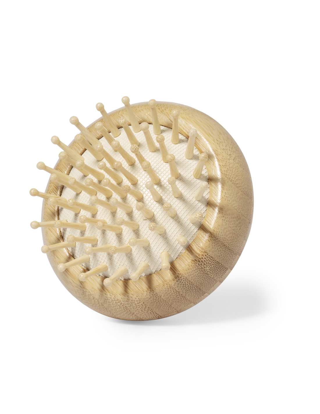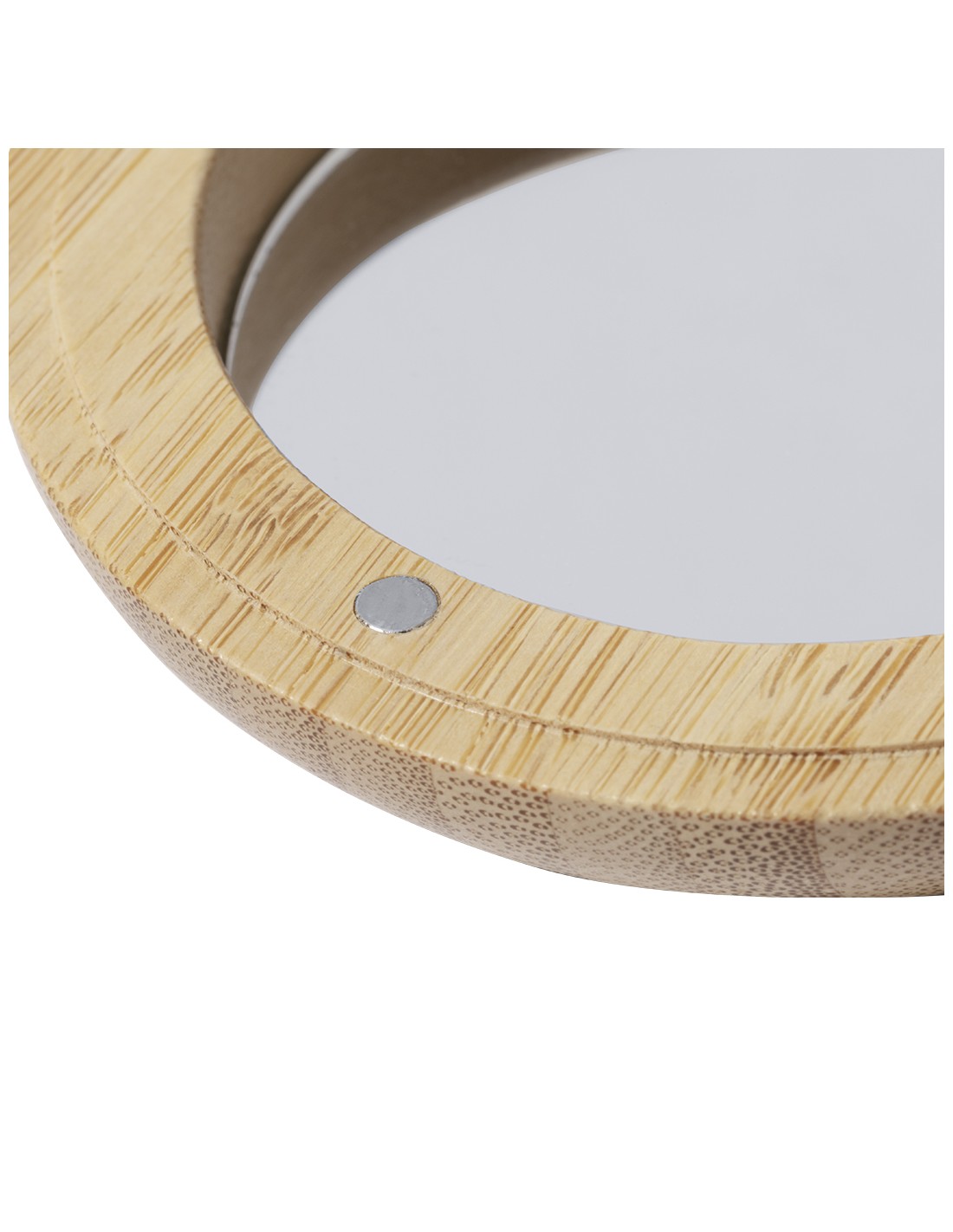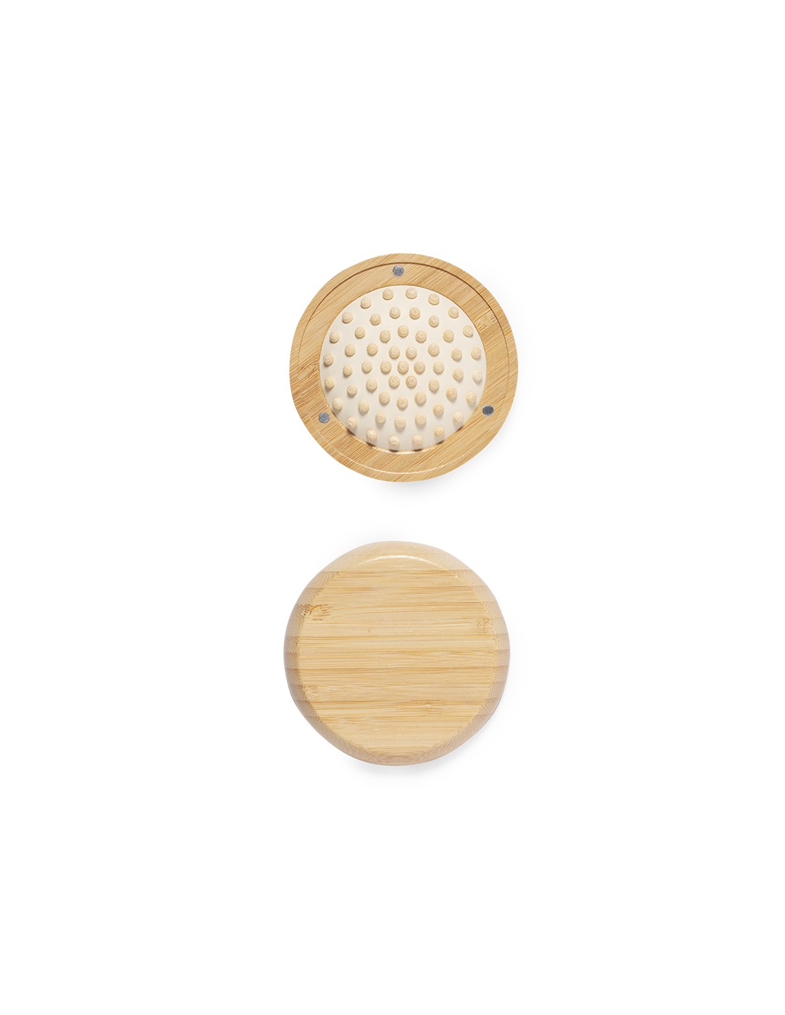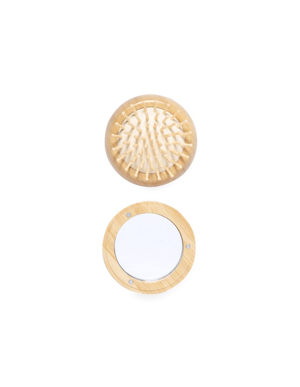 Original cepillo con espejo fabricado en bambú natural. Su unión mediante imanes y su compacto tamaño lo convierten en un perfecto accesorio para el día a día. Presentado en caja individual de diseño kraft. Materiales como el bambú fomentan la utilización de materias primas naturales reduciendo las emisiones contaminantes. Además, el bambú proviene de una planta de gran resistencia y versatilidad, con crecimiento y regeneración rápida, siendo una excelente alternativa al uso de madera tradicional.