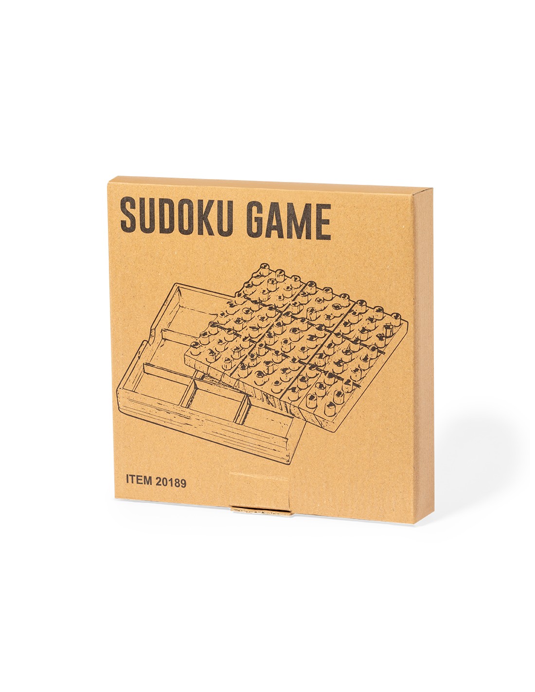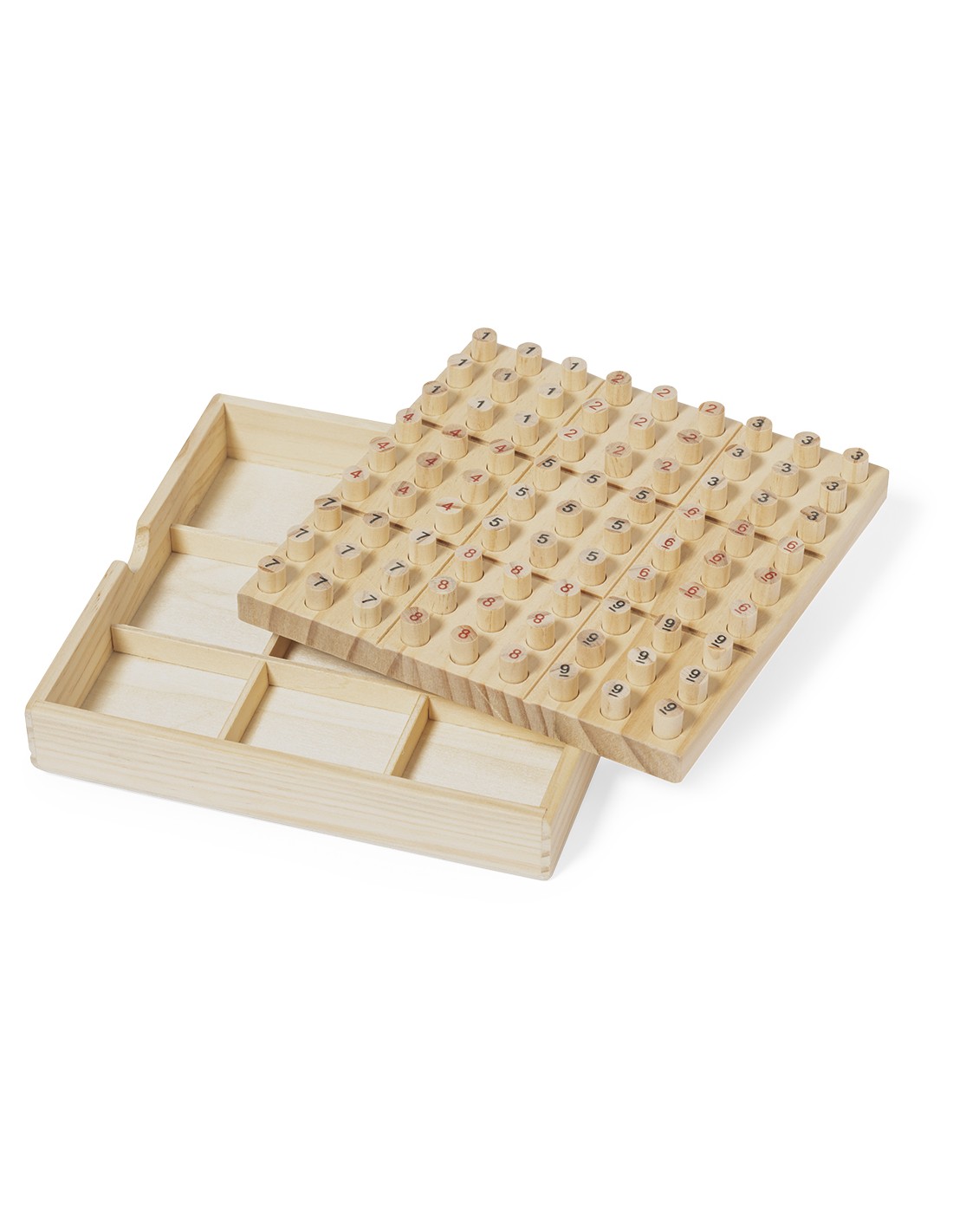 Juego de habilidad sudoku fabricado en resistente madera. Incluye 81 fichas de madera numeradas y 10 cartas. Con reglas del juego en español e inglés. Presentado en estuche de madera con tapa-tablero.
